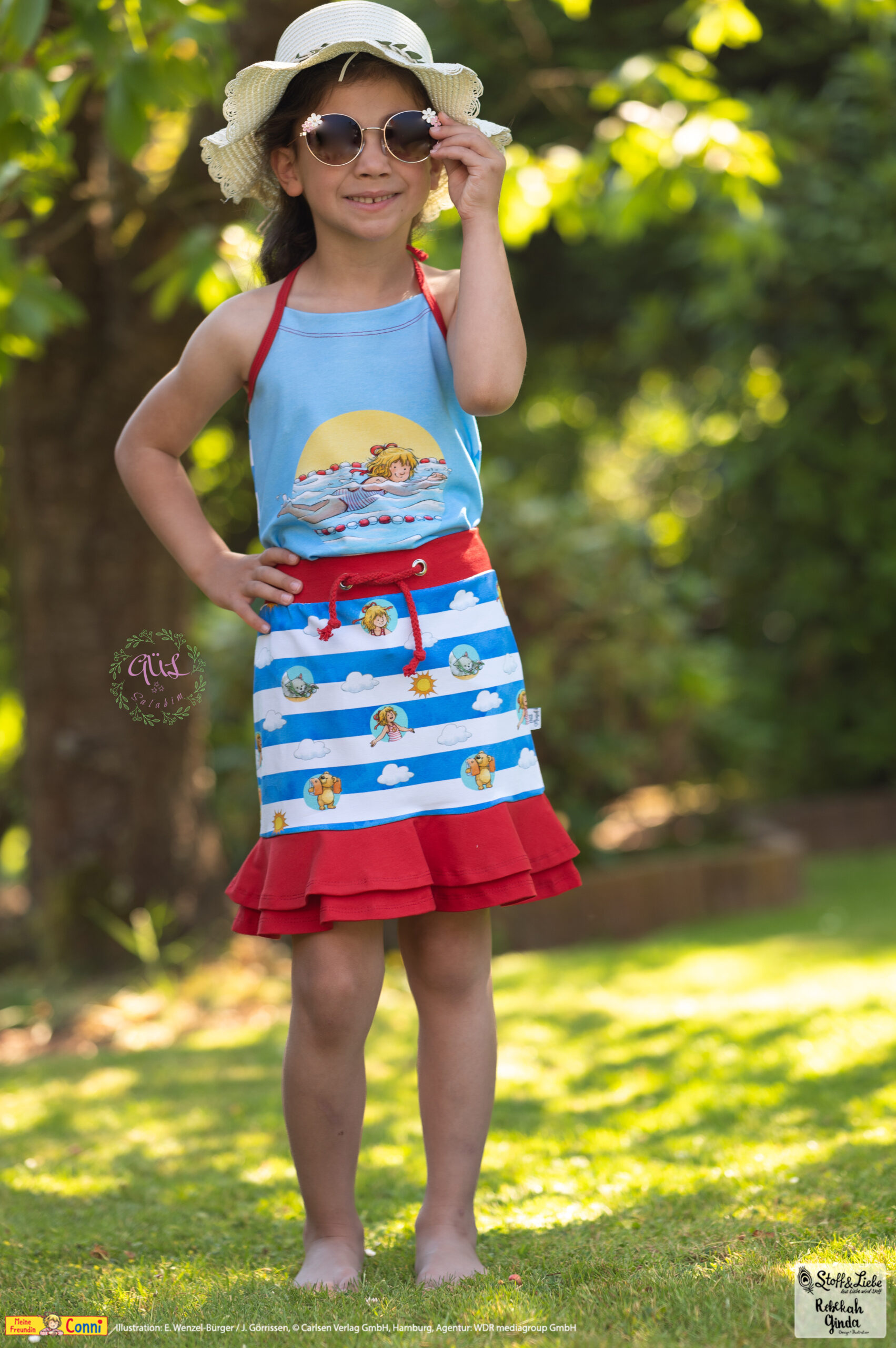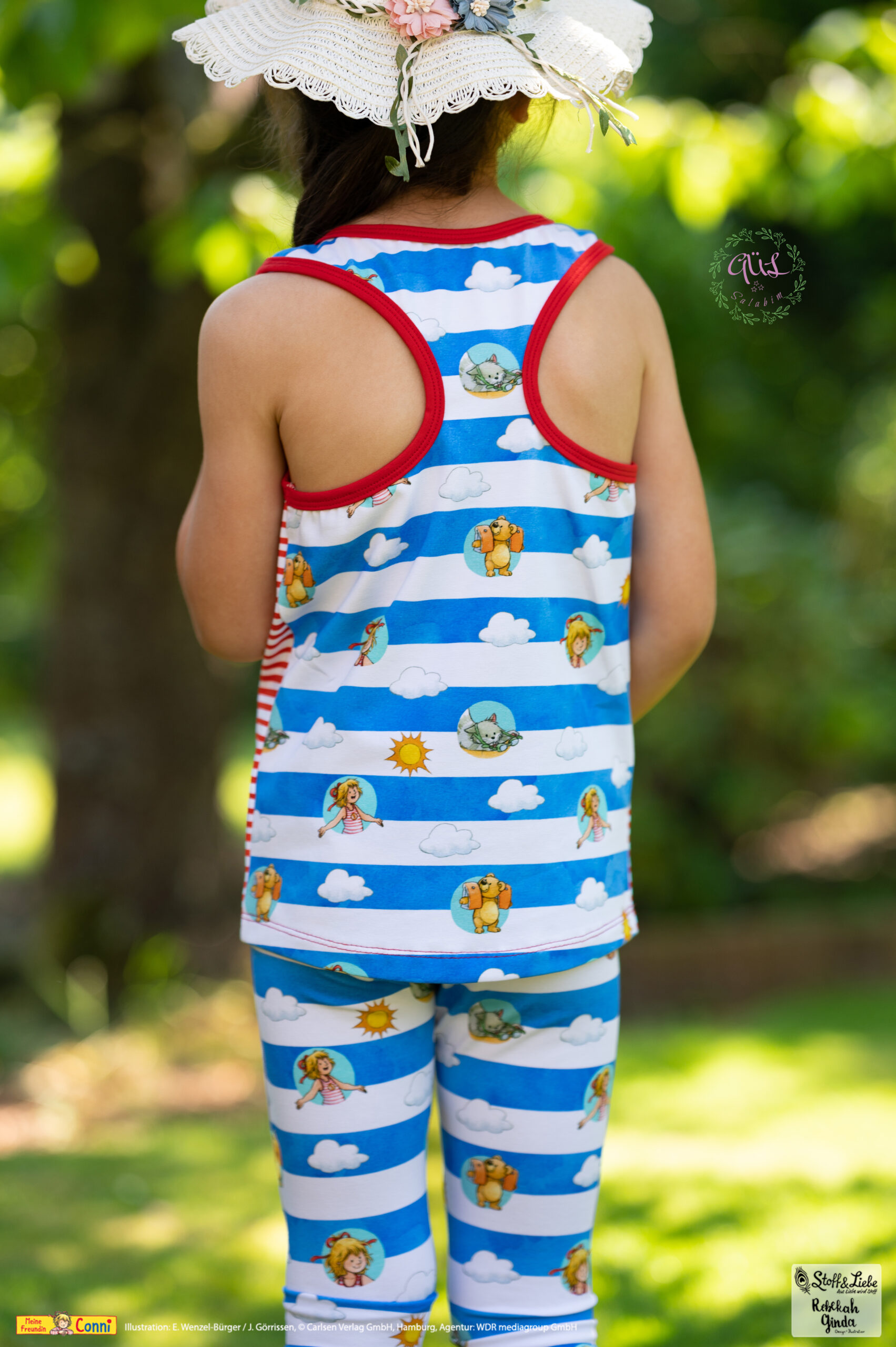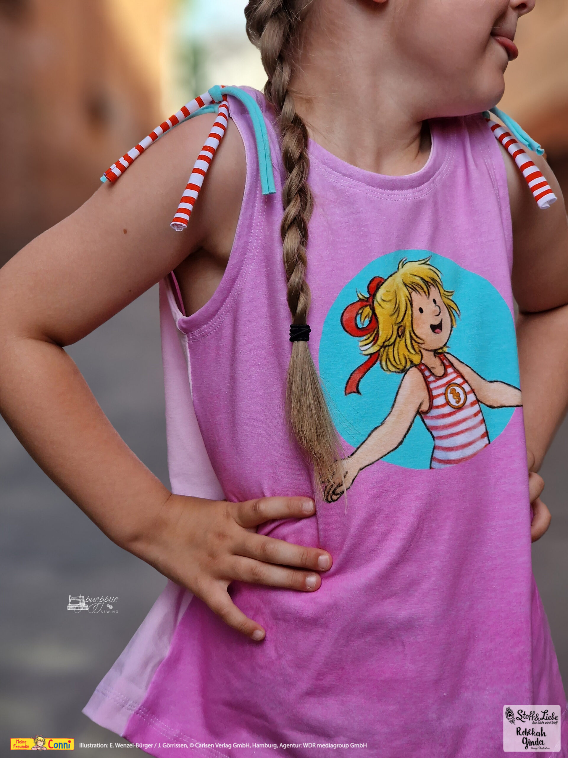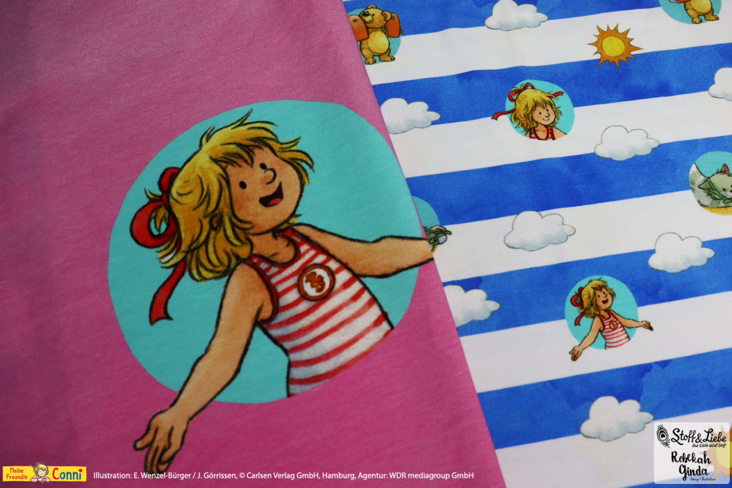 Außer dem Panel ist natürlich auch hier der Allover „Connis Freibadstreifen“ dabei. Der Allover lässt sich nicht nur prima mit den Panelteilen kombinieren, sondern ist auch solo vernäht ein absoluter Hingucker.