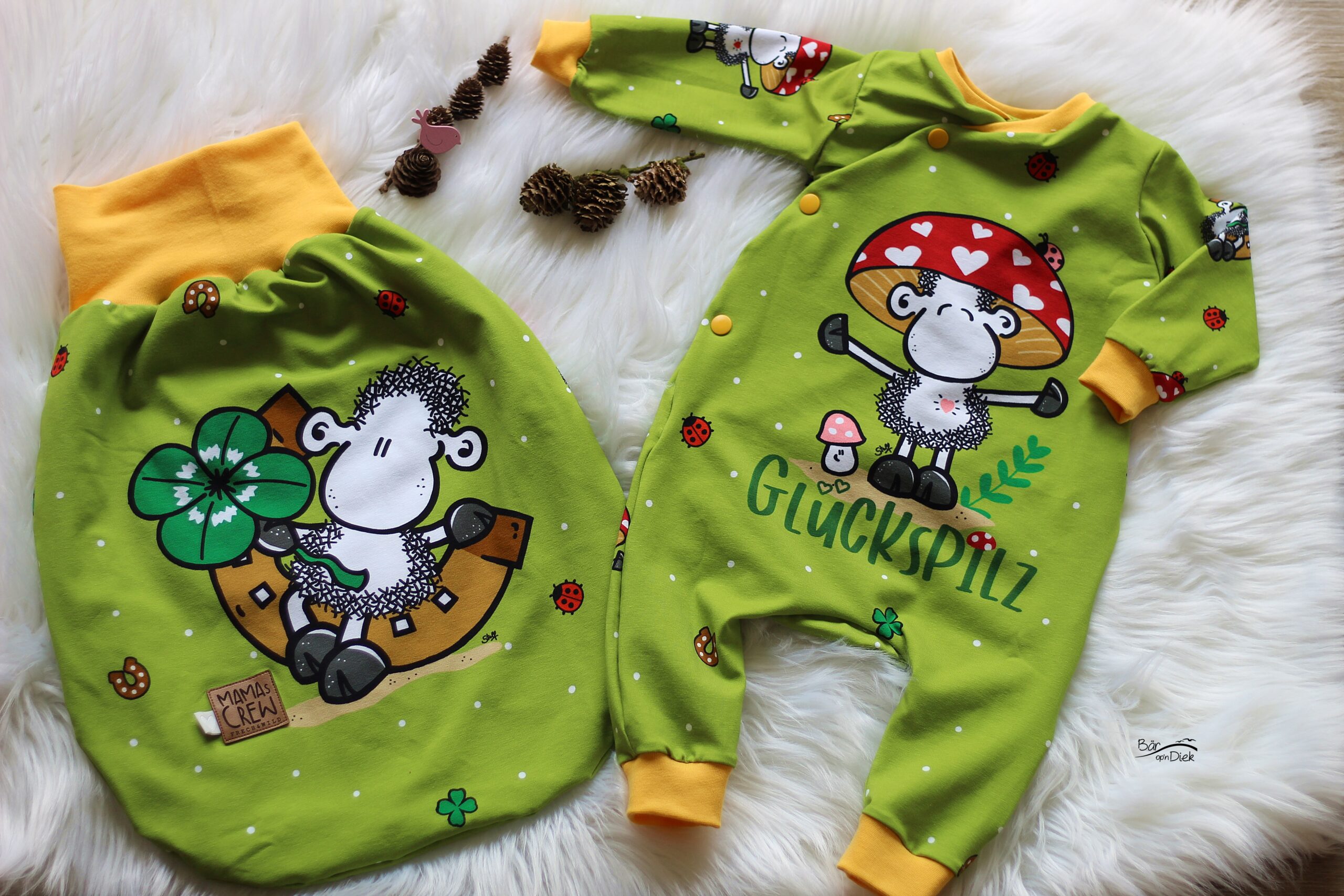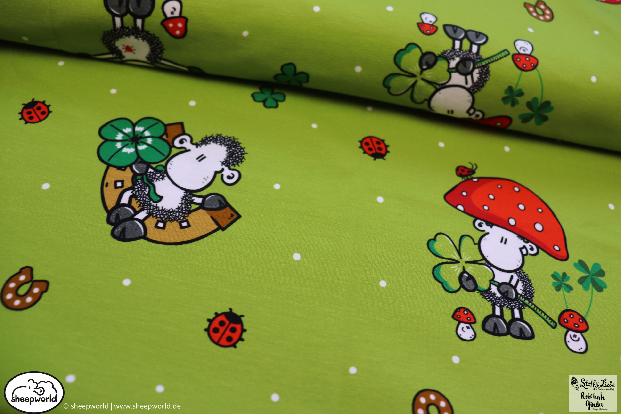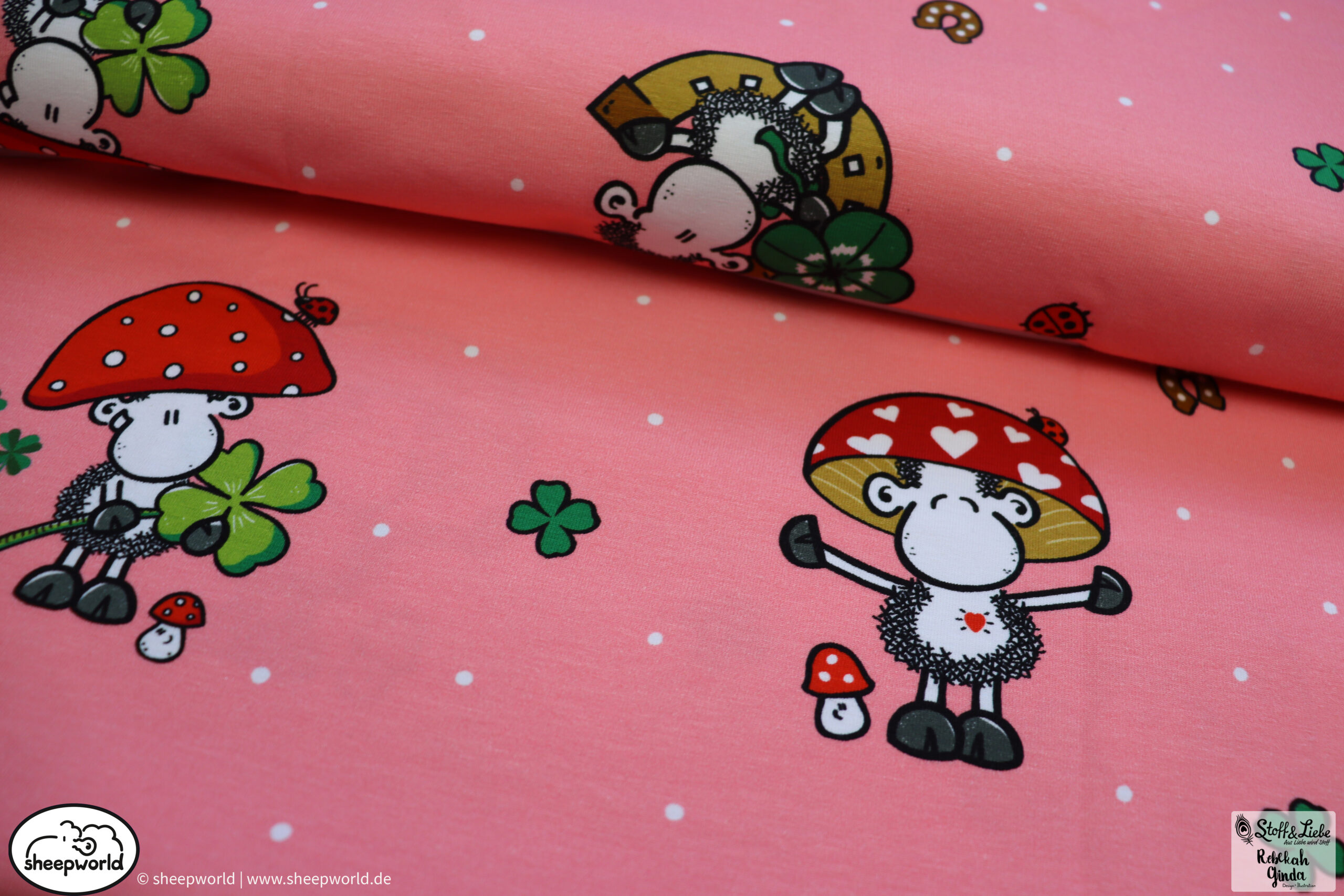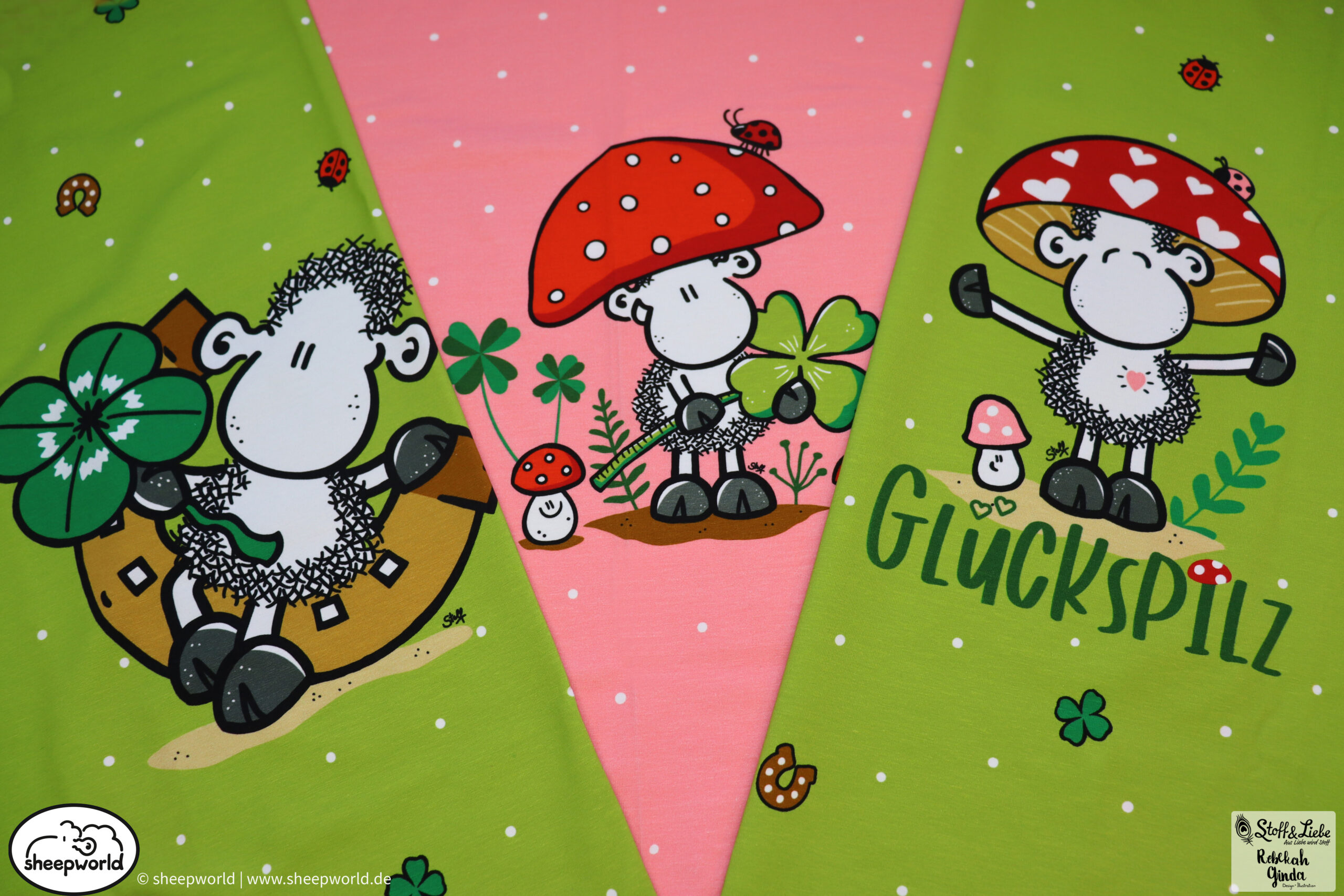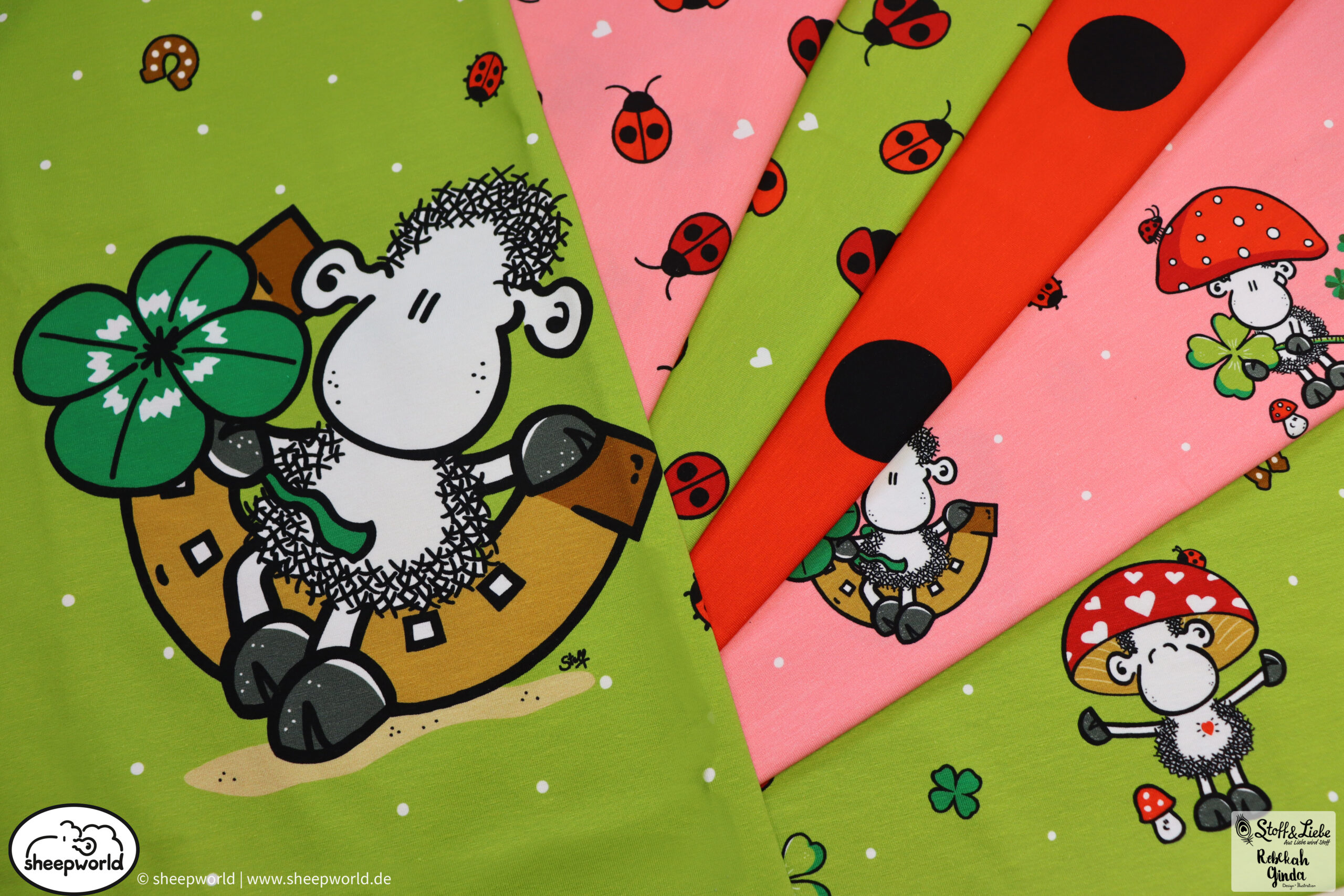 Unsere „sheepworld – Glückspilz“ Kollektion wurde umgesetzt von Rebekah Ginda Design. Wir haben für Euch ein Panel, einen Hauptstoff in zwei Farben und passend dazu zwei Kombistoffe, einer davon ebenfalls in zwei Farbvarianten. Die Stoffe dieser Kollektionen erscheinen auf Jersey und haben eine Materialzusammensetzung von 95% Baumwolle und 5% Elasthan.