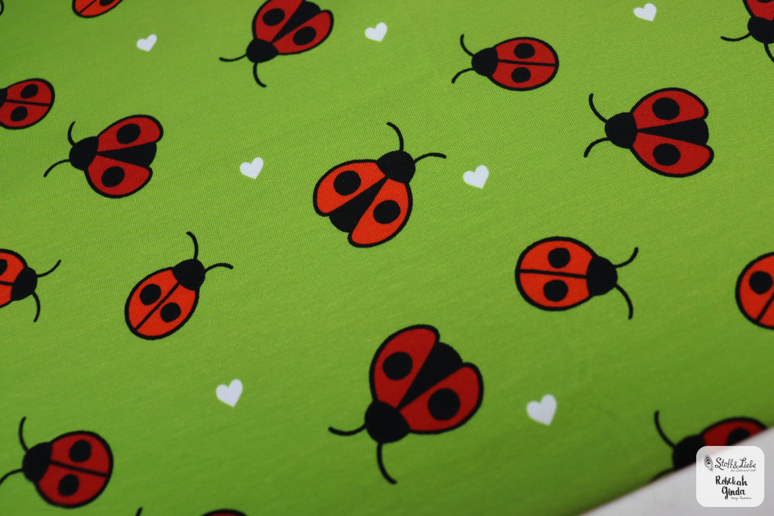 Und dann hätten wir für Euch noch unsere Ladybirds. Ebenfalls in Rosa und Hellgrün. So könnt Ihr wieder nach Herzenslust miteinander kombinieren und ganz nach Eurer Vorliebe entweder die Stoffe einer Farbgruppe verwenden oder bunt mischen, denn alle Stoffe passen wieder perfekt zusammen.