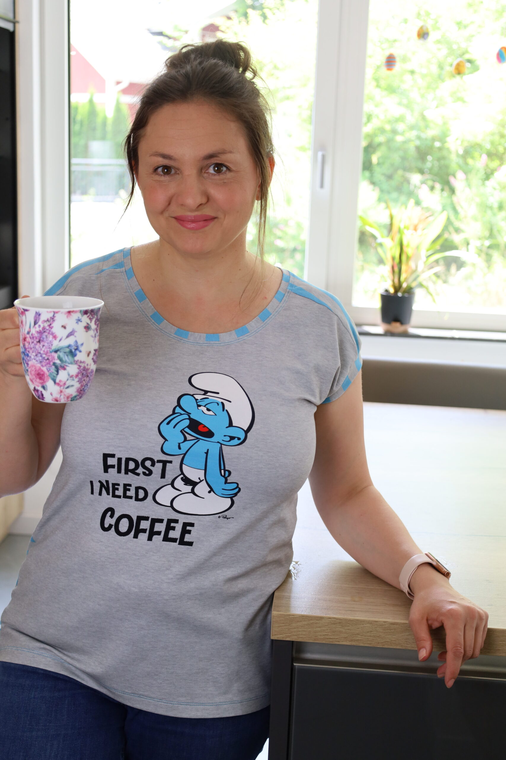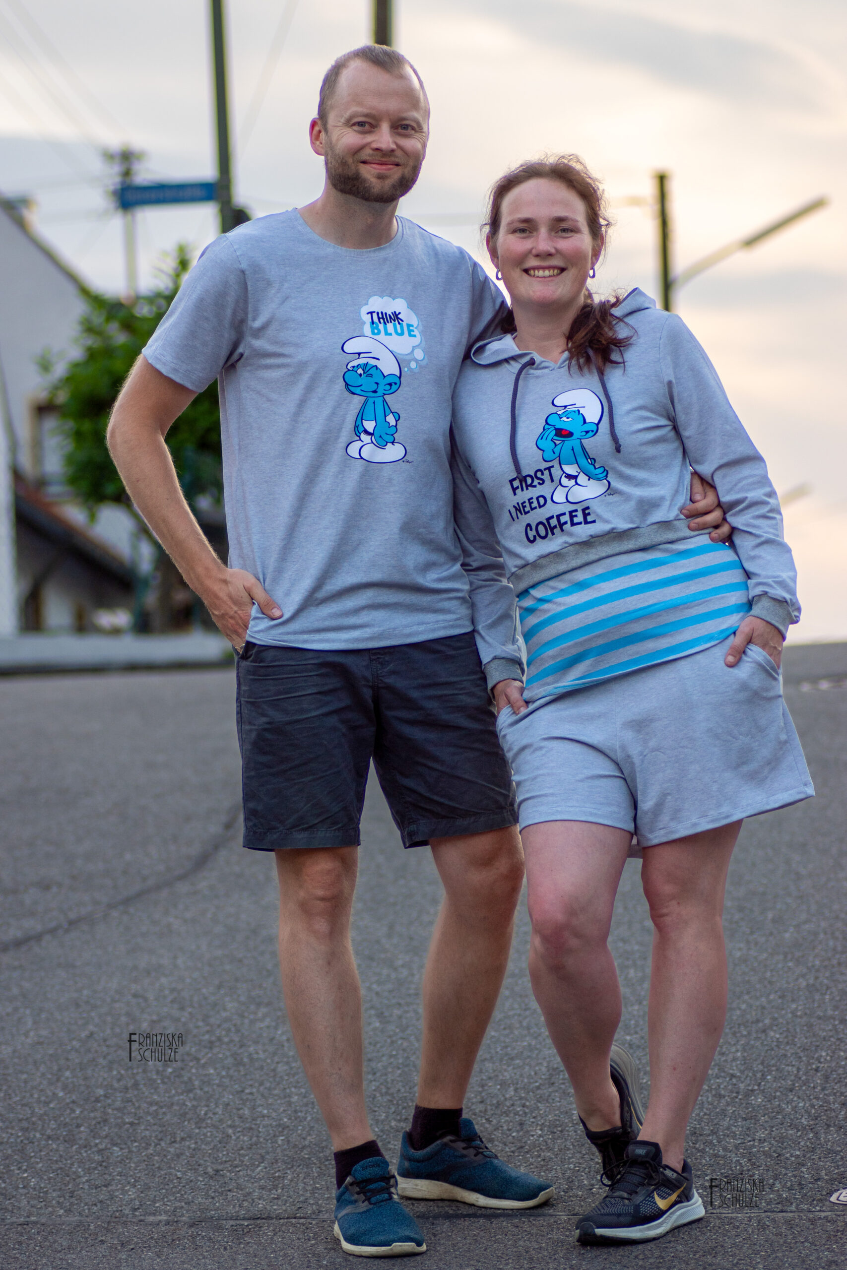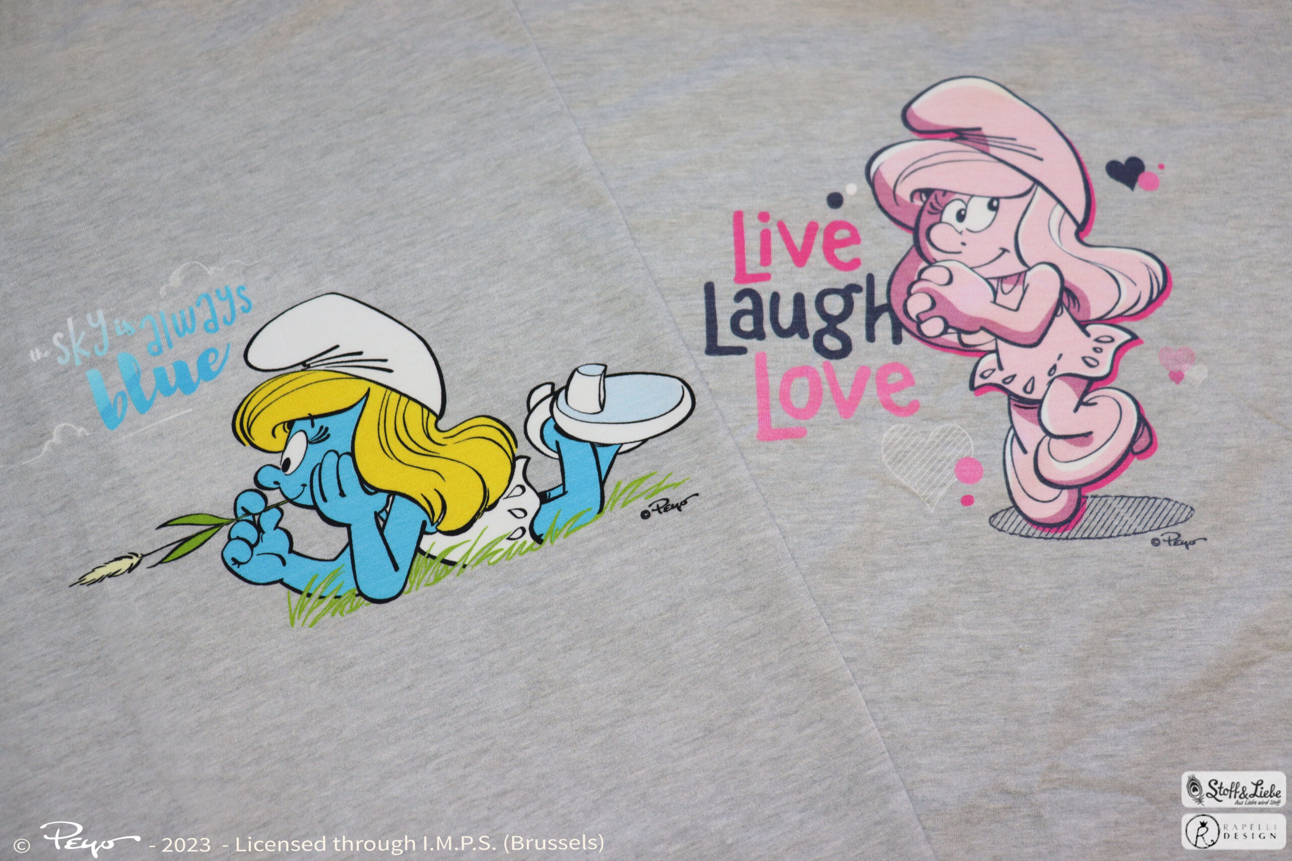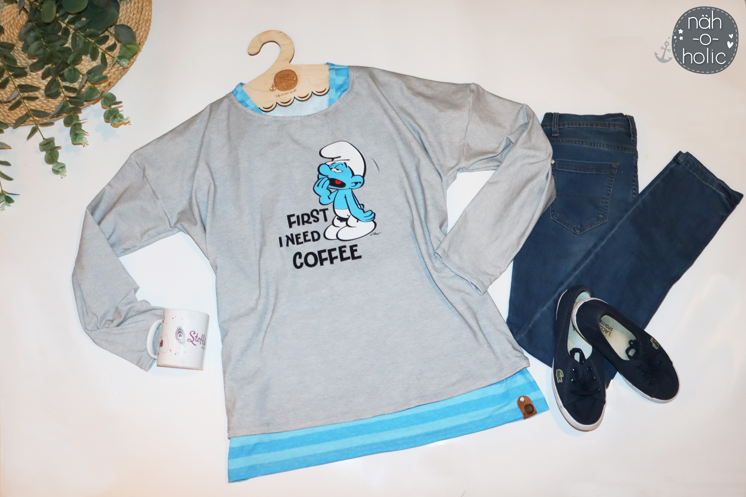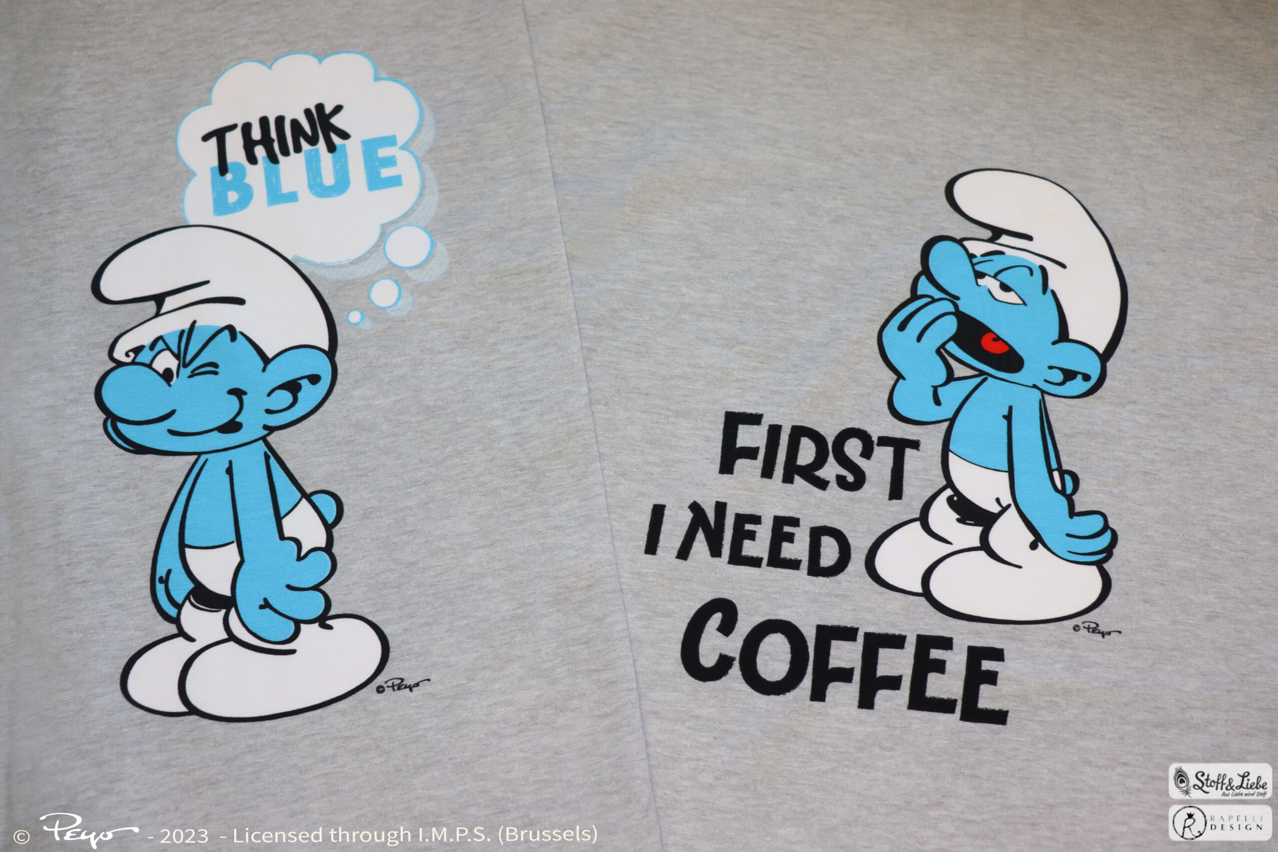 Und wisst Ihr was? Wenn wir die Slogans der Schlümpfe so lesen, dann sehen wir, das sie auch nicht anders sind als wir, oder sind wir wie die Schlümpfe? Wer kann denn auch nicht ohne Kaffee am Morgen leben? Und für wen ist „Leben, Lieben, Lachen“ ein Lebensmotto? Wir könnten ewig so weiter machen, aber wir möchten Euch nicht länger auf die Folter spannen und unsere neue Kollektion präsentieren! In diesem Sinne: Think Blue!