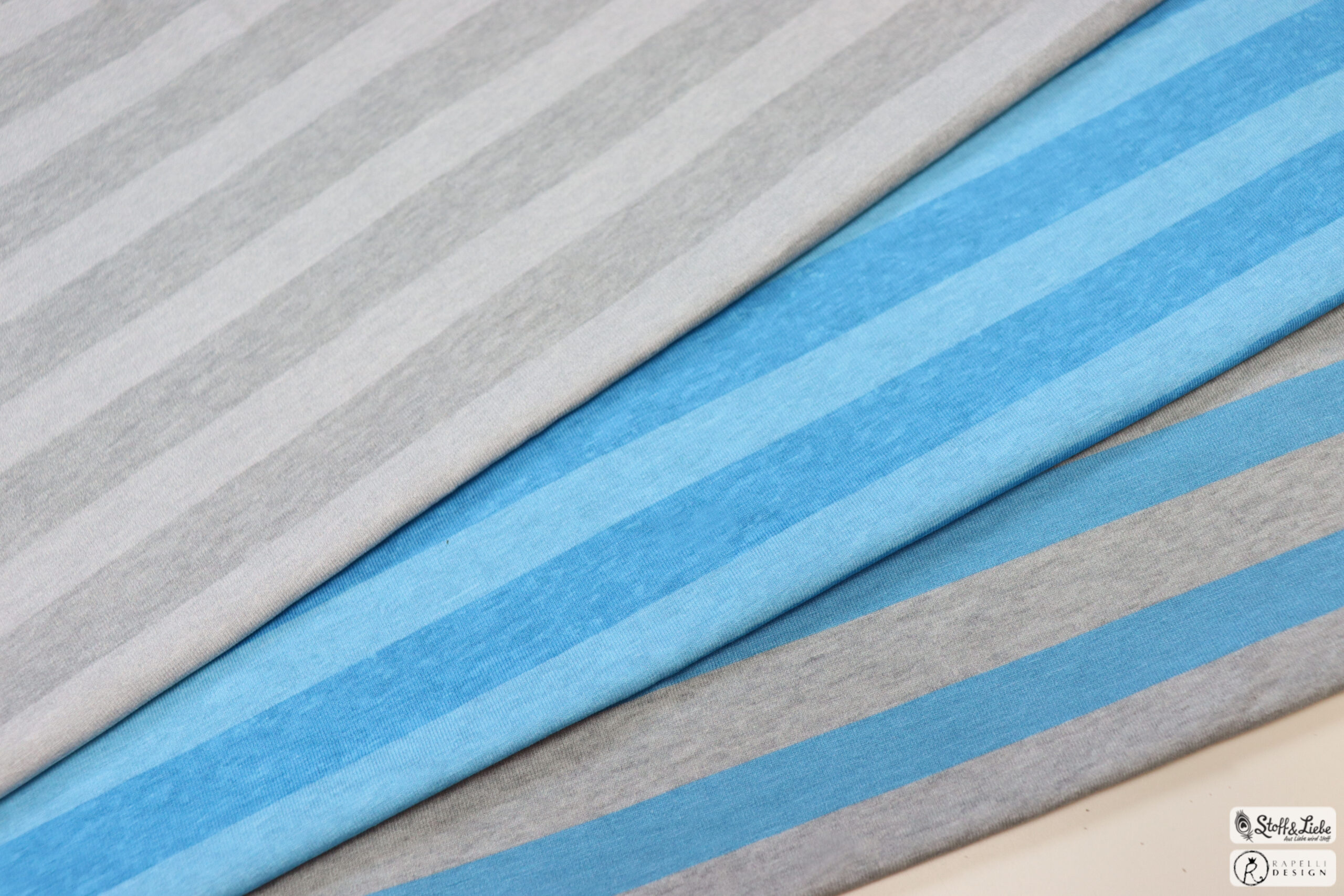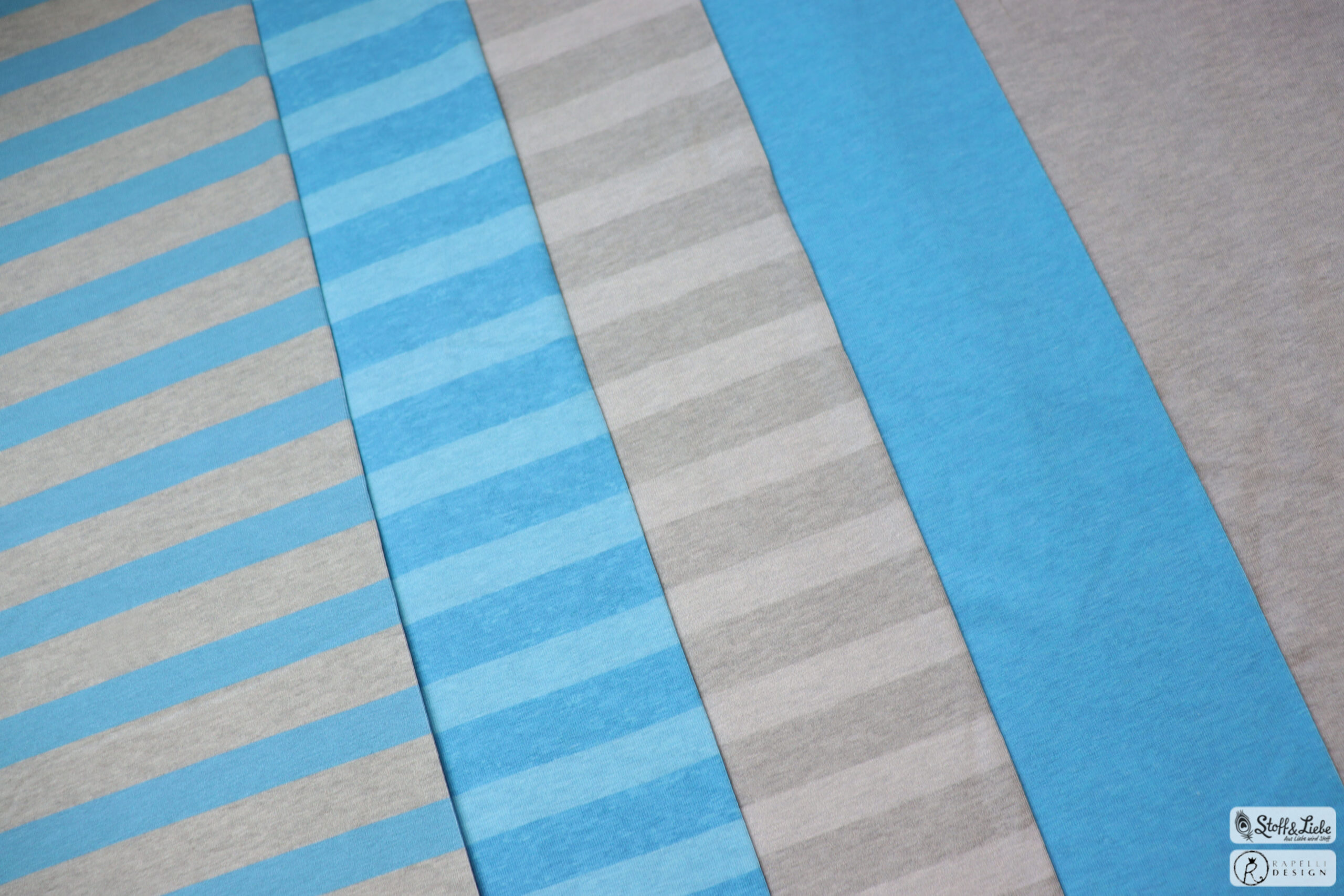 Wie schon erwähnt haben wir diesmal wieder für Euch Streifen im Gepäck. Zu dieser Kollektion gehören direkt drei Farbstellungen: Melange Grau, Melange Grau-Blau und Melange Blau.