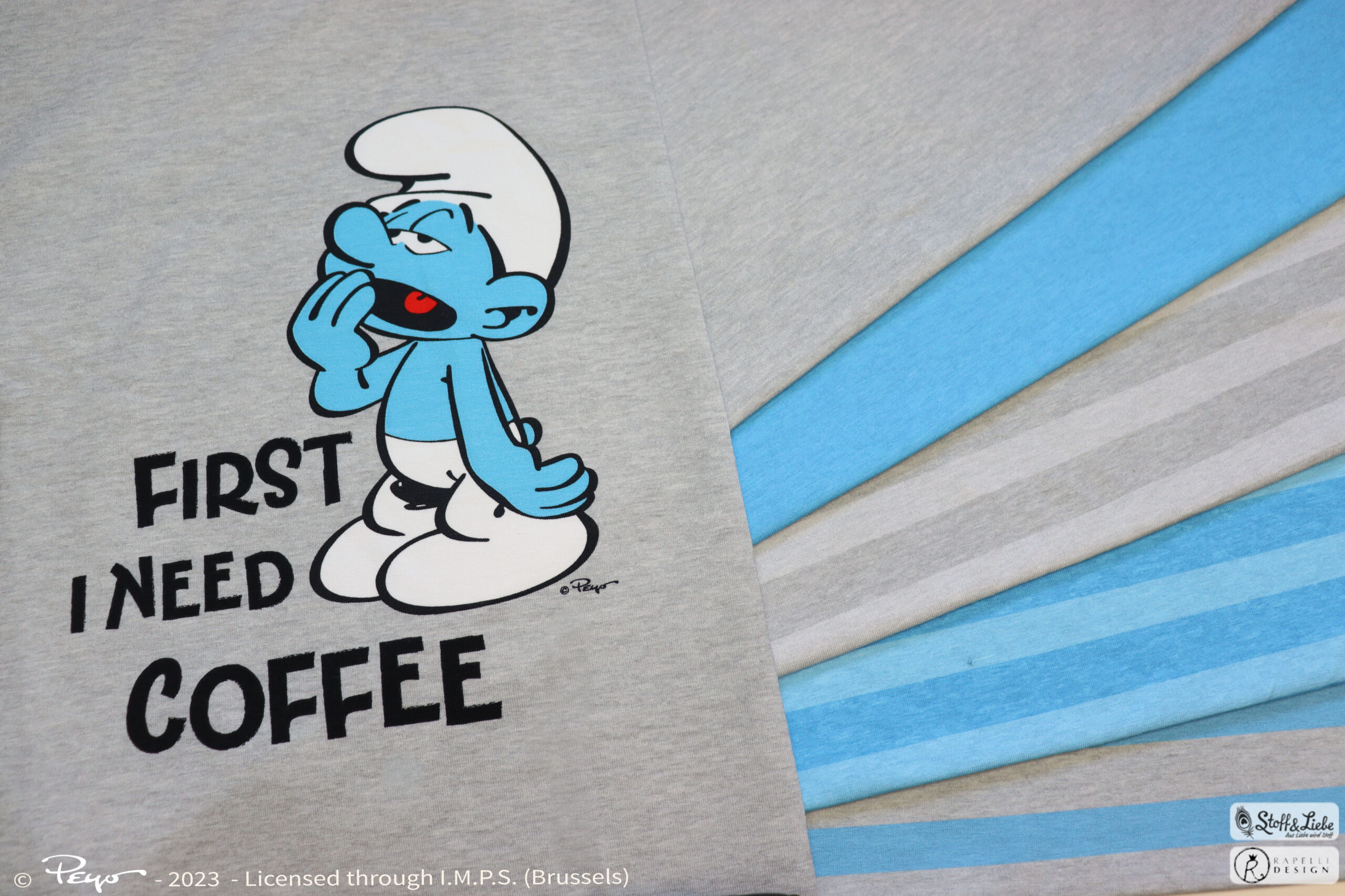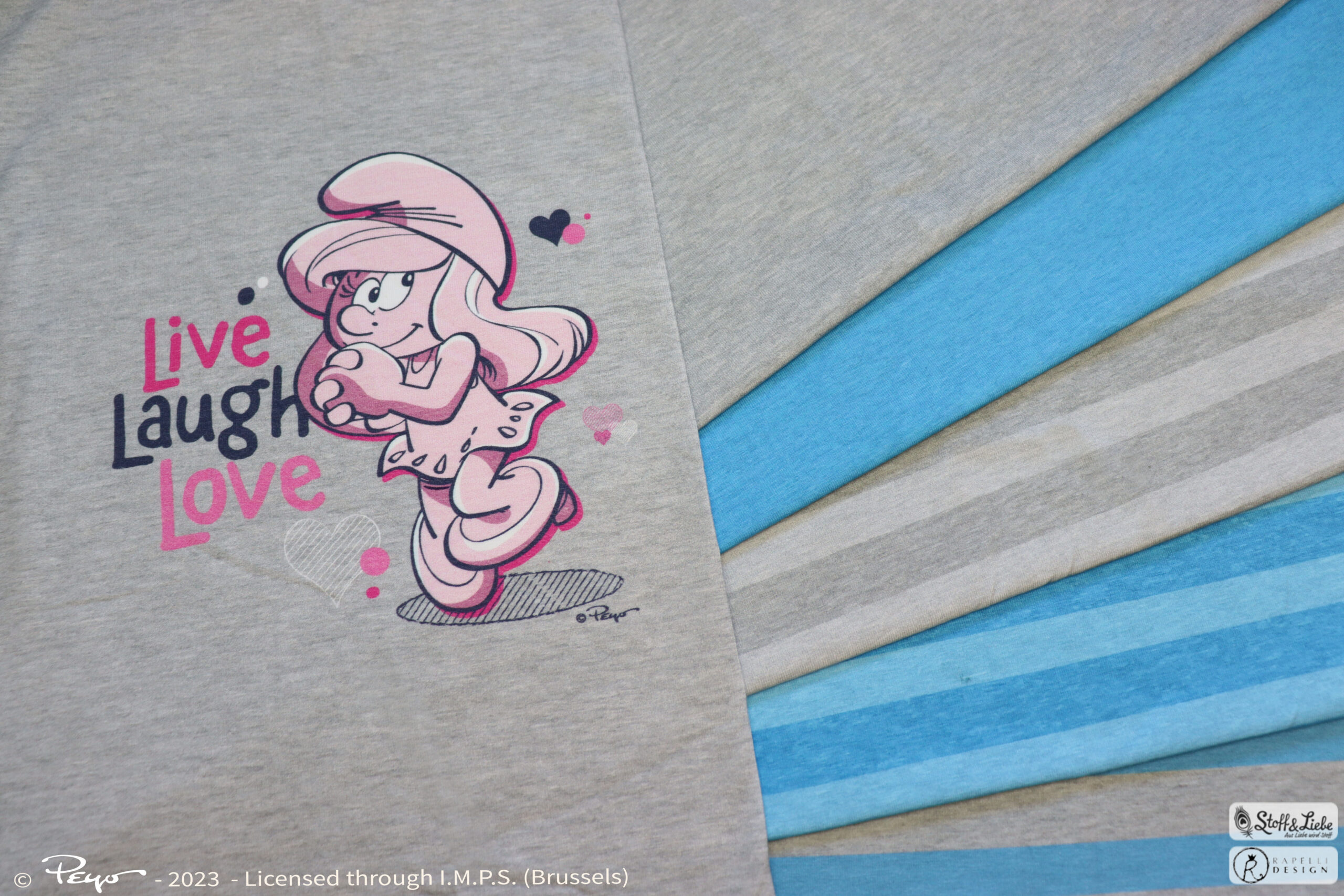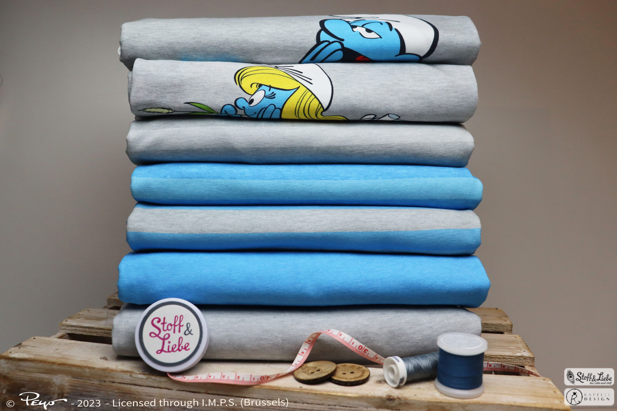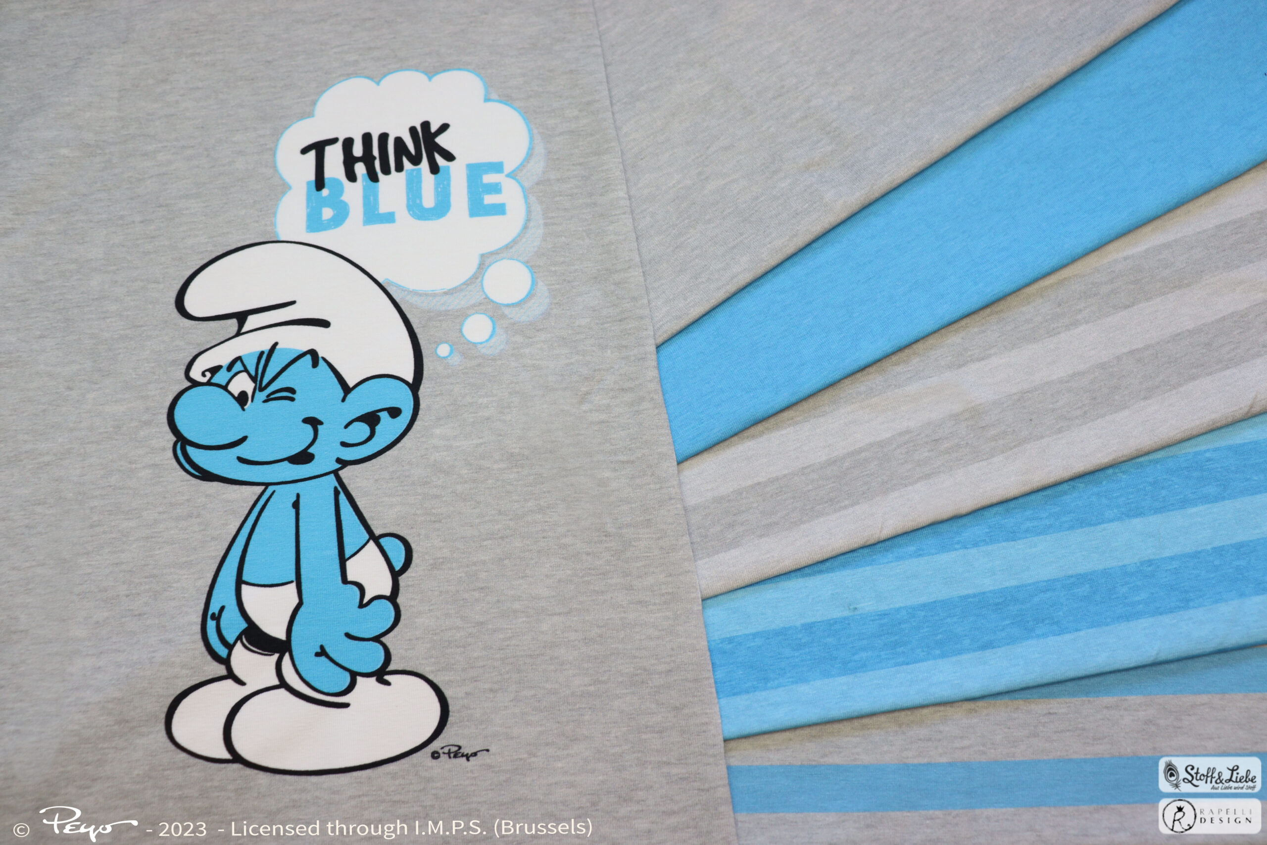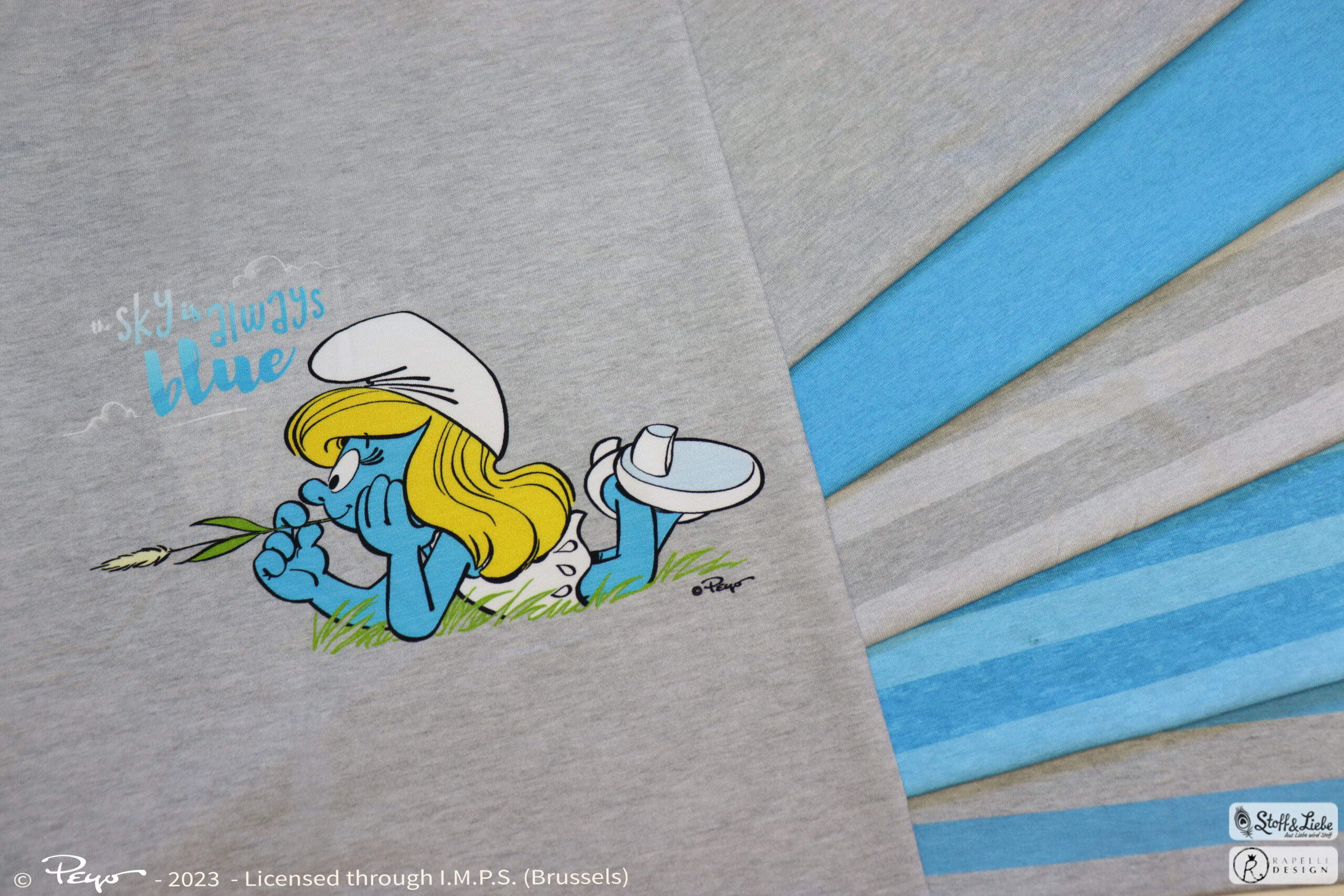 Wir haben für Euch eine eher schlichte aber schlumpfige Kollektion mit perfekt aufeinander abgestimmten Stoffen. Neben zwei Panel erhaltet Ihr gleich zwei Kombistoffe in mehreren Farbvarianten. Alle Stoffe erhaltet Ihr auf Jersey in unserer gewohnten Spitzenqualität. Die Materialzusammensetzung beträgt 95 % Baumwolle und 5 % Elasthan. Dieses Design wurde von Rapelli Design für uns umgesetzt.
