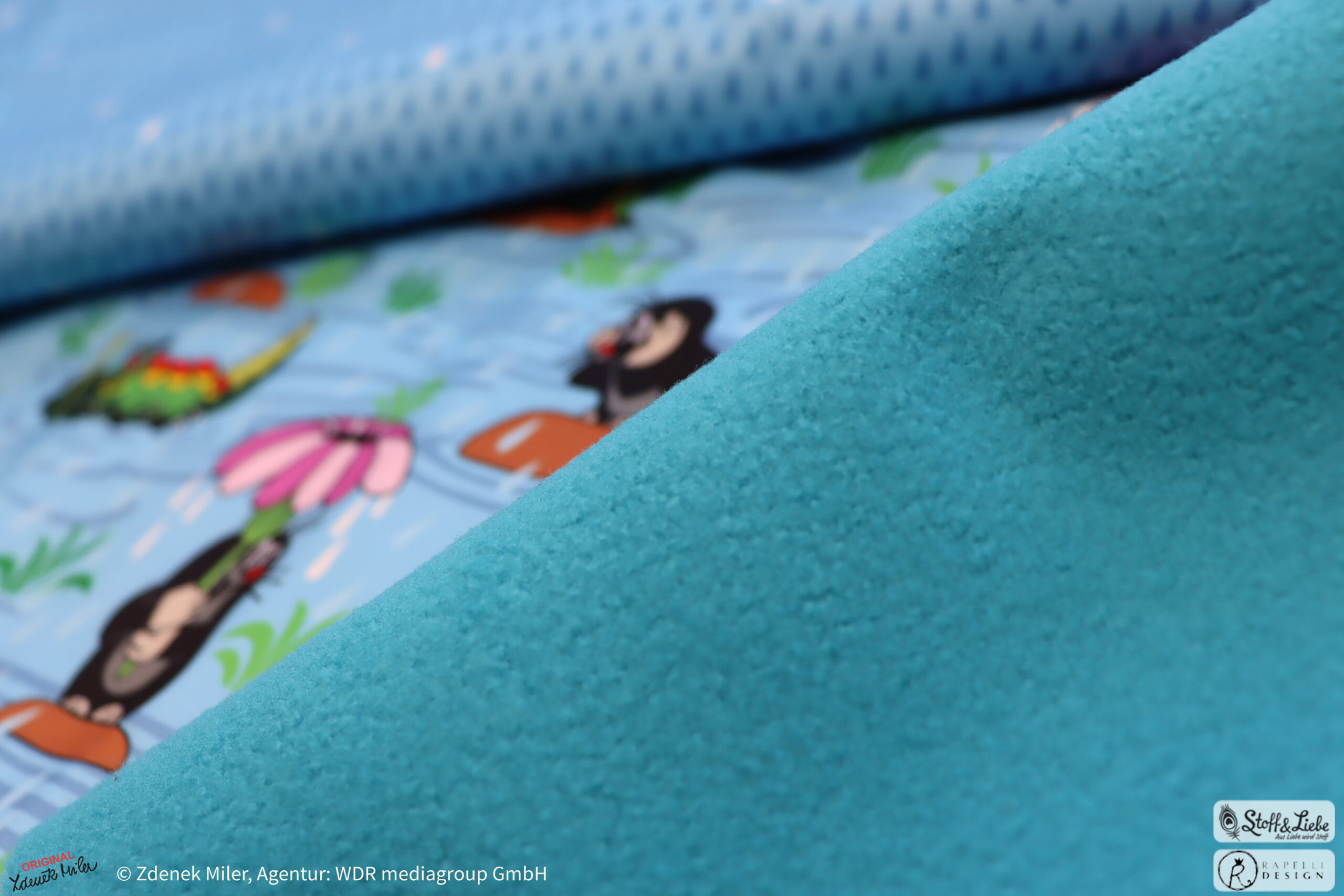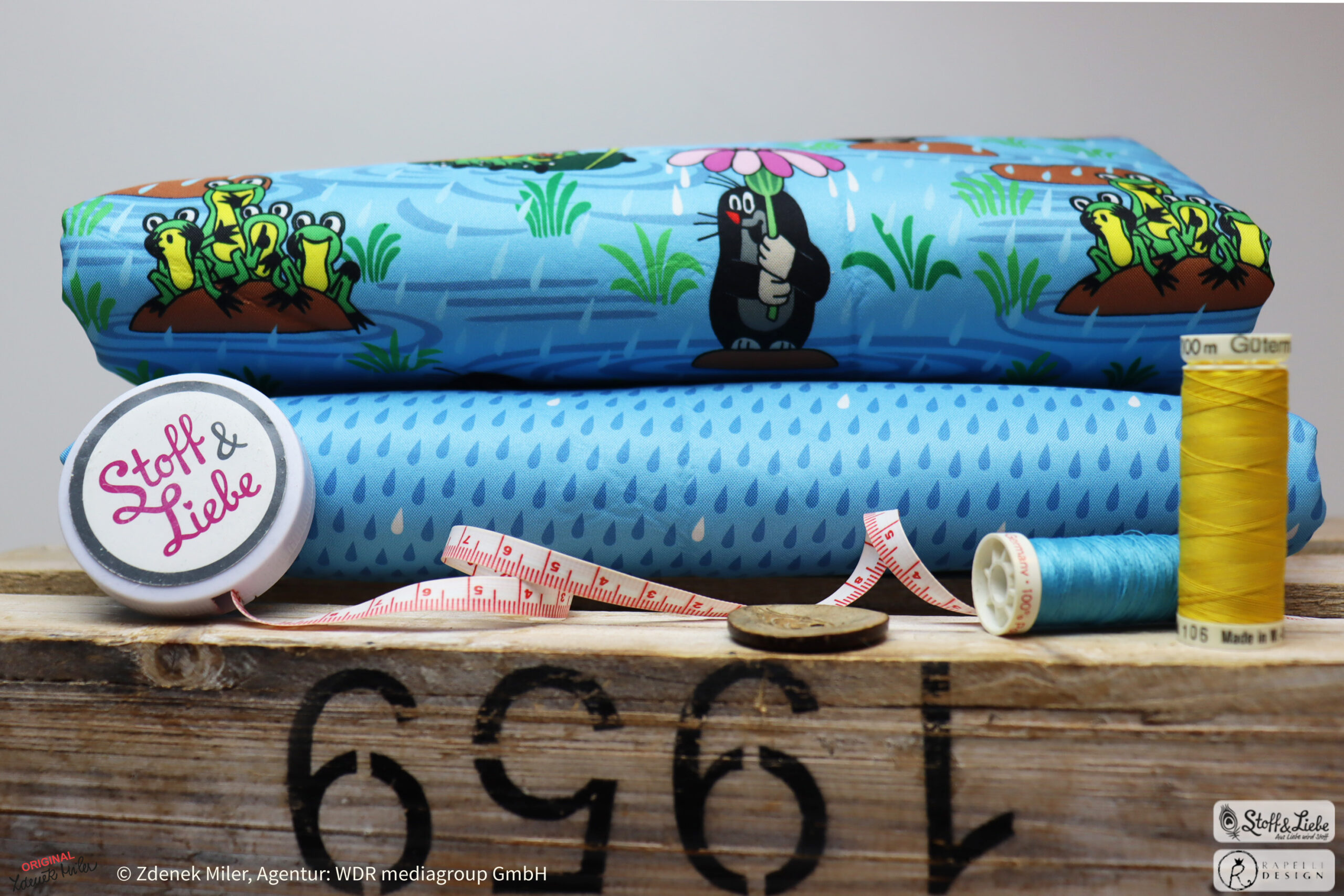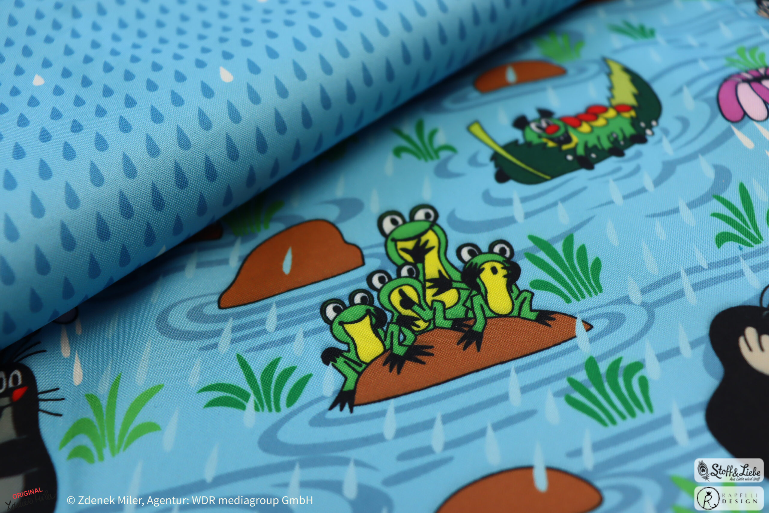 Unsere „Der kleine Maulwurf – Regentag“ Kollektion wurde natürlich umgesetzt von Rapelli Design und hält das bekannte Allover-Motiv „Regentag“ samt Kombistoff, den Regentropfen für Euch bereit.