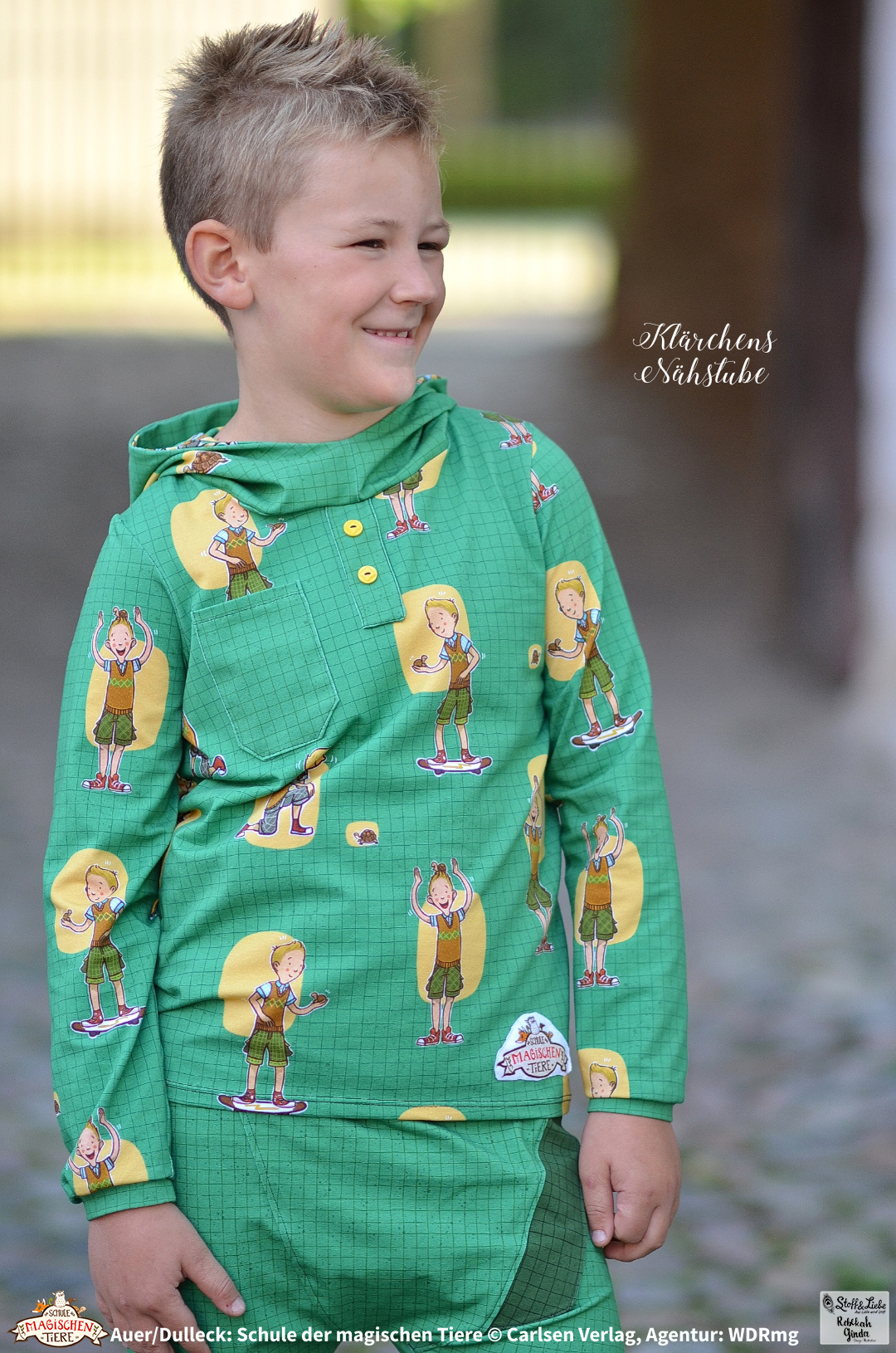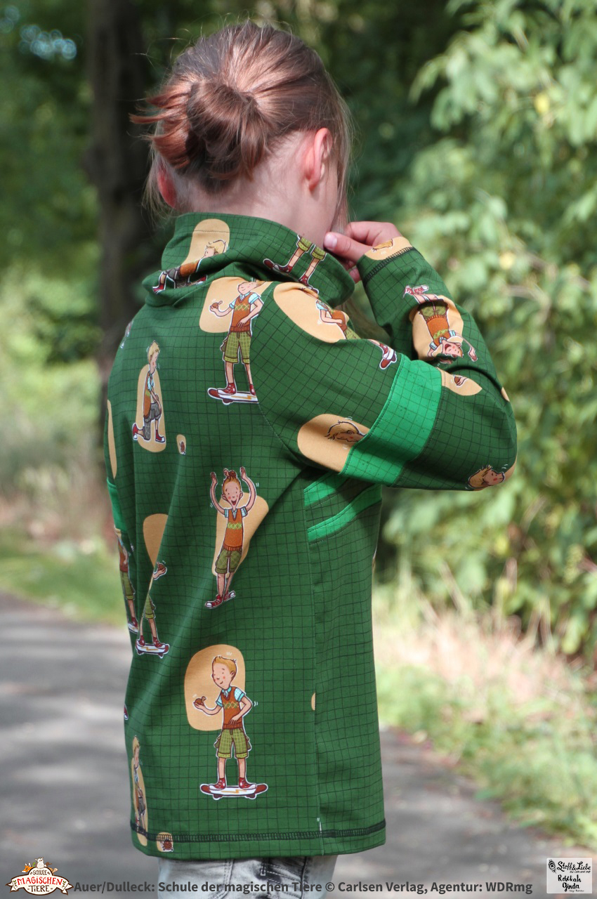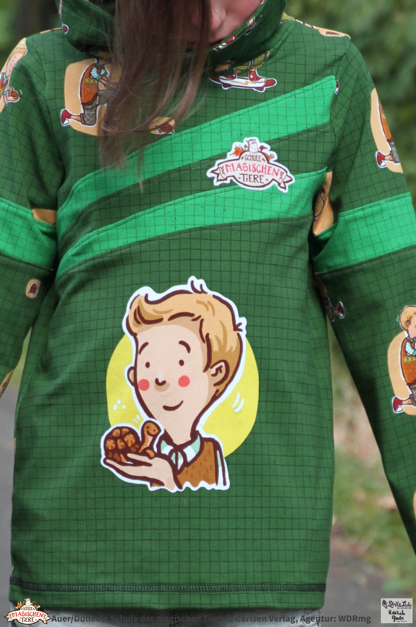 Dieses Panel hat eine Gesamthöhe von ca. 90 cm. Auf den oberen Teil entfallen hierbei ca. 70 cm und auf die Leiste mit den Buttons ca. 20 cm. Somit ist das Panel perfekt auch für größere Fans der „Schule der magischen Tiere“ vernähbar und die Buttons in vielen Bereichen einsetzbar. Hier sind Applikationen genauso möglich wie z.B. kleine Täschlein. Bestimmt fallen Euch aber noch jede Menge anderer Einsatzmöglichkeiten ein, oder?