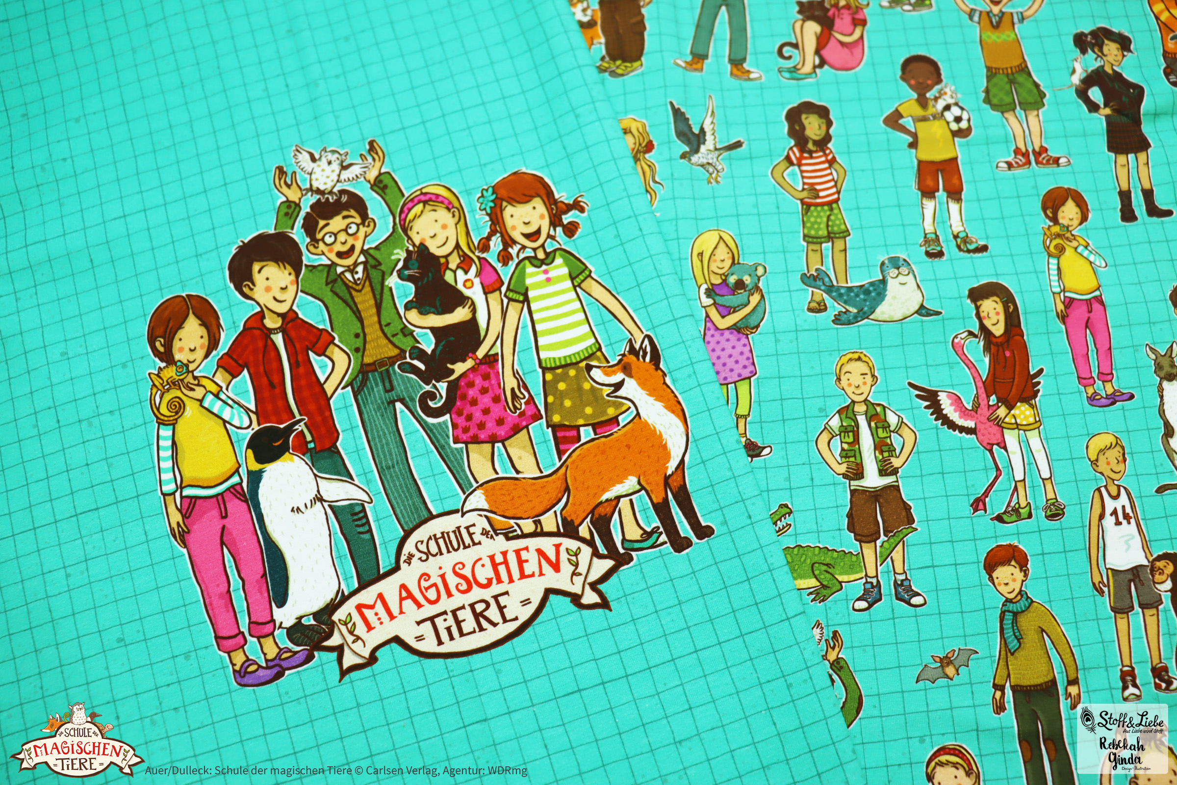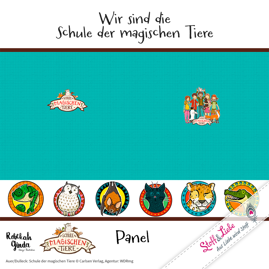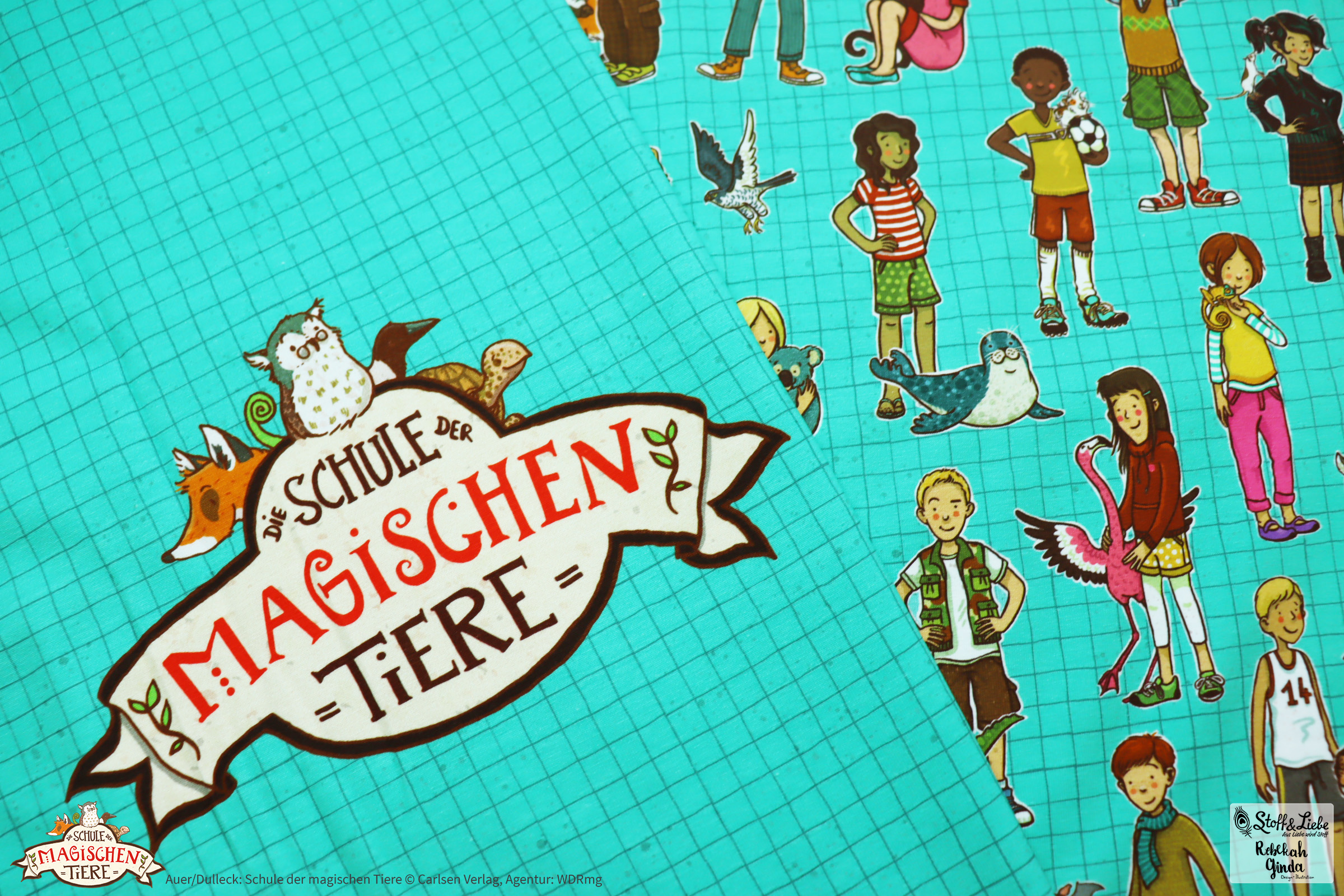 Zu „Wir sind die Schule der magischen Tiere“ Serie gehört ein Panel, ein Allover und ein Kombistoff.