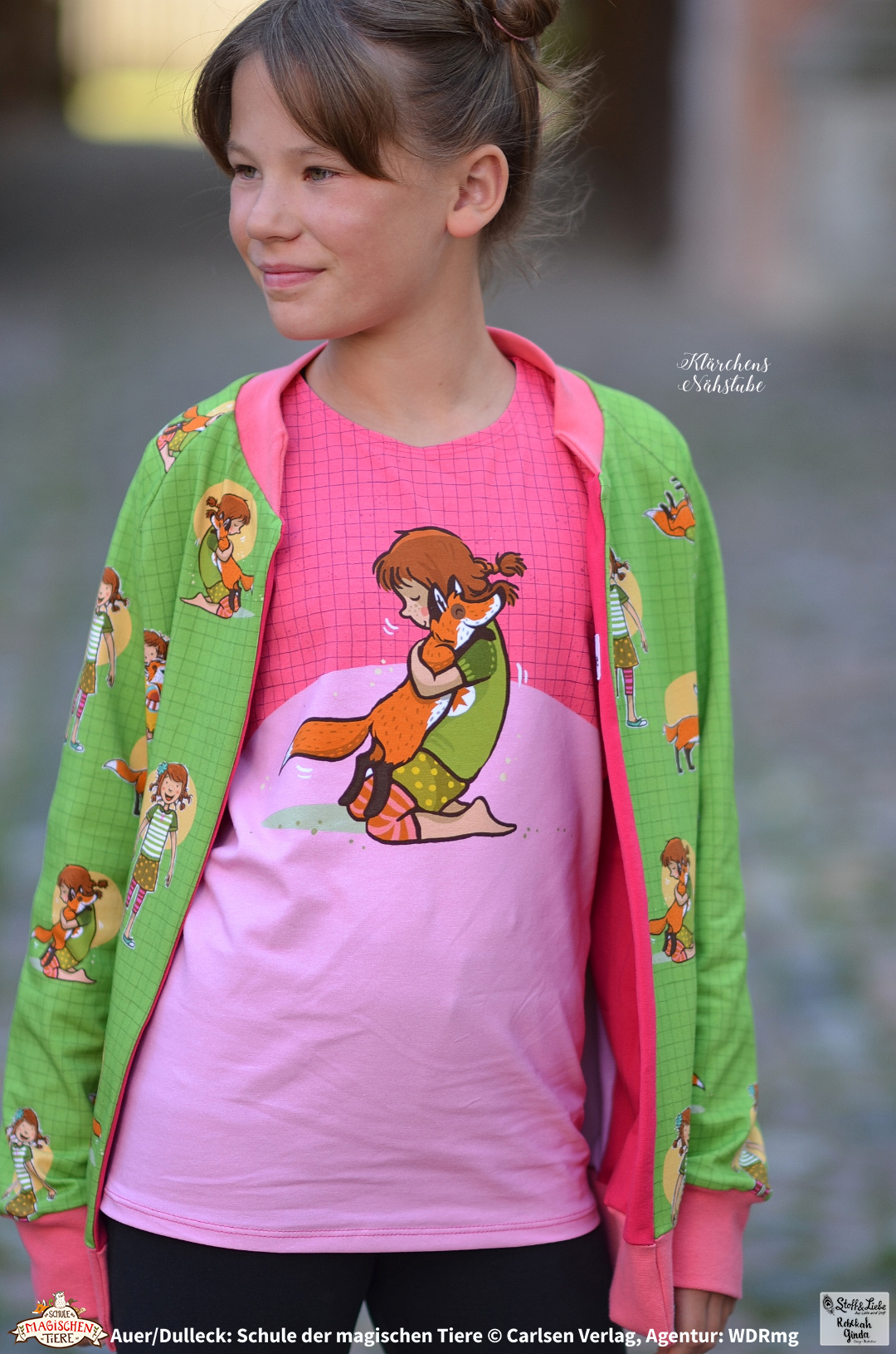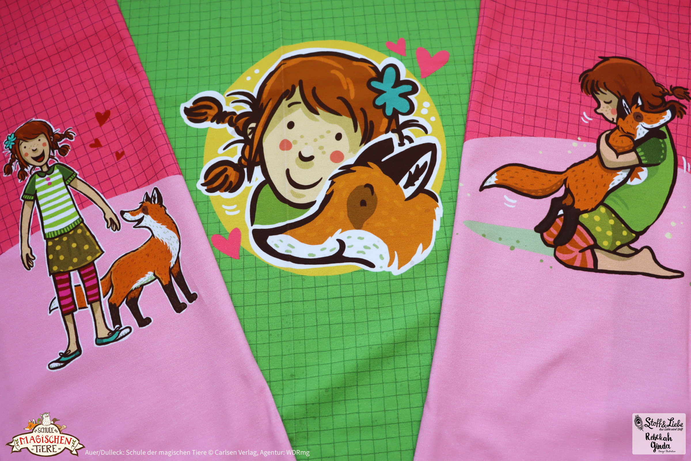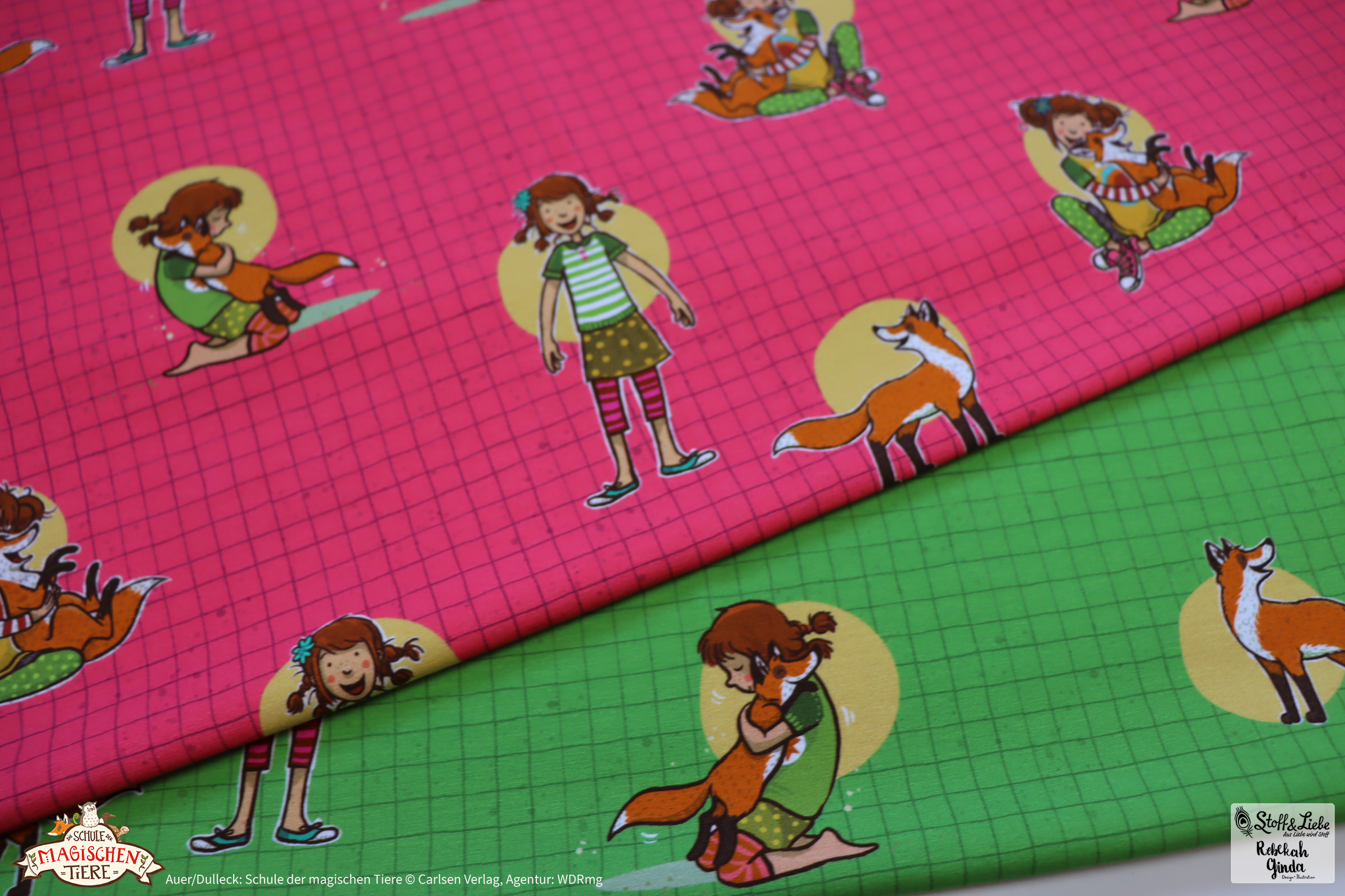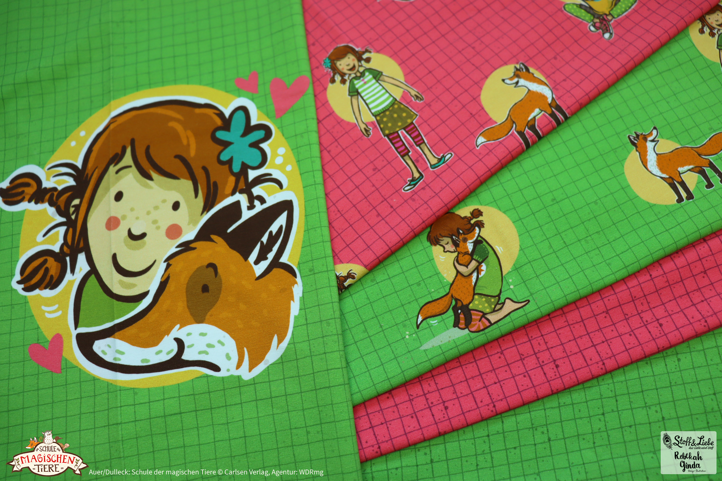 Zu „Wir sind die Schule der magischen Tiere“ Serie gehört ein Panel, ein Allover und ein Kombistoff.