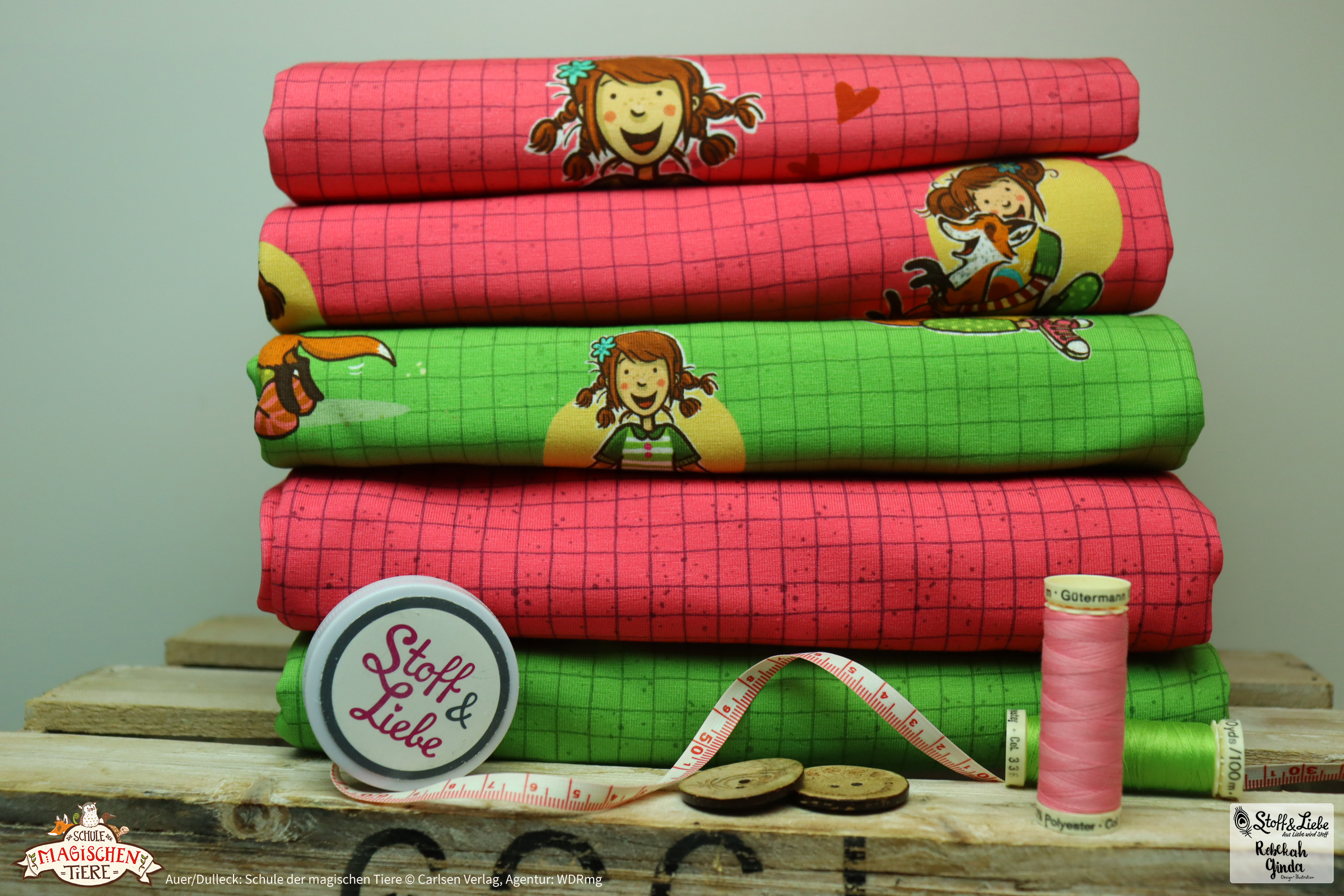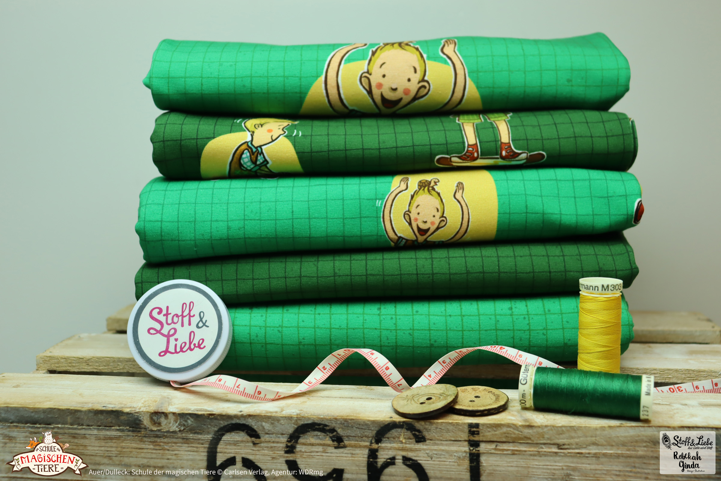 Eine Kollektion, die keine Wünsche offen lässt und Euch erneut die Möglichkeit gibt, Lieblingsoutfits passend zu den Büchern zu nähen und aller Welt zu zeigen, für wen Euer Herz schlägt. Oder wie wäre es mit ein paar kuscheligen Kissen oder einer Decke, um gemütlich dem nächsten Hörspiel zu lauschen oder eines der Bücher zu verschlingen? Lasst Eurer Kreativität freien Lauf und zeigt uns später unbedingt, was Ihr aus diesen Stoffen genäht habt. Wir sind so gespannt darauf.