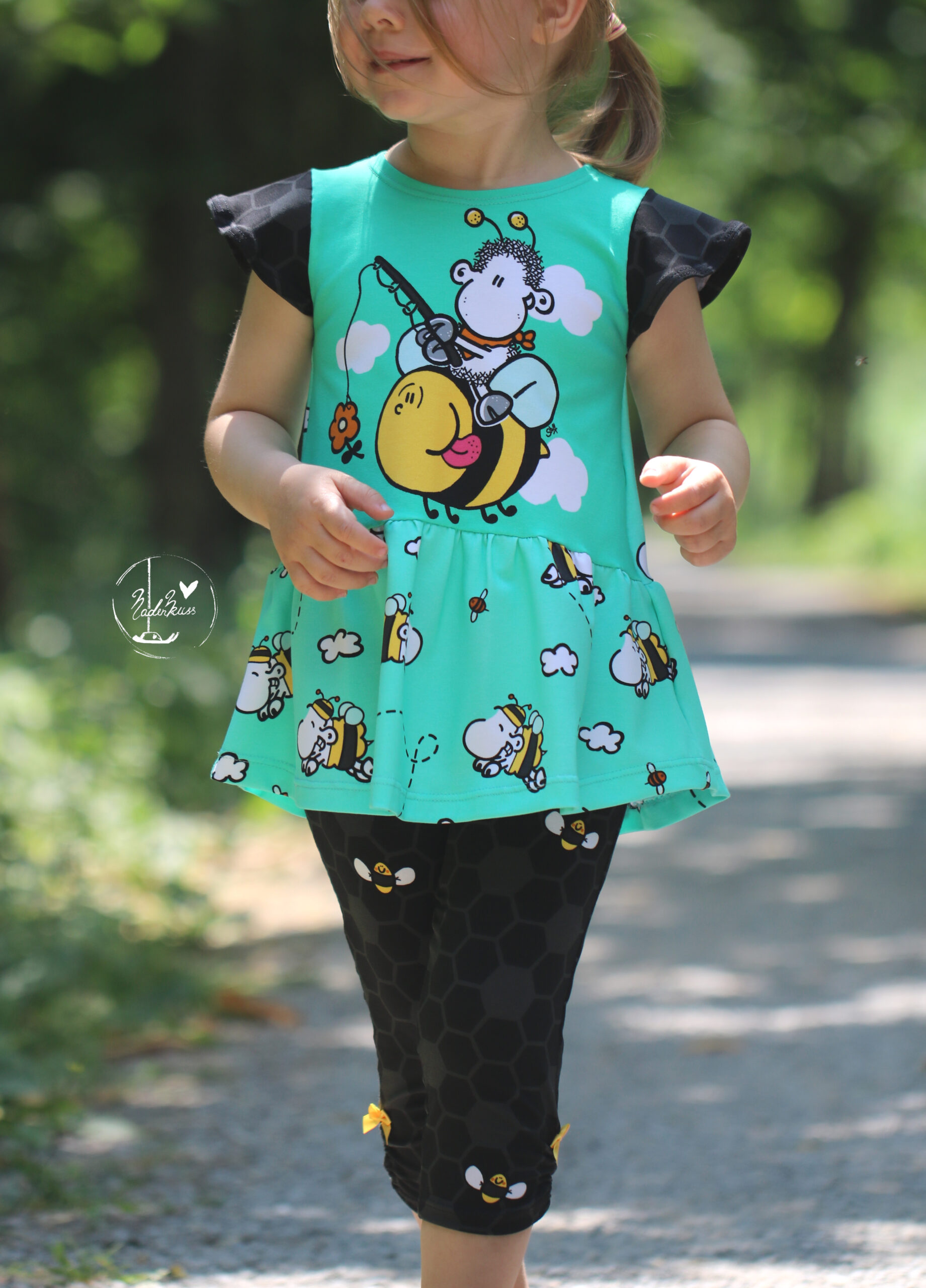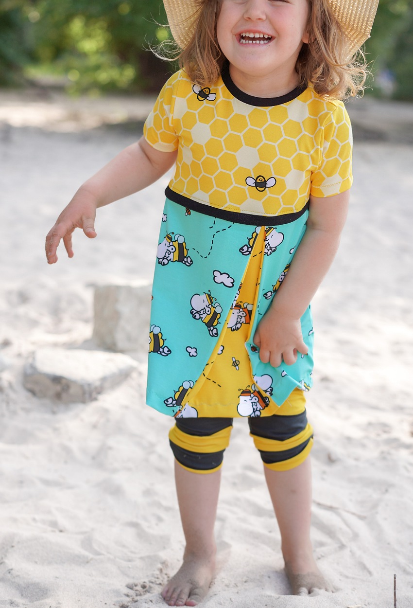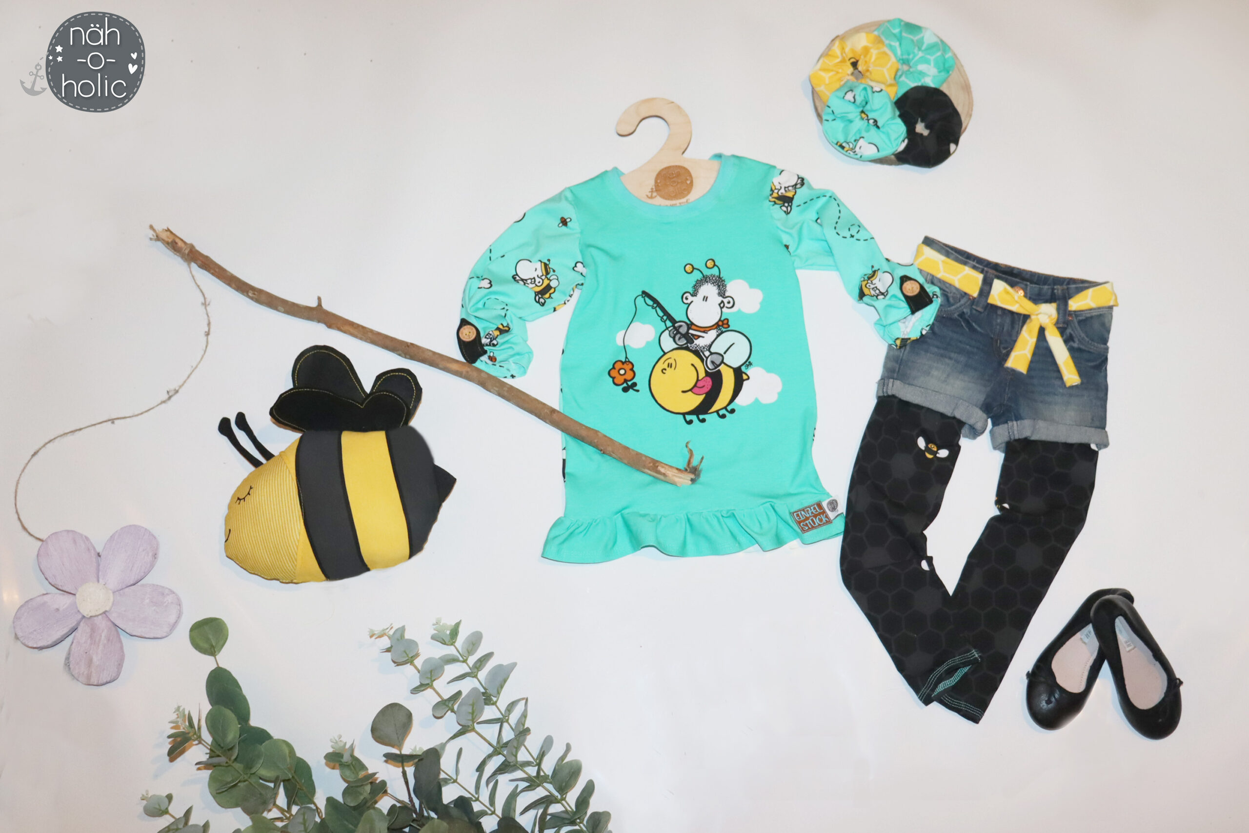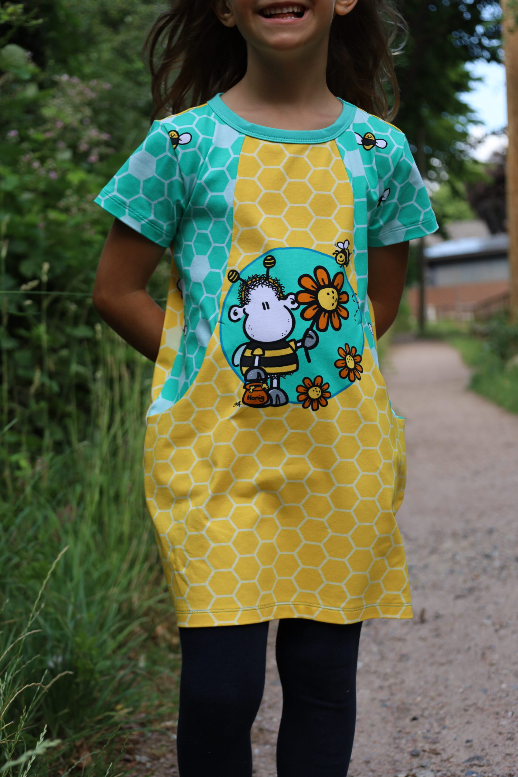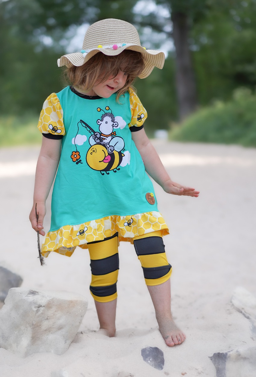 Don’t worry – bee happy! Den Allover „Honigsüß“ bekommt Ihr in zwei Farben: Gelb und Mint.