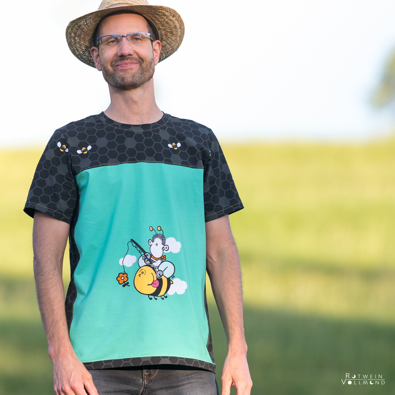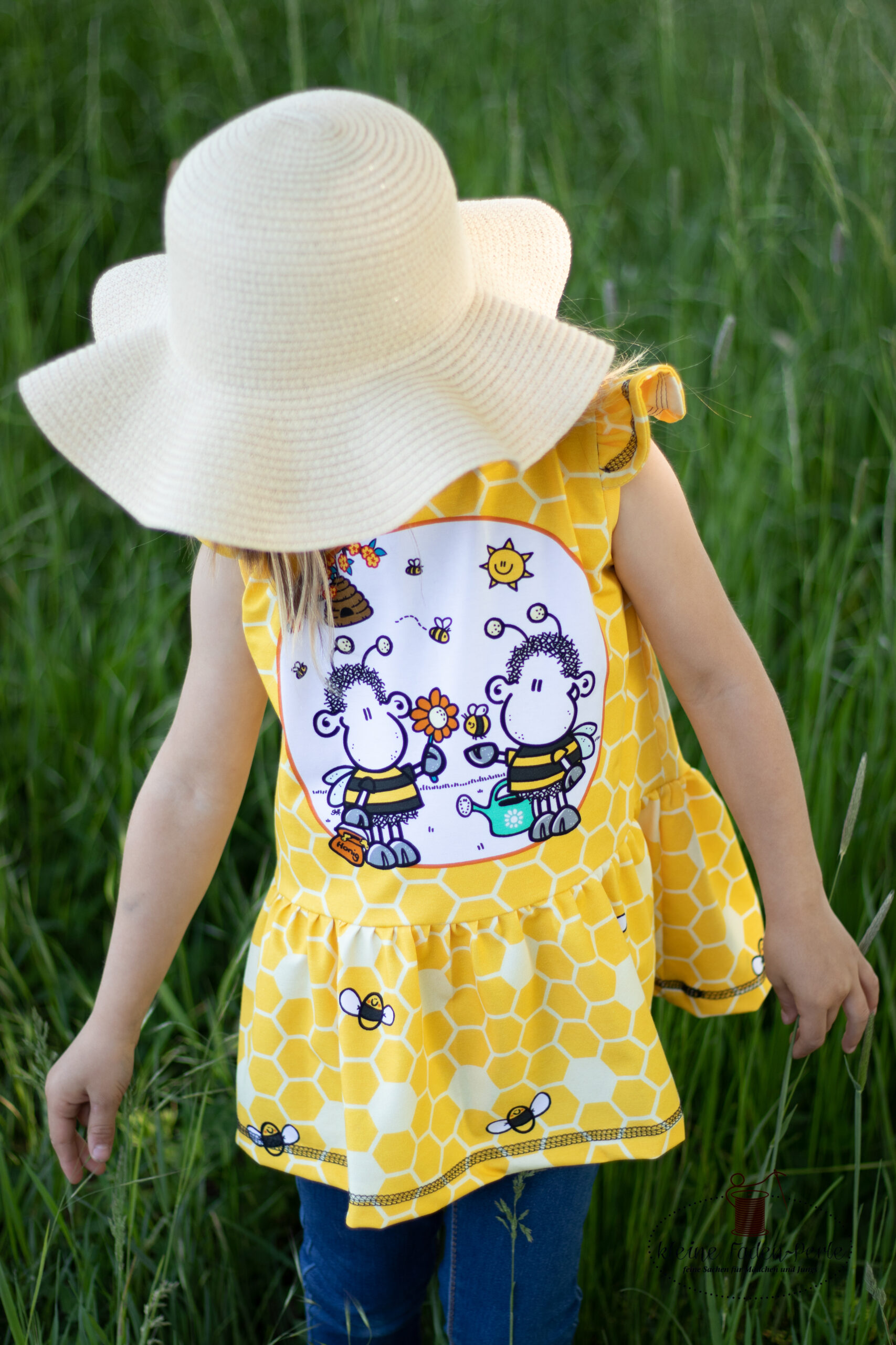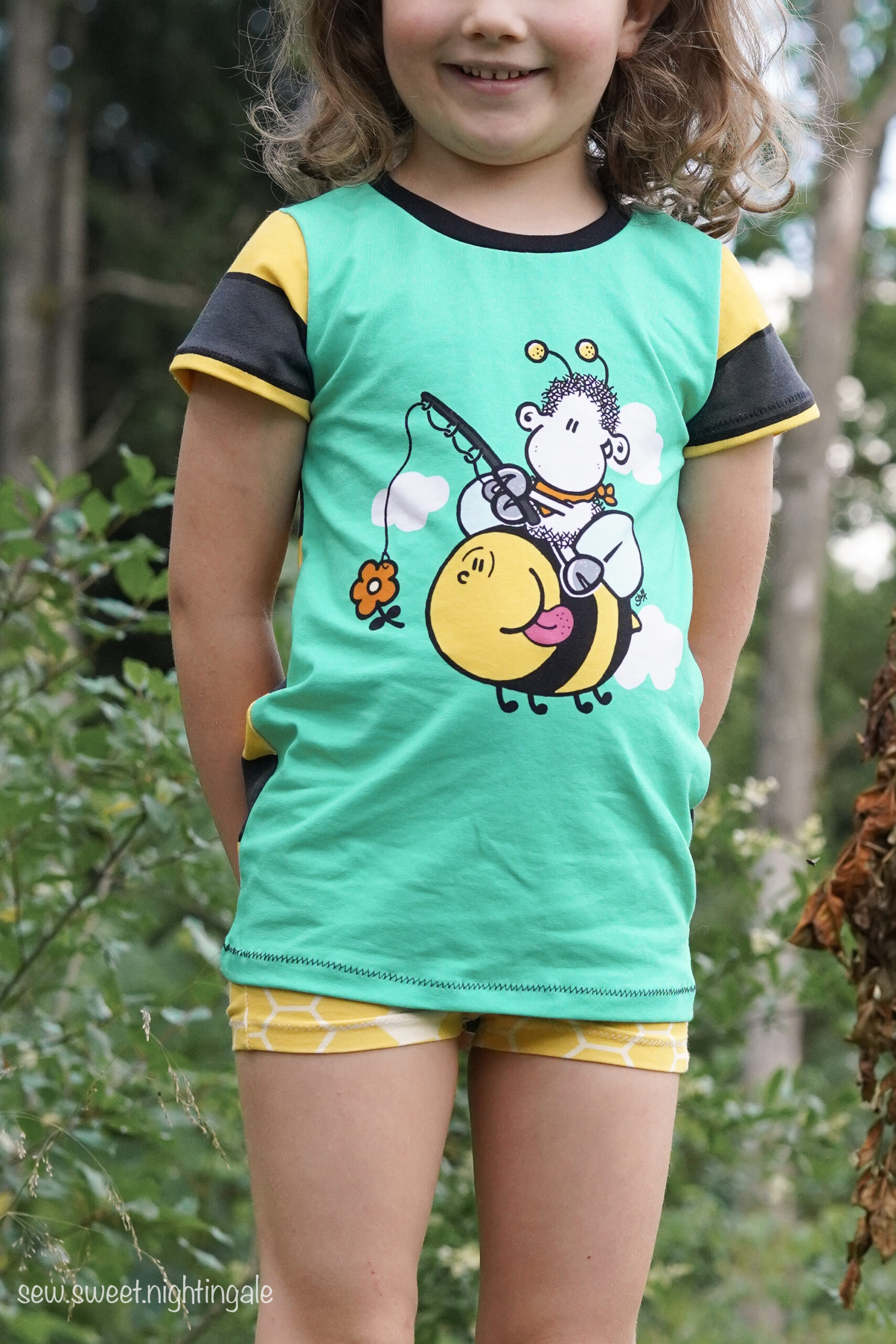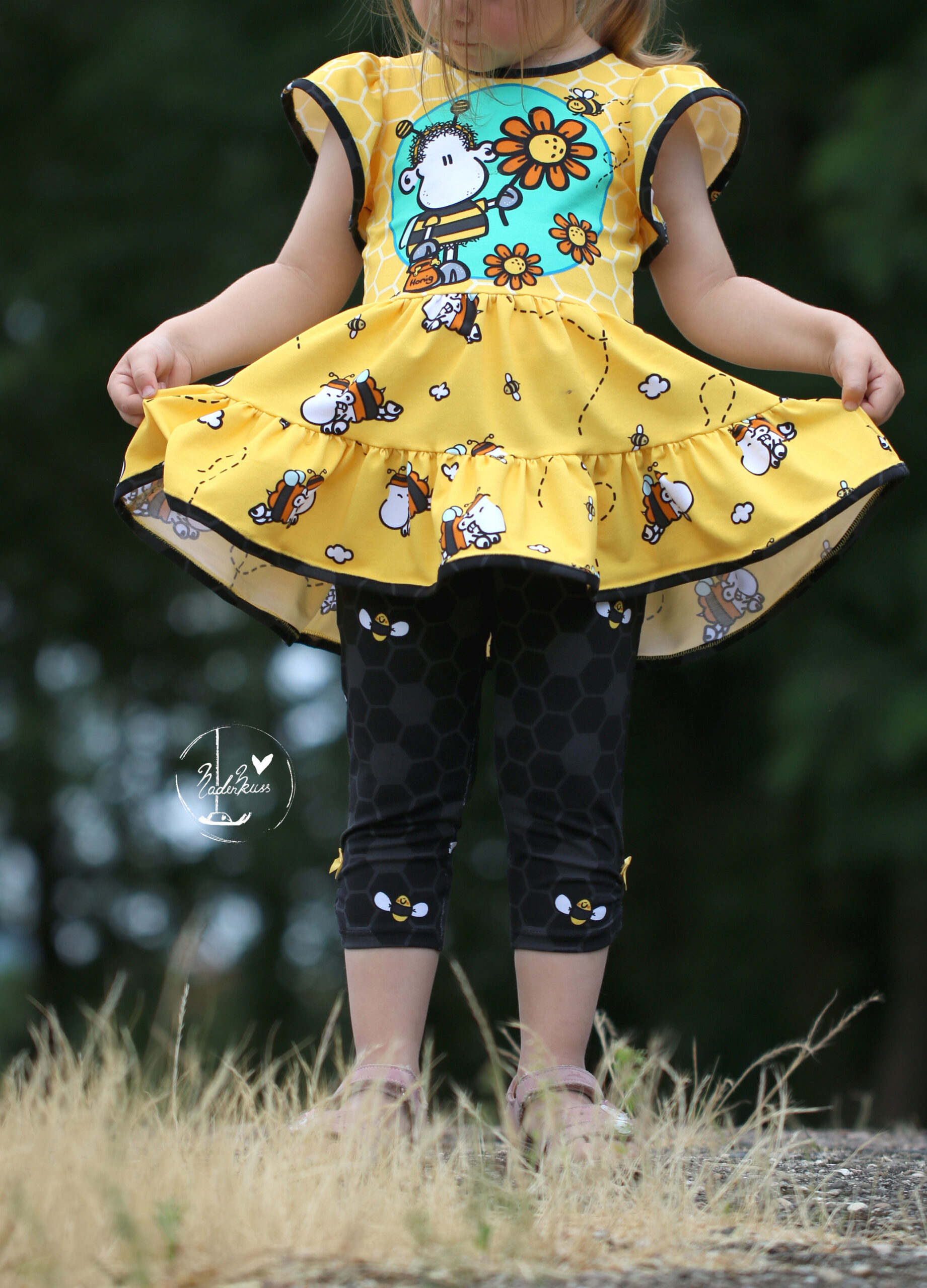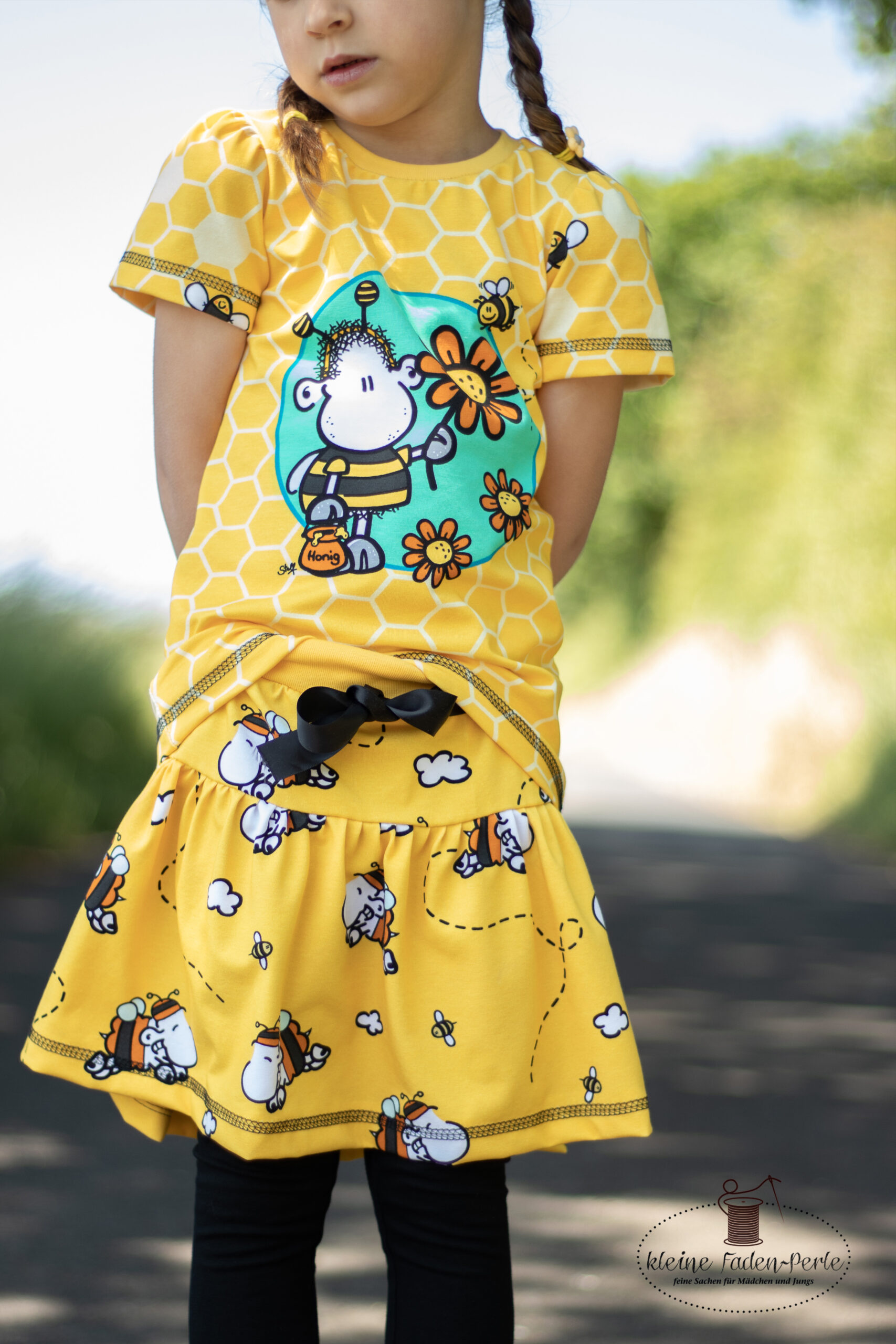 Don’t worry – bee happy! Den Allover „Honigsüß“ bekommt Ihr in zwei Farben: Gelb und Mint.