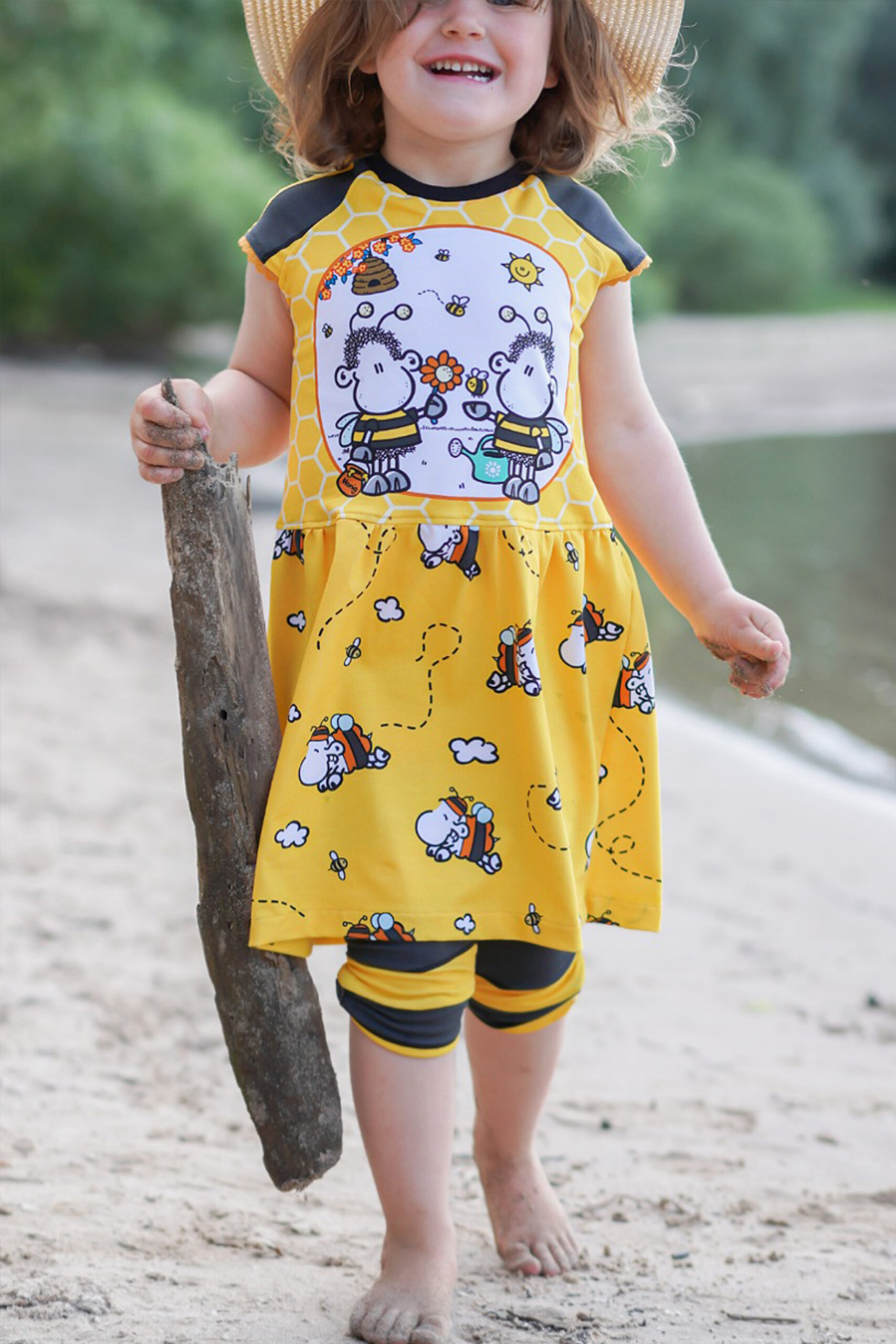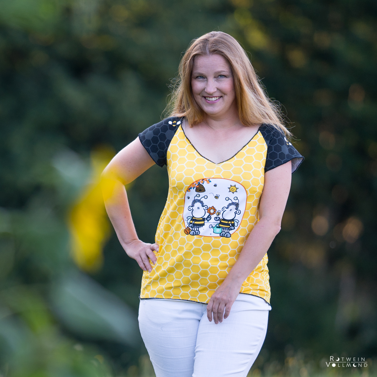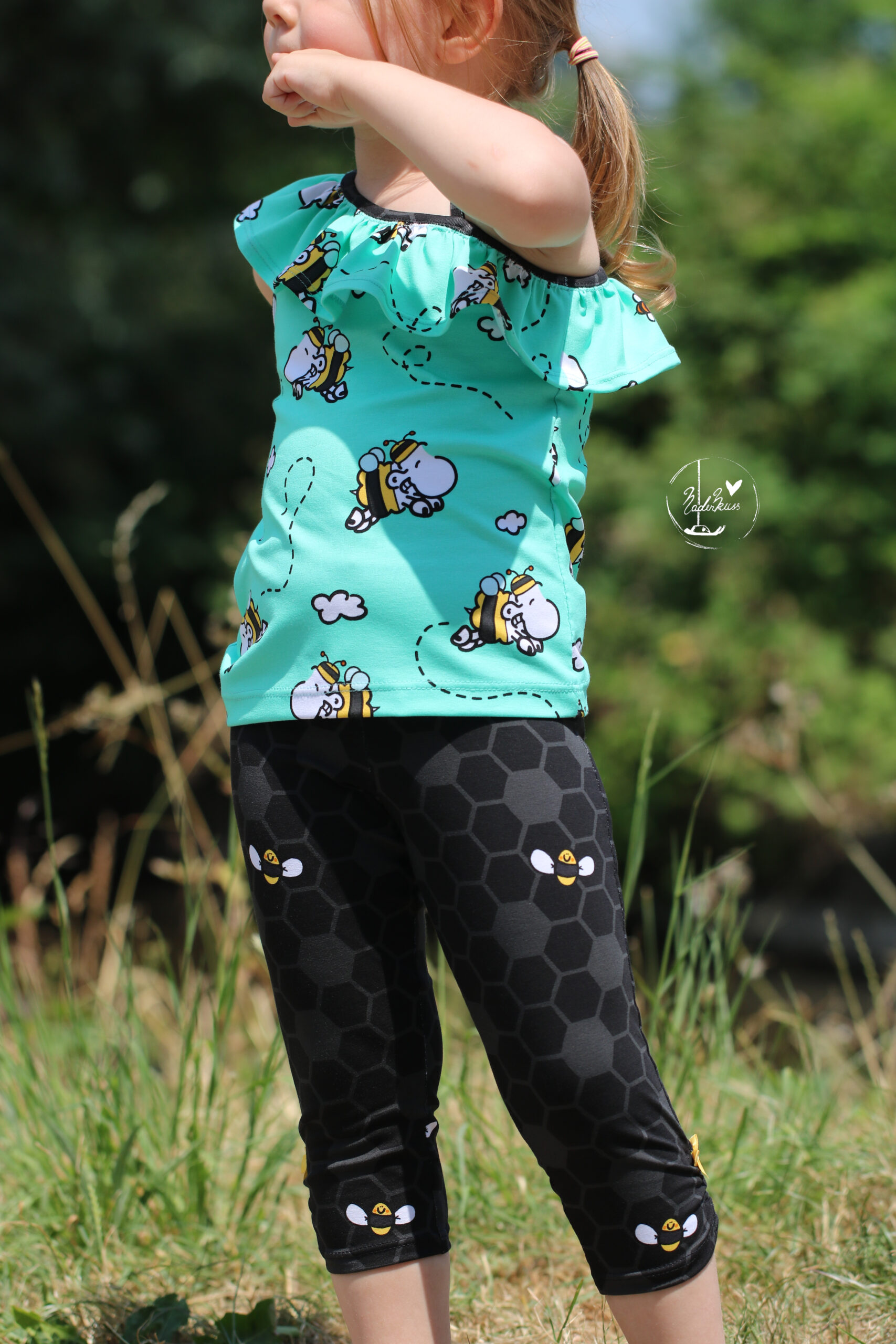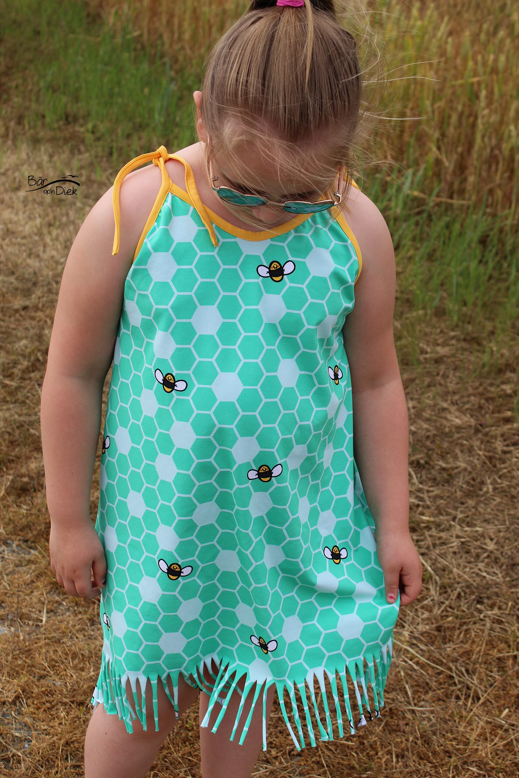 Don’t worry – bee happy! Den Allover „Honigsüß“ bekommt Ihr in zwei Farben: Gelb und Mint.