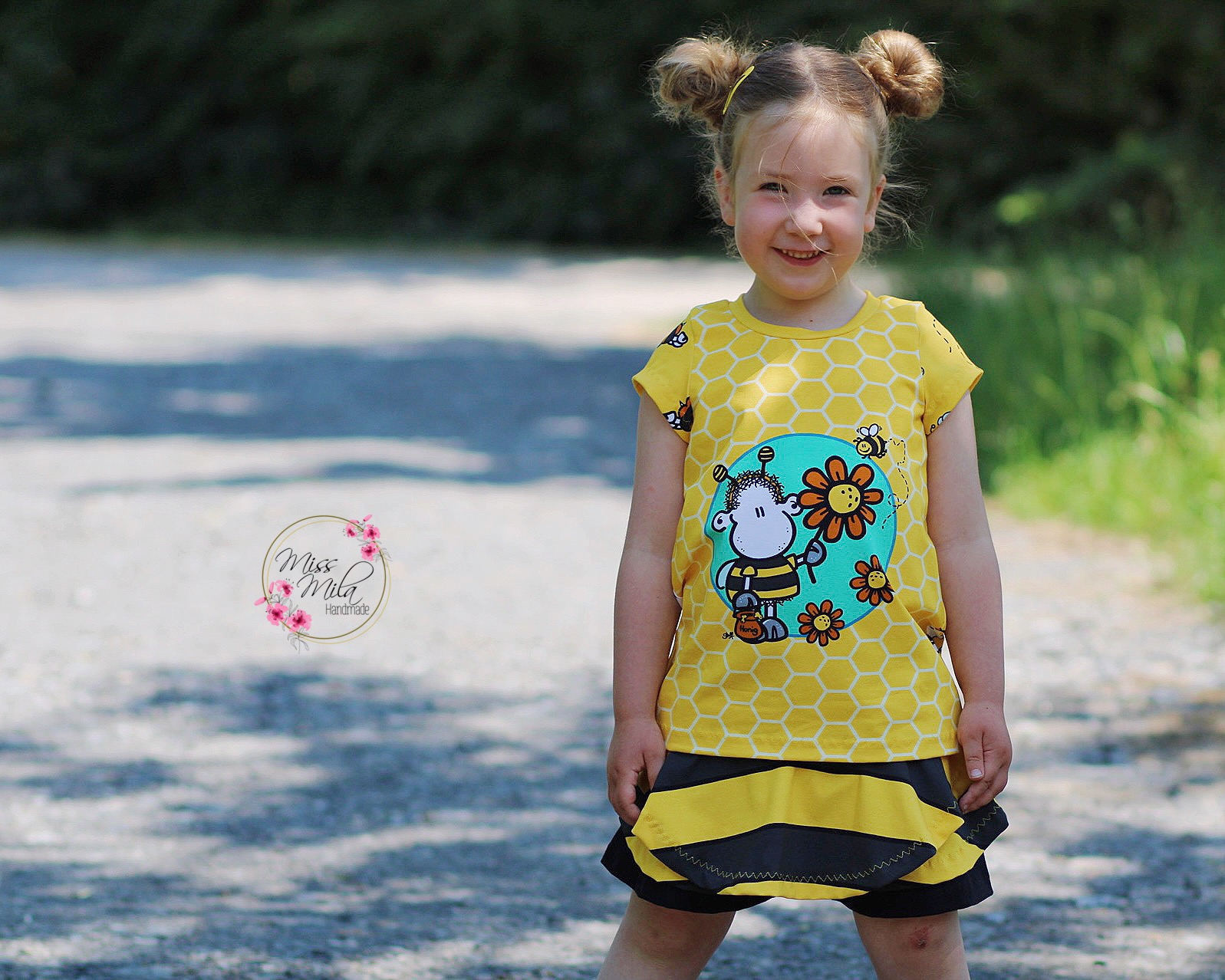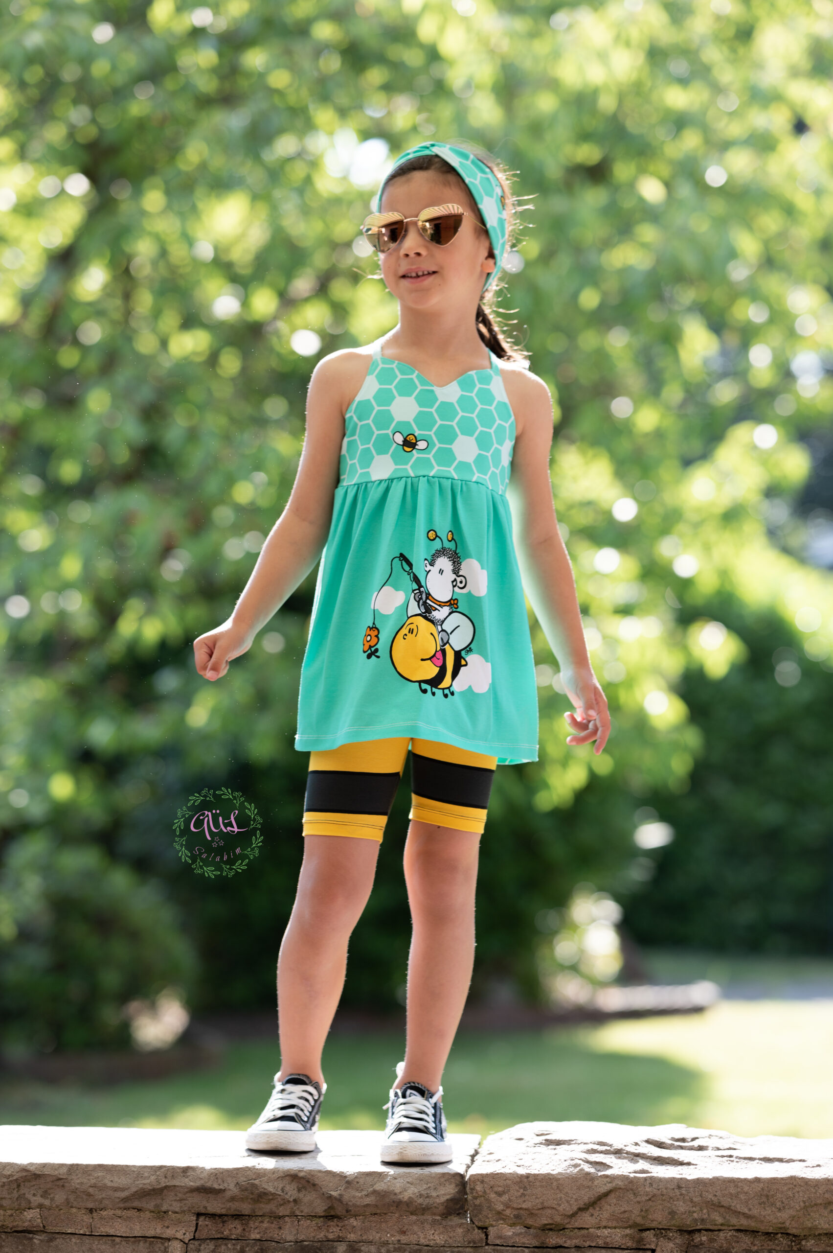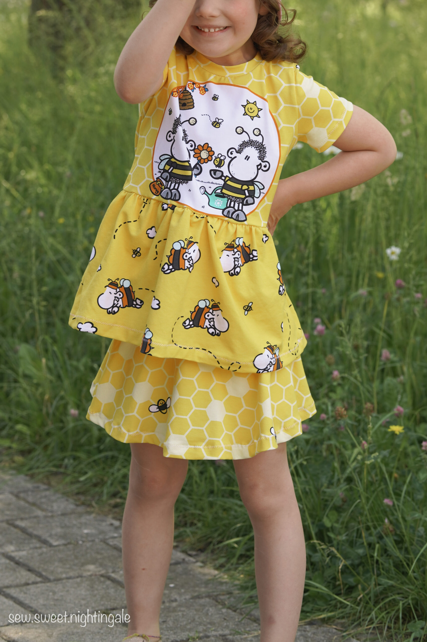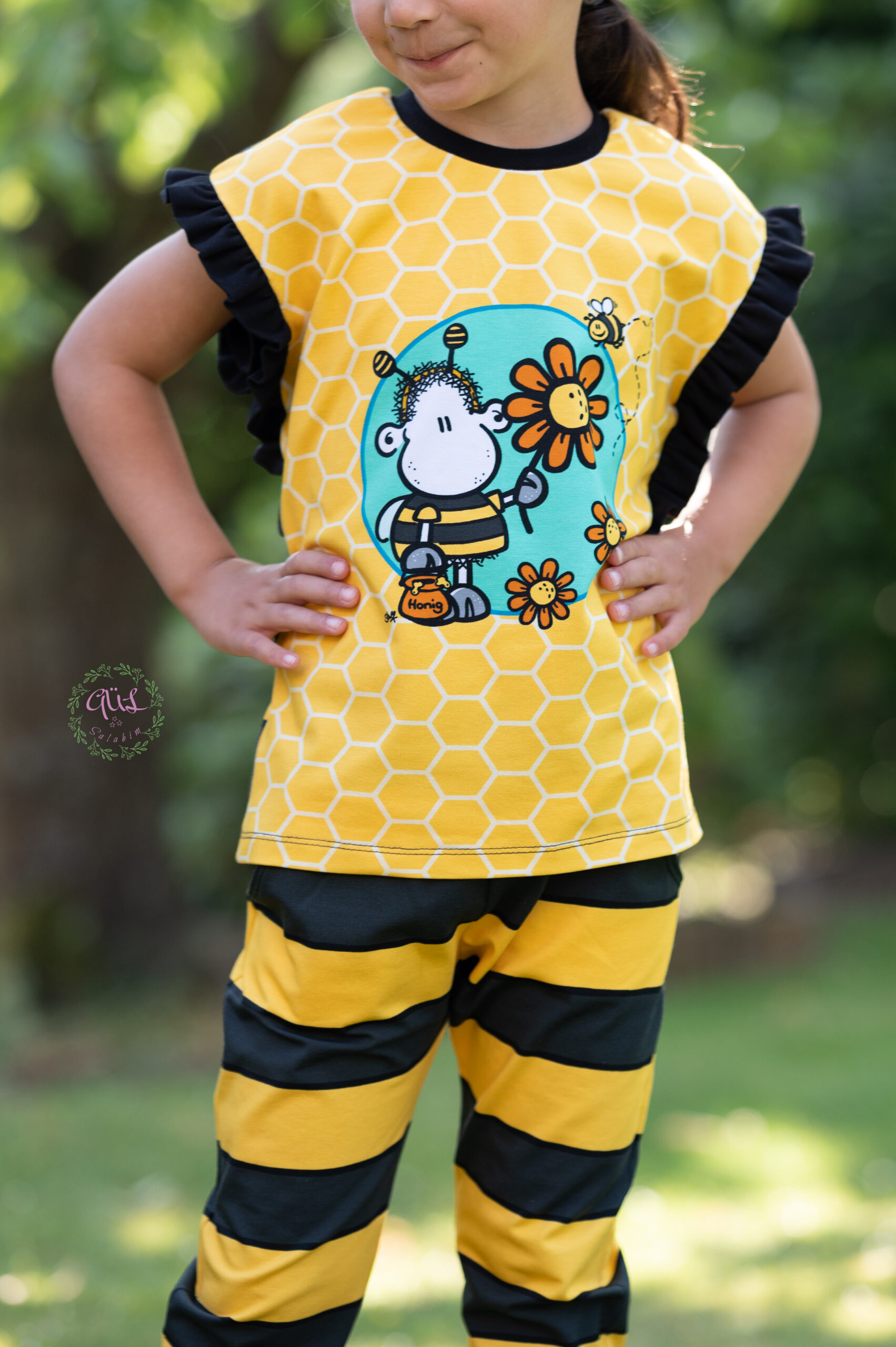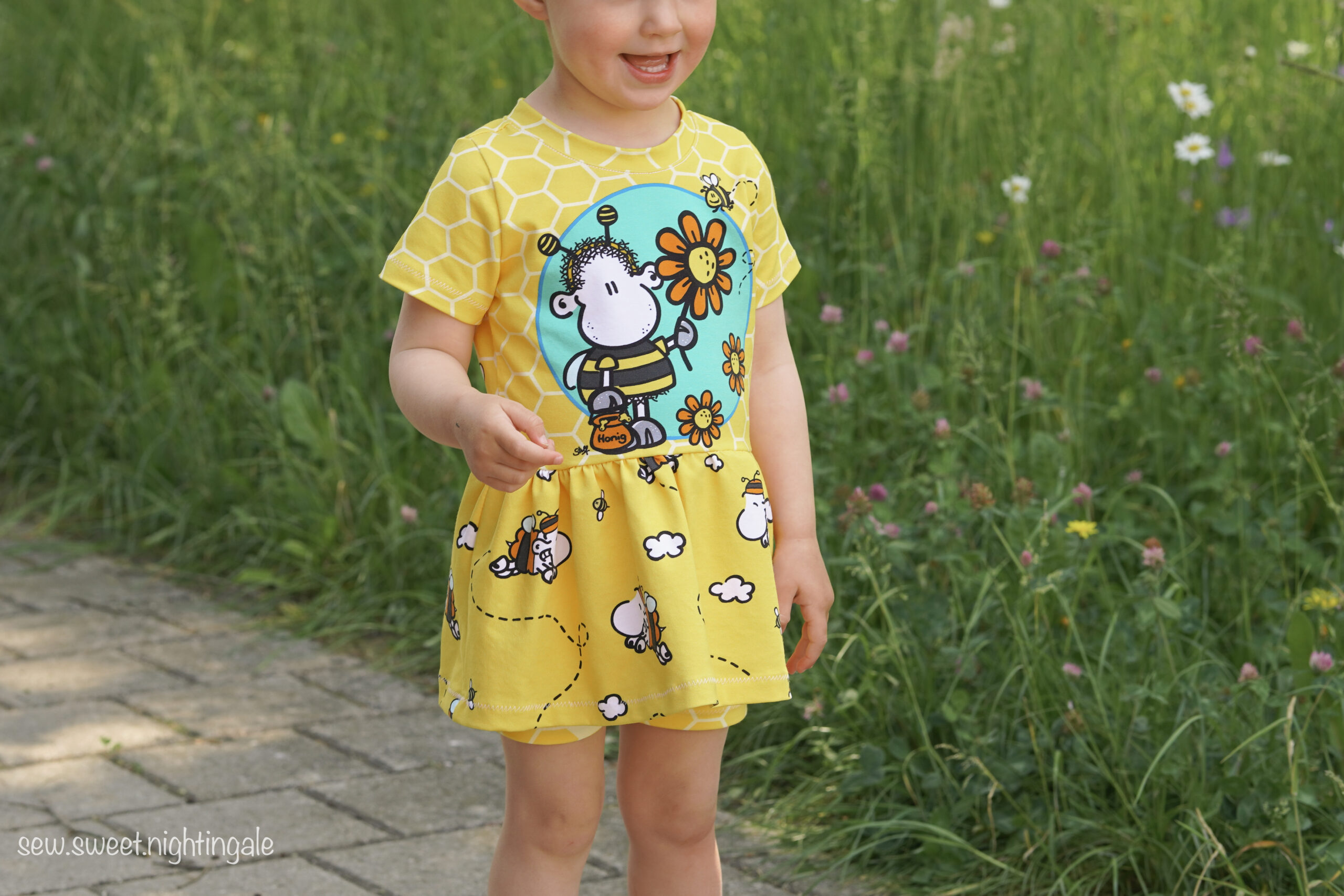 Don’t worry – bee happy! Den Allover „Honigsüß“ bekommt Ihr in zwei Farben: Gelb und Mint.