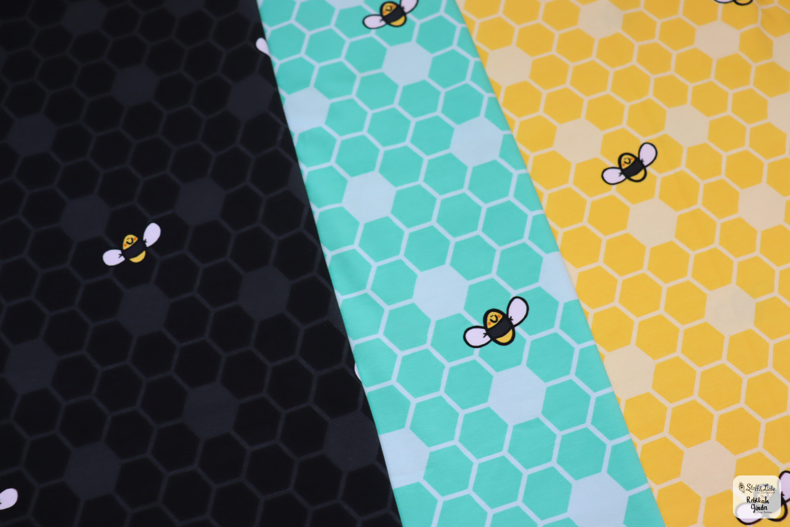 Und dann hätten wir für Euch noch die Bienenwabe. Hier könnt Ihr zwischen drei Farben wählen: Gelb, Mint und Schwarz.