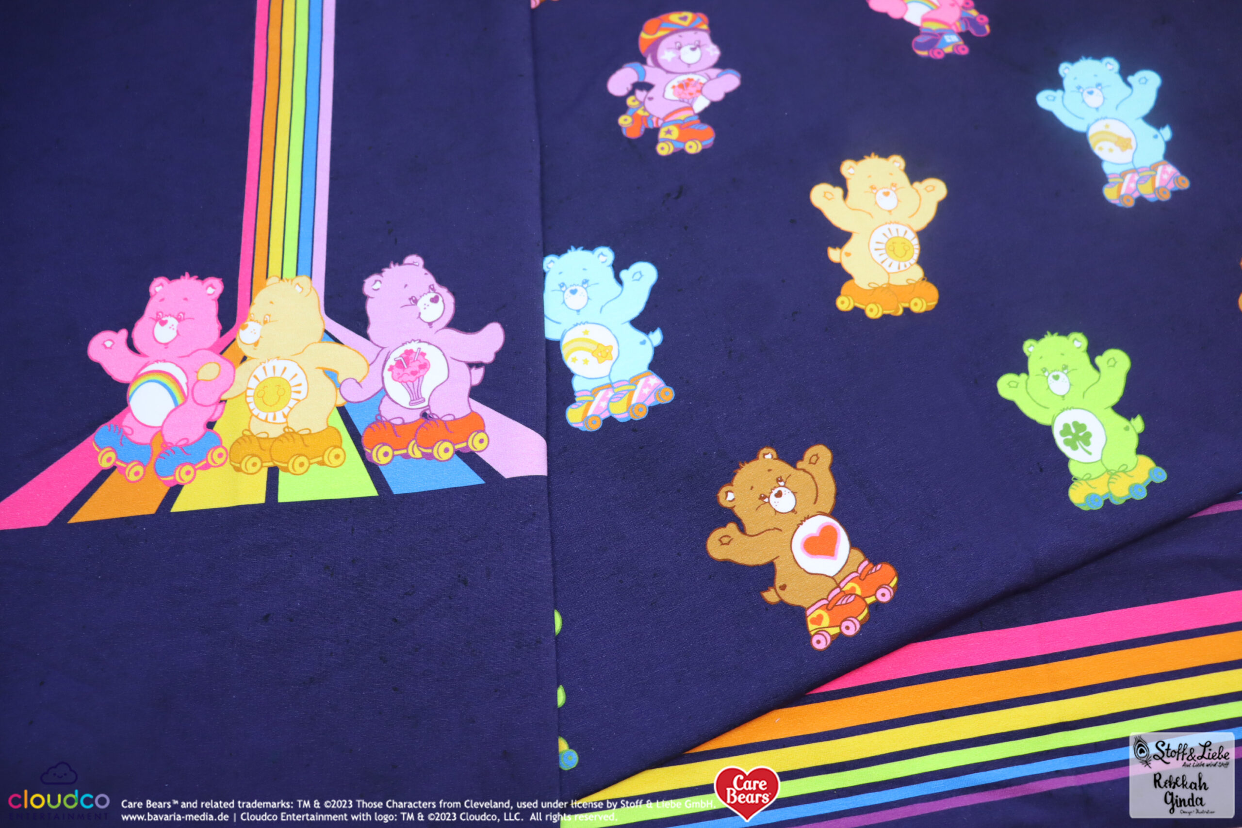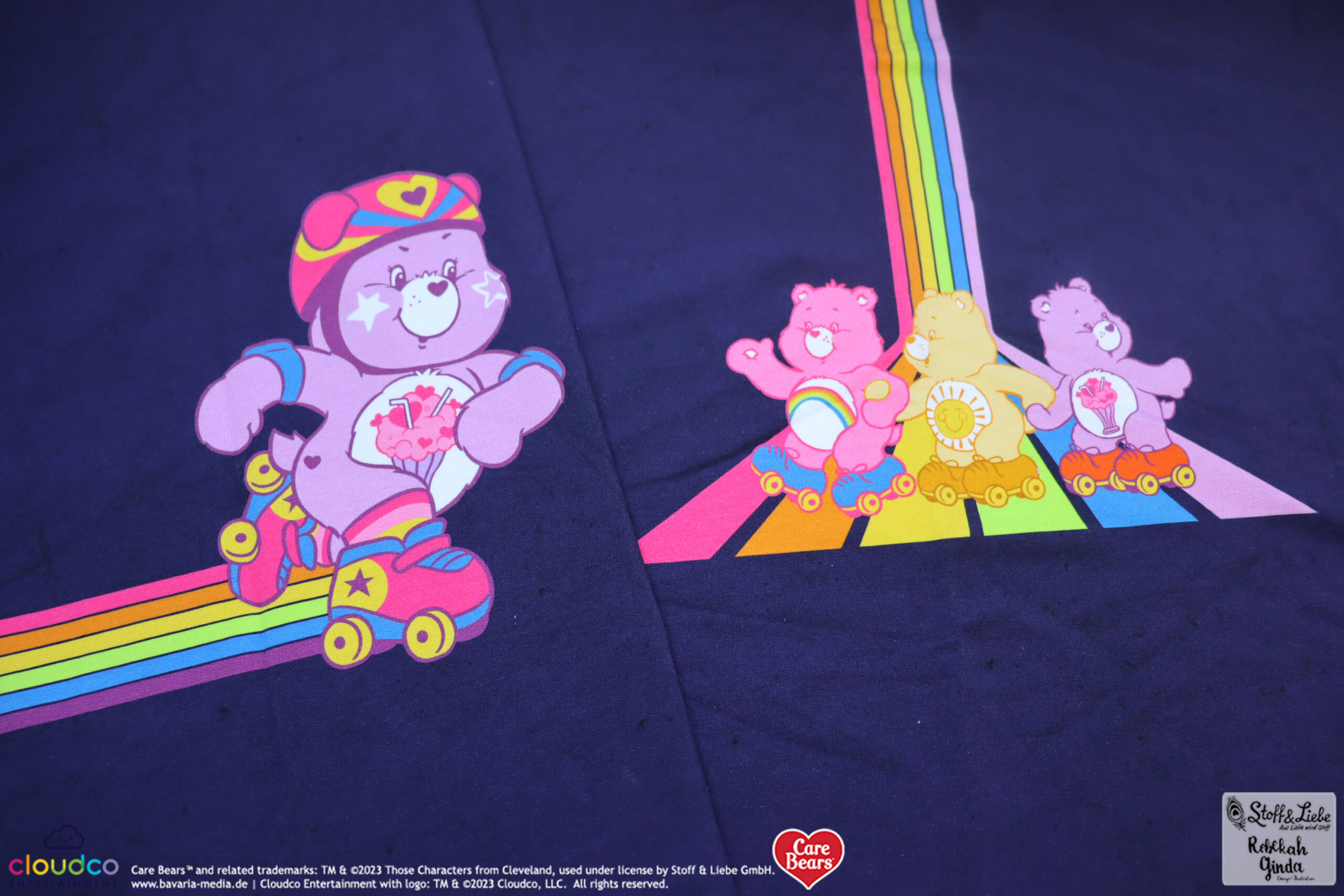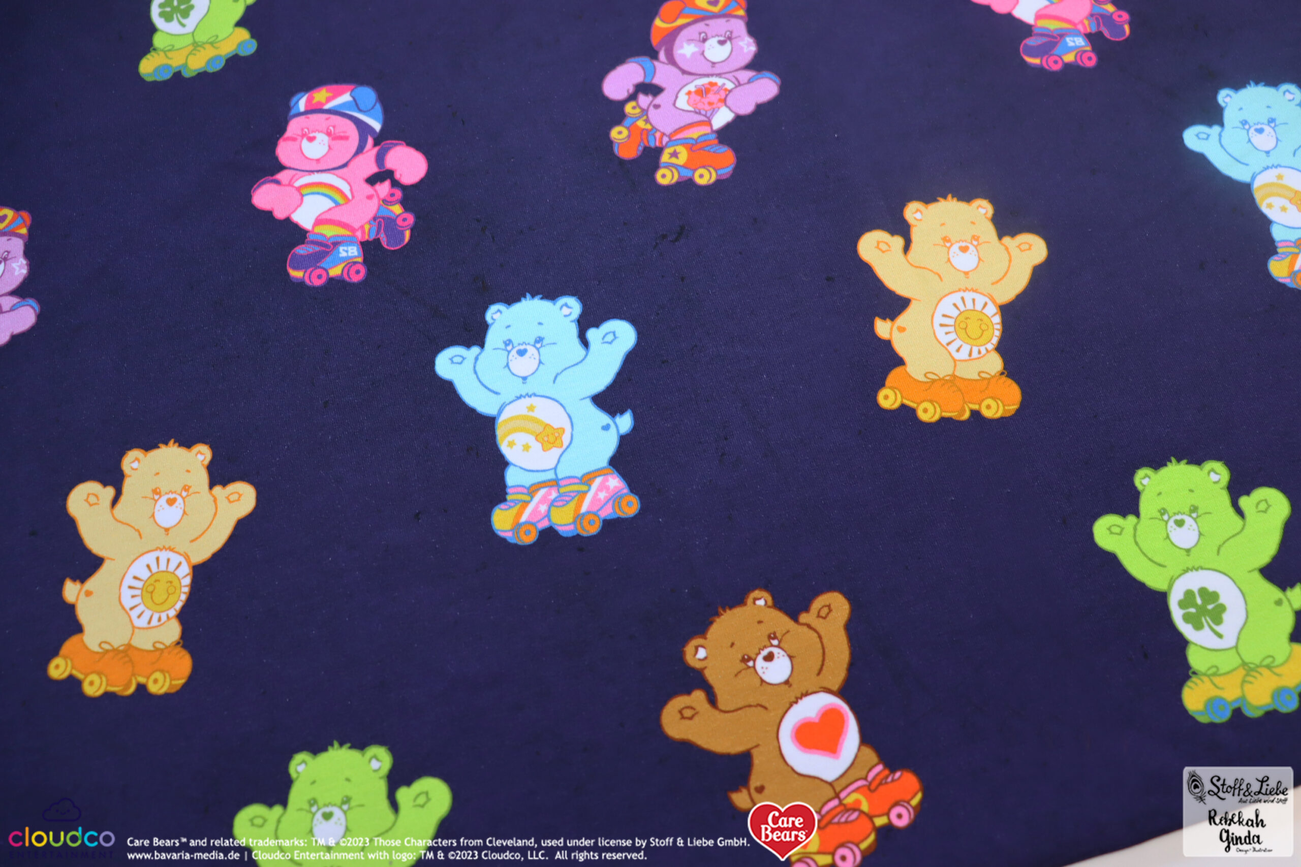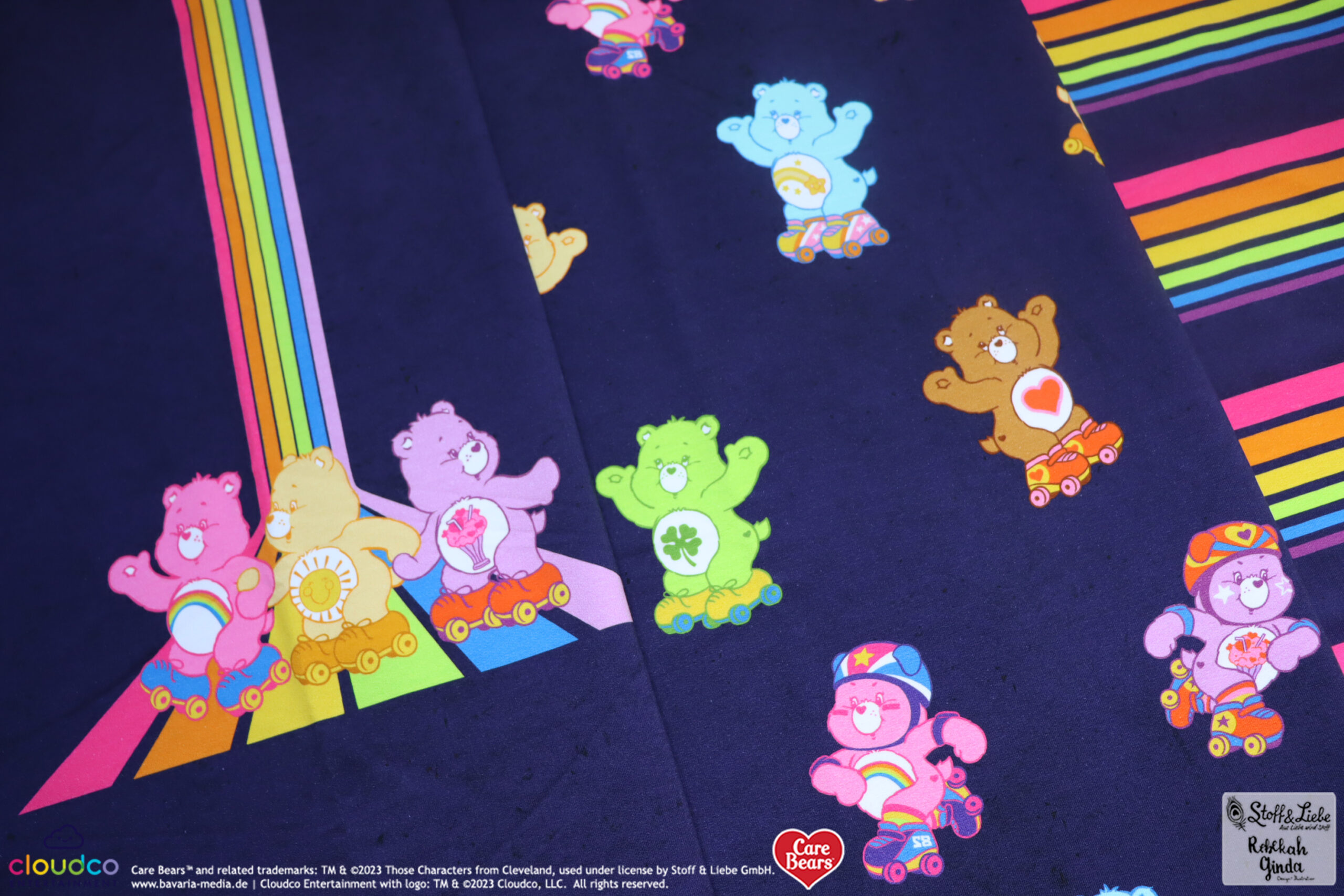 Als Hauptstoff haben wir natürlich einen passenden Allover für Euch. Auch hier skaten die Glücksbärchis, was das Zeug hält. Alle unsere Lieblingsbärchis sind natürlich vertreten und geben Euch durch die Farbvielfalt jede Menge Möglichkeiten diese Stoffe zu kombinieren und zu vernähen.