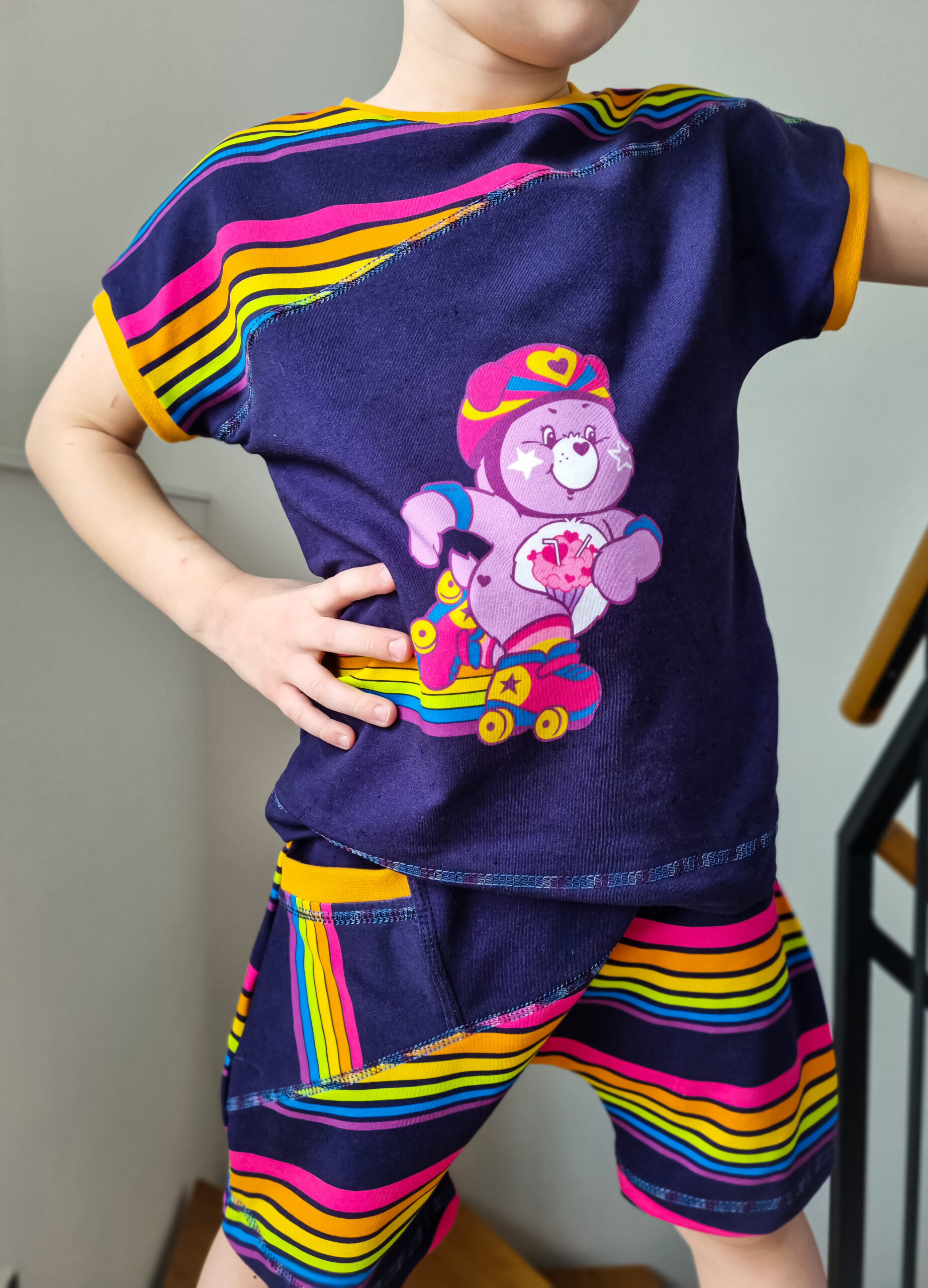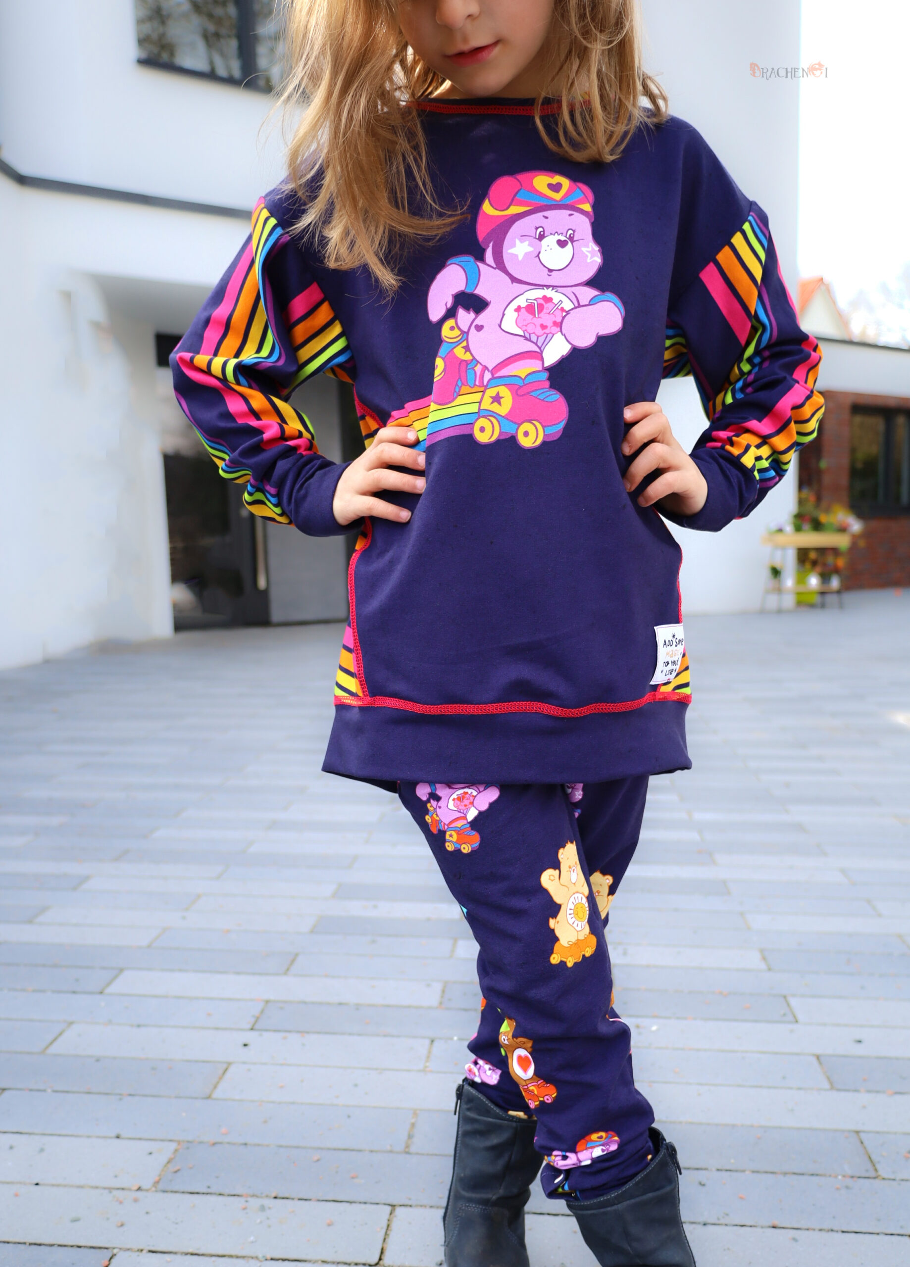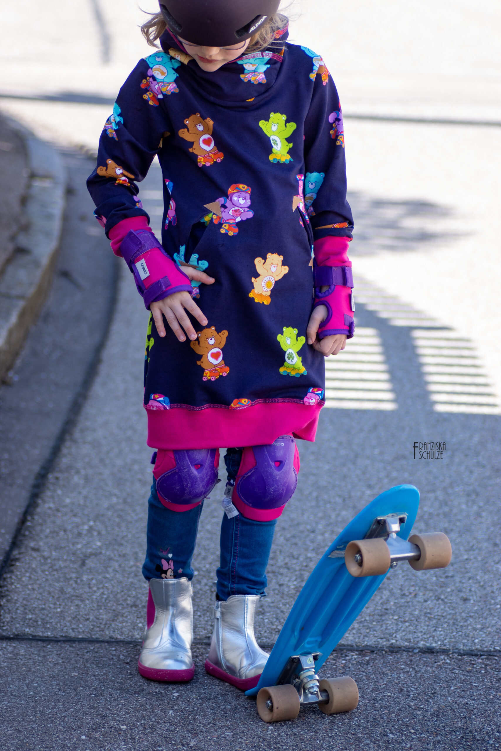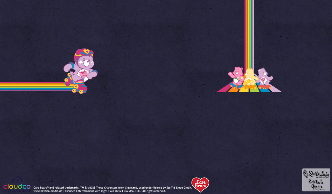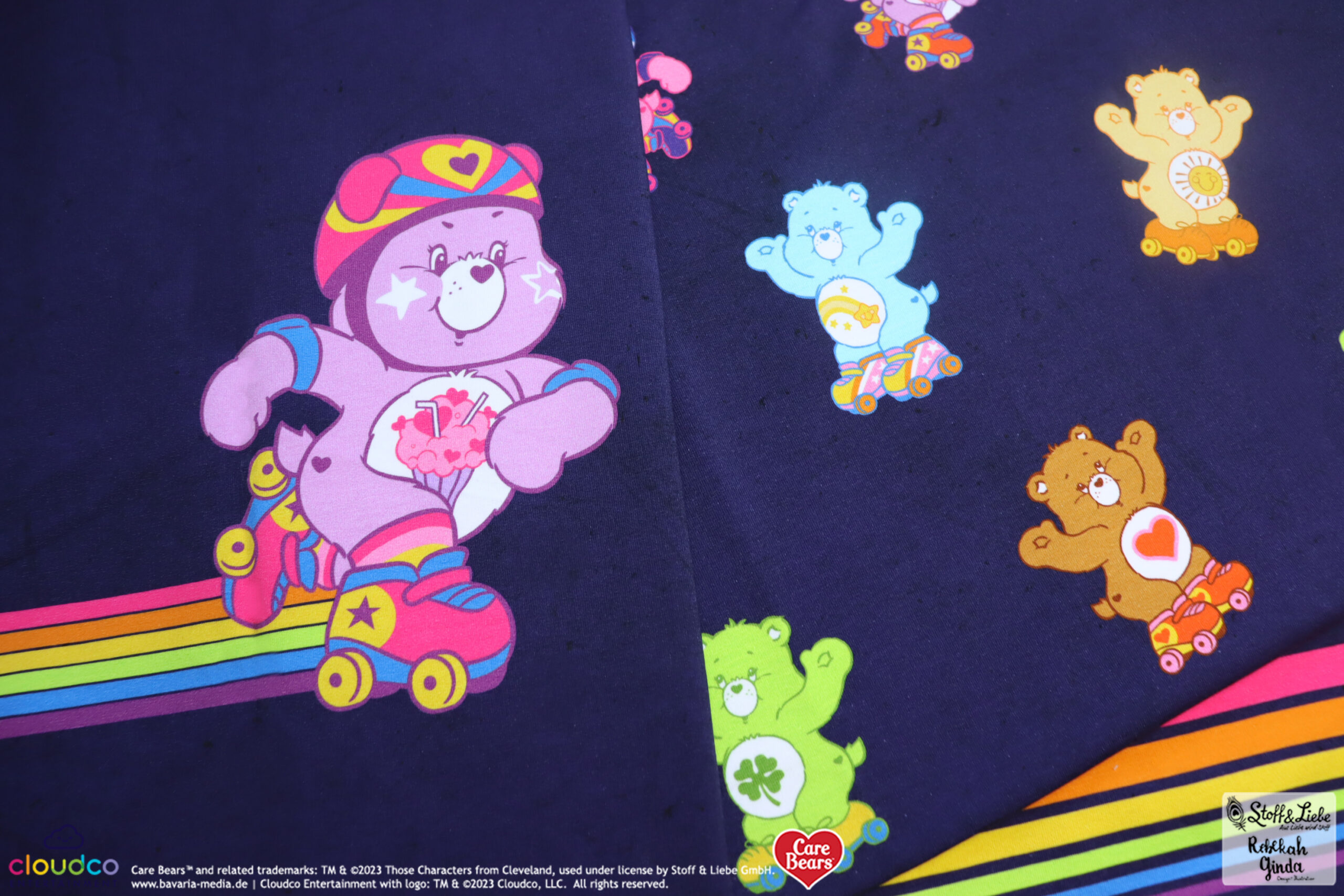 Als Hauptstoff haben wir natürlich einen passenden Allover für Euch. Auch hier skaten die Glücksbärchis, was das Zeug hält. Alle unsere Lieblingsbärchis sind natürlich vertreten und geben Euch durch die Farbvielfalt jede Menge Möglichkeiten diese Stoffe zu kombinieren und zu vernähen.