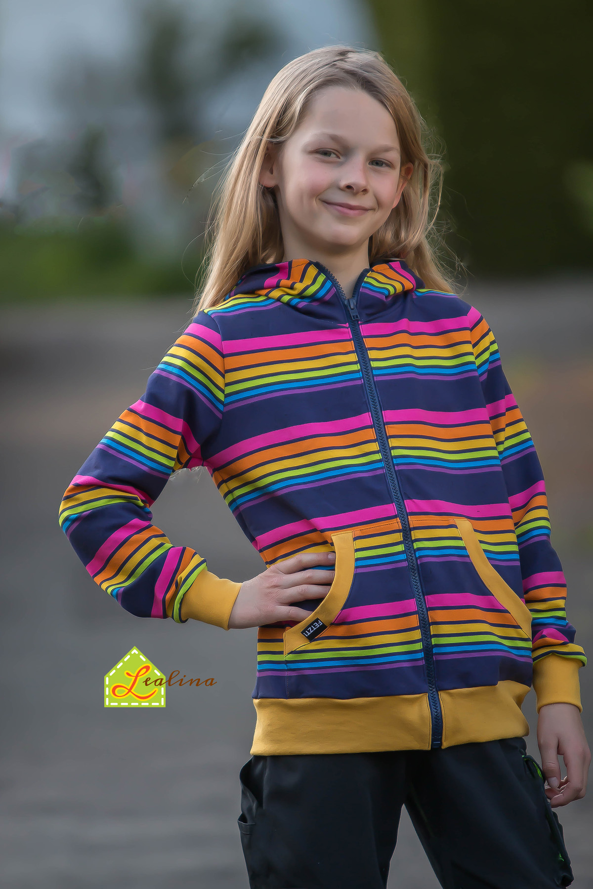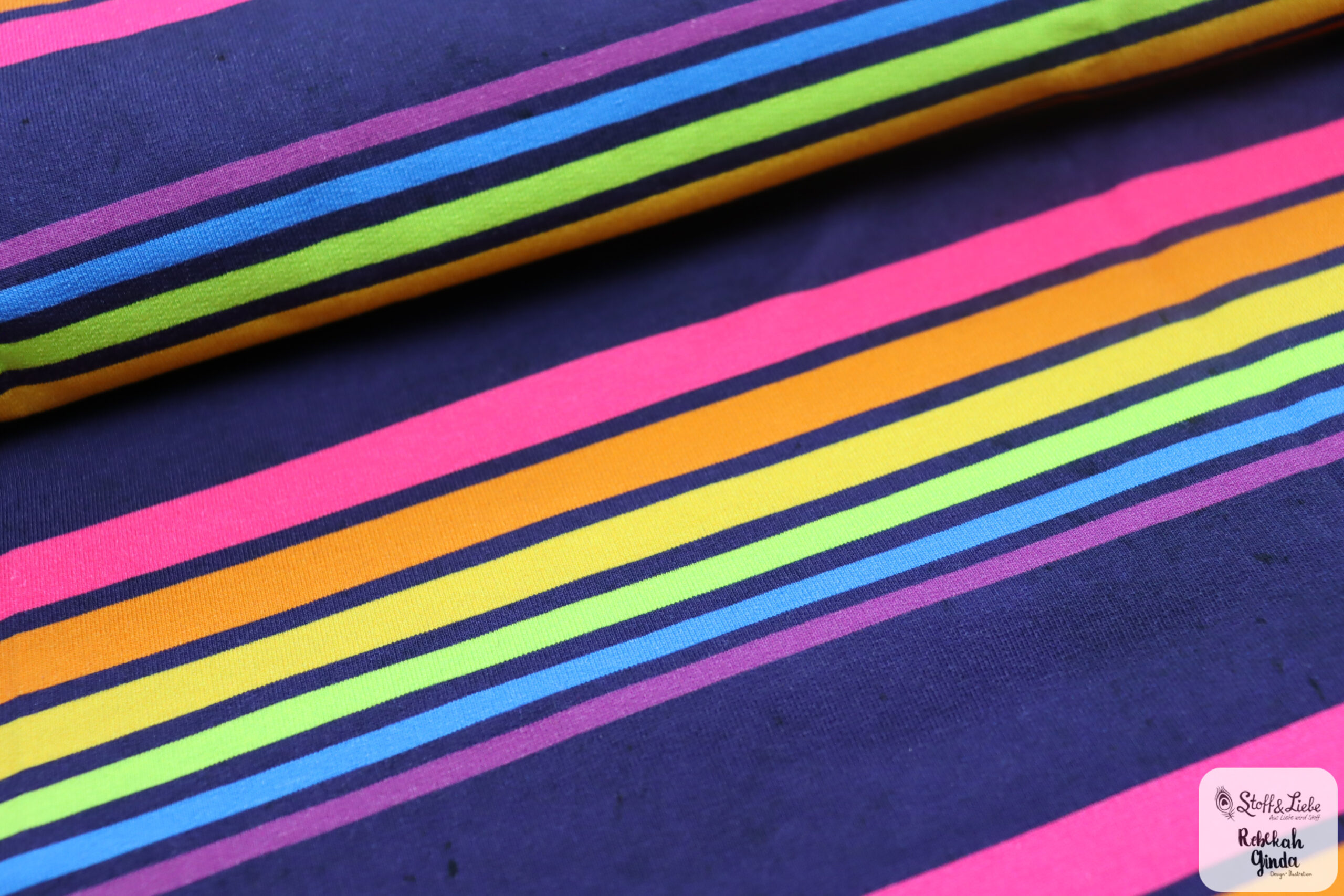 Wir haben für Euch eine farbenprächtige Kollektion auf mit perfekt aufeinander abgestimmten Stoffen. Neben einem Panel erhältst Du einen Allover und einen Kombistoff. Alle Stoffe erhaltet Ihr auf French Terry in unserer gewohnten Spitzenqualität. Die Materialzusammensetzung beträgt 95 % Baumwolle und 5 % Elasthan. Dieses Design wurde von Rebekah Ginda für uns umgesetzt.