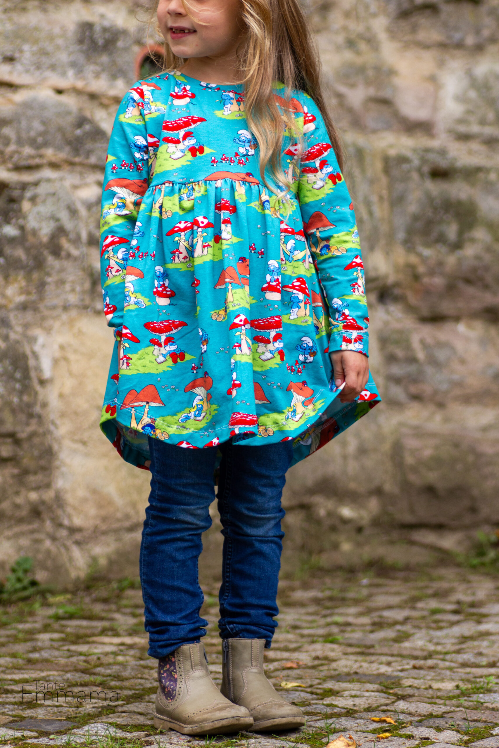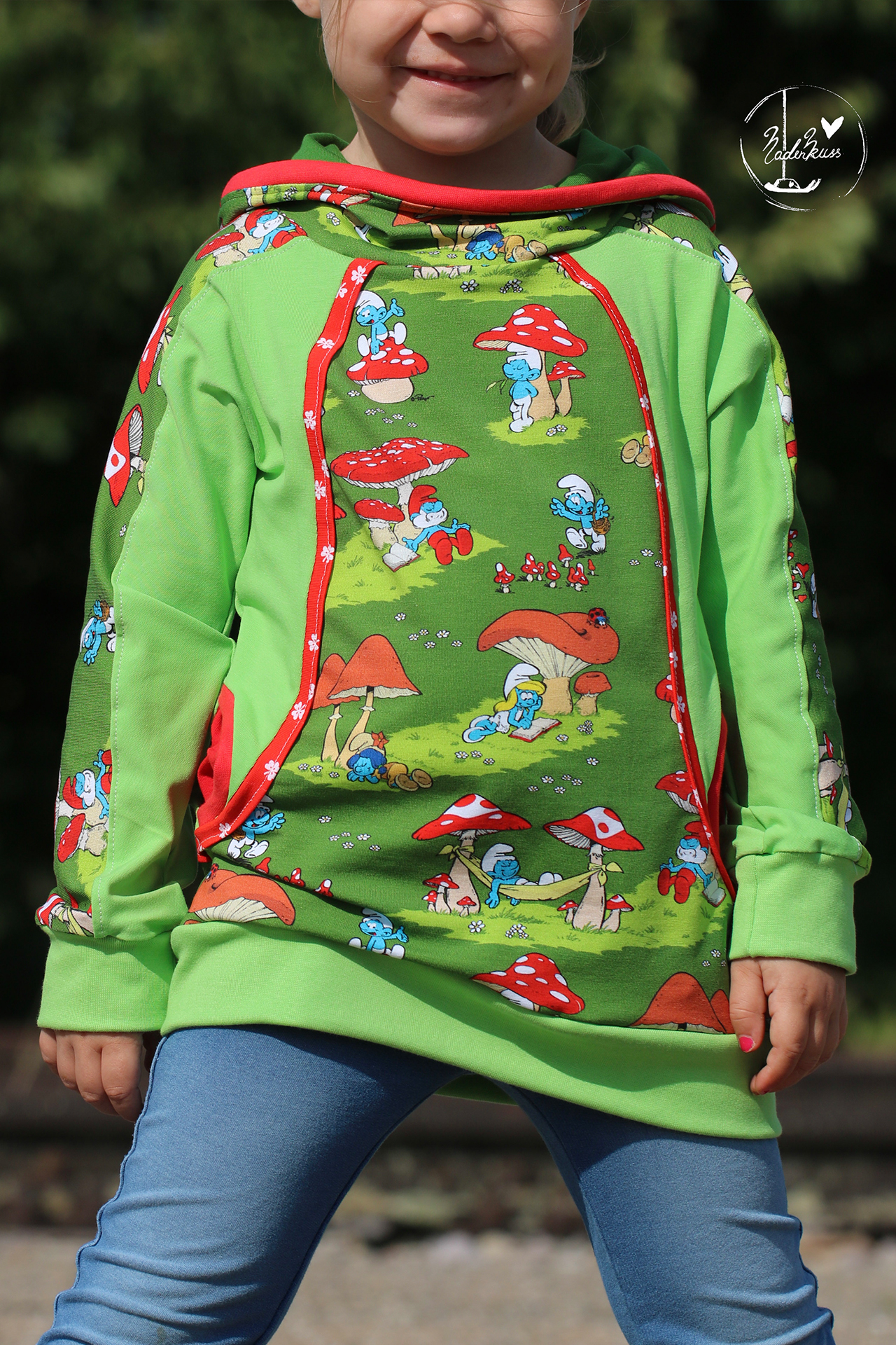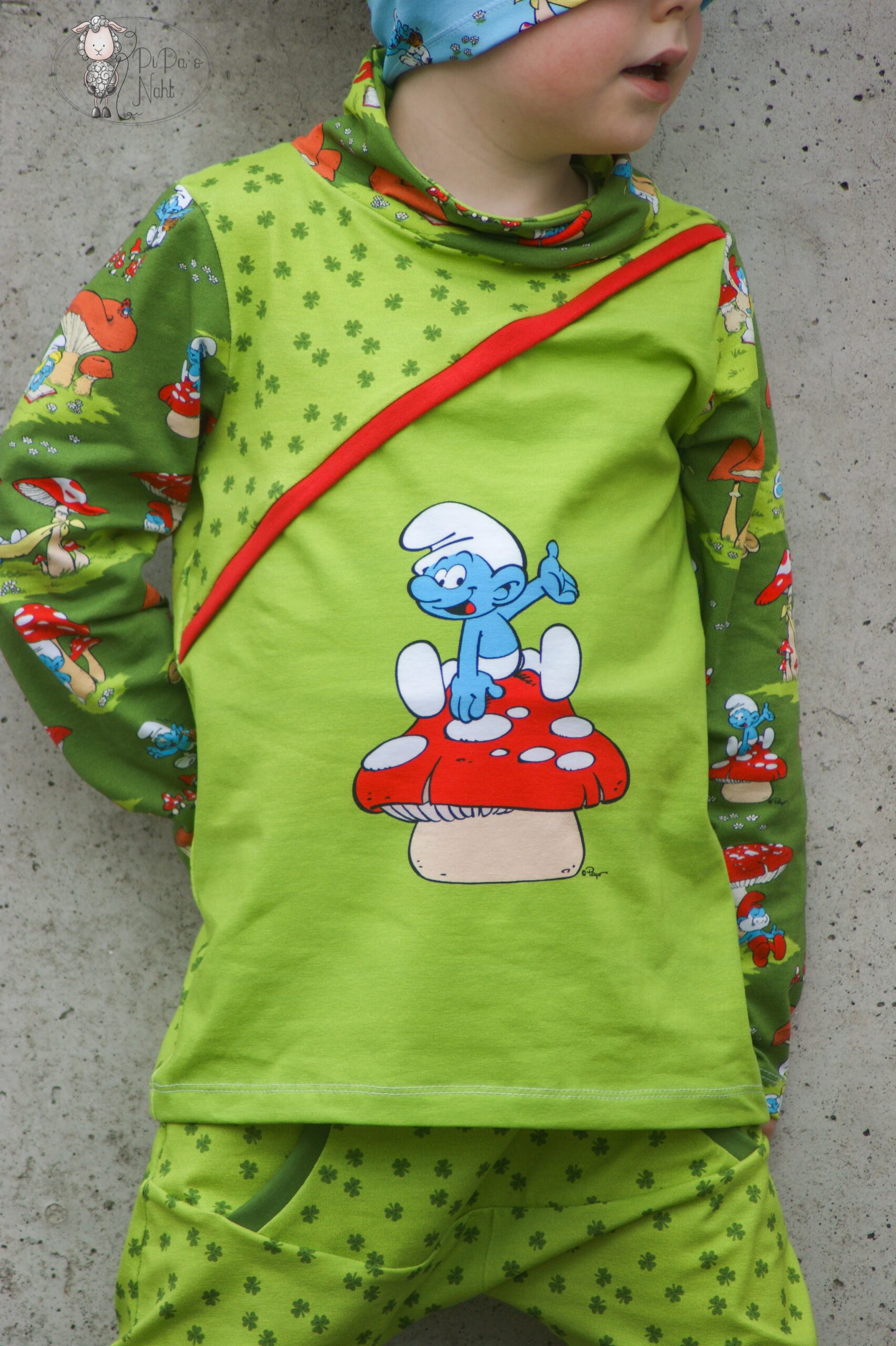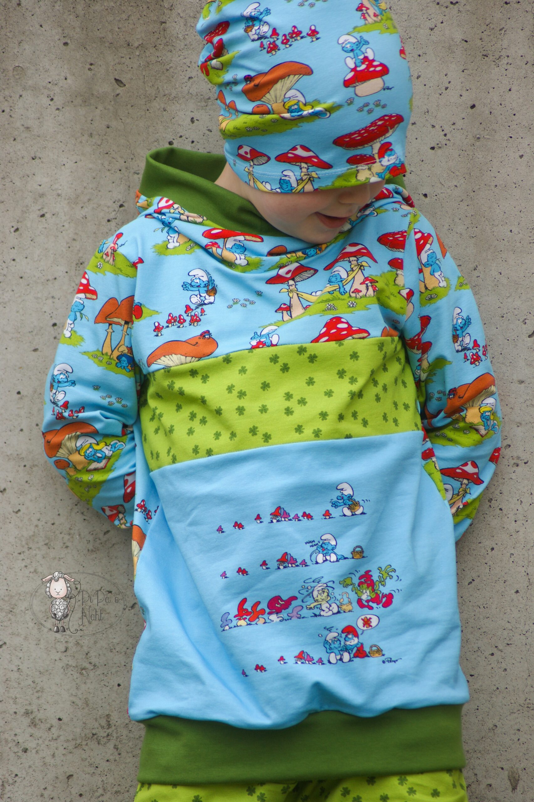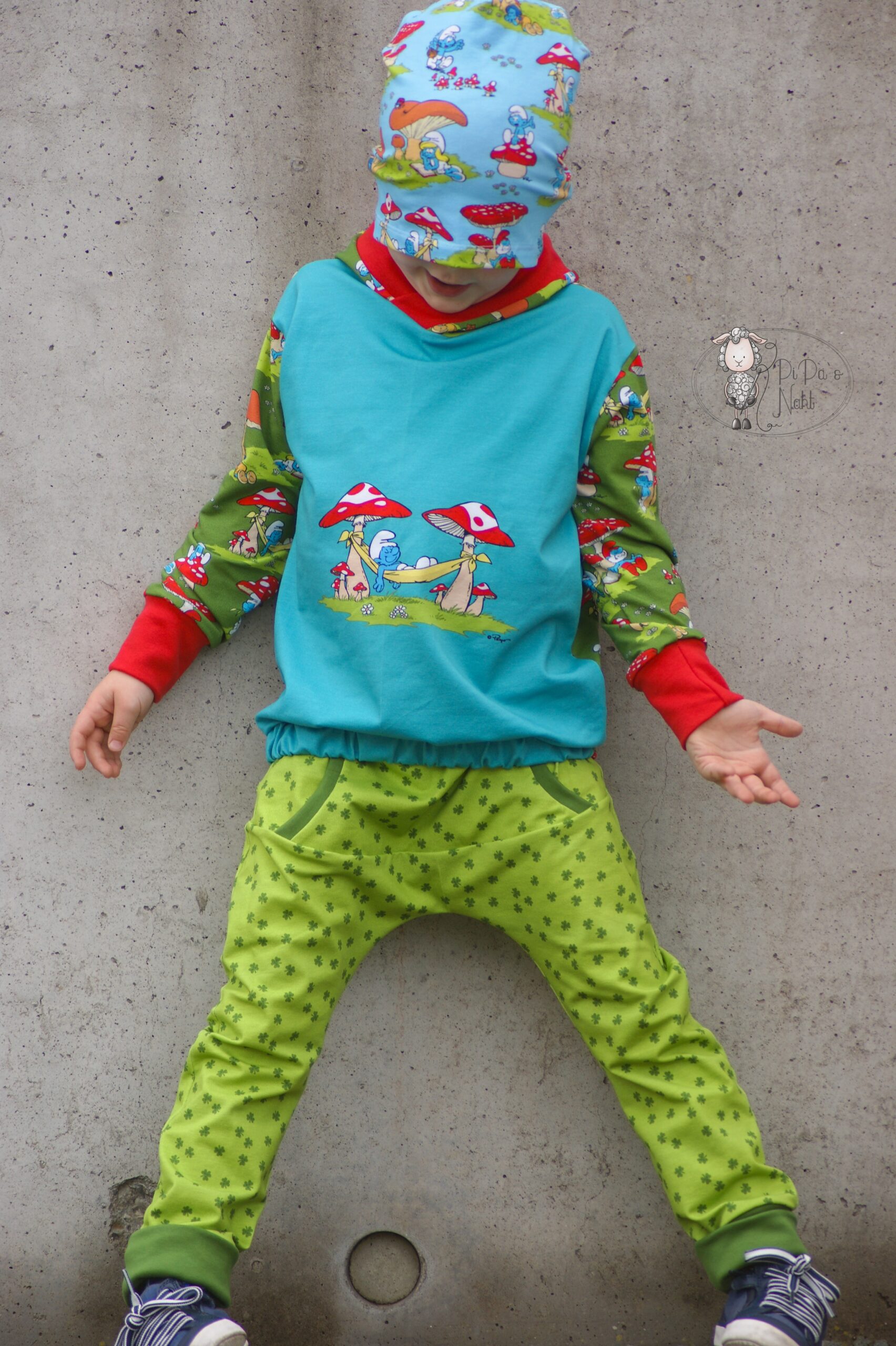 Der Allover lässt sich prima kombiniert oder eben auch alleine vernähen. Nicht nicht für kleine Schlumpf-Fans, auch für uns Großen, ist er absolut tragbar.