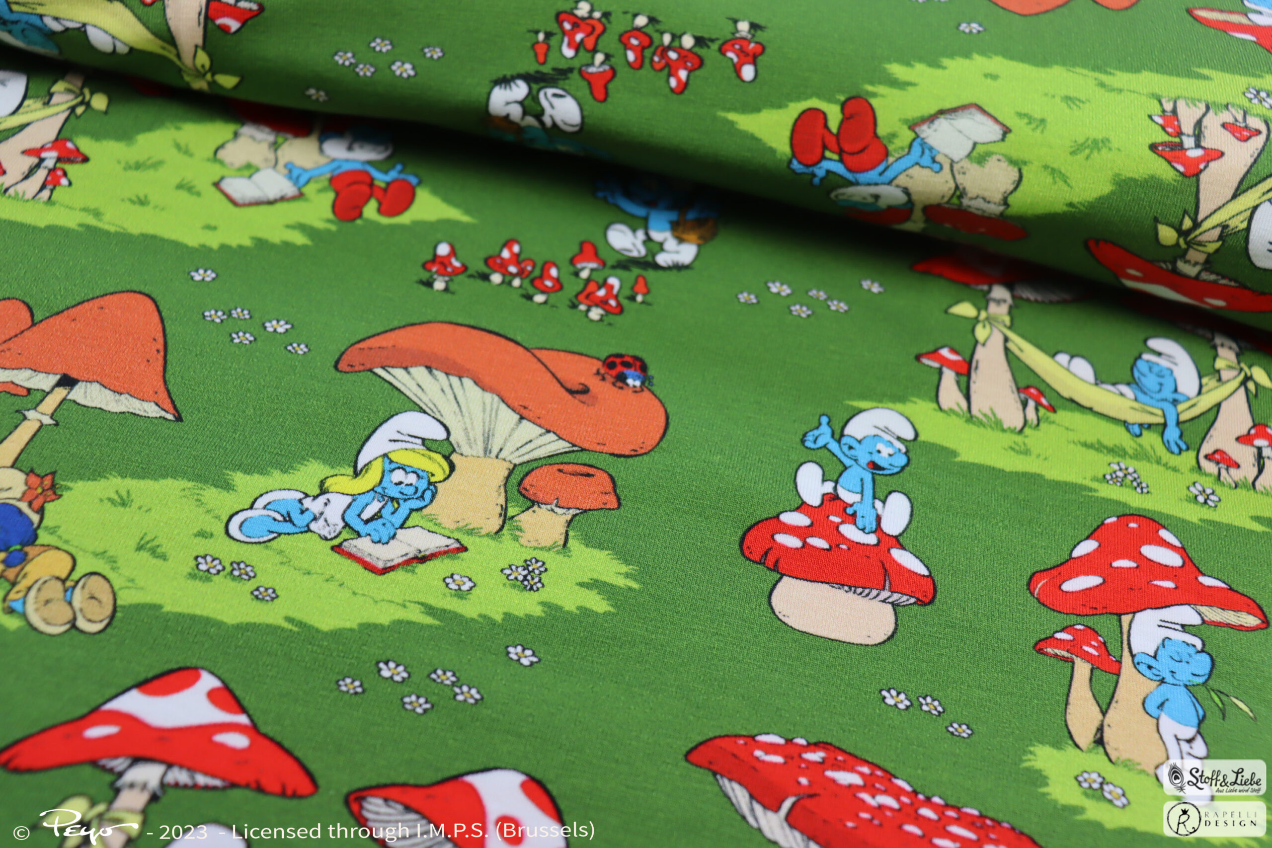 Auf dem Panel, mit einer Höhe von ca. 55 cm, findet Ihr drei Motivabschnitte. Ein Motiv schöner als das andere. Natürlich darf auch eine Portion Humor nicht fehlen. Während den einen Schlumpf das Pilzesammeln glücklich macht, er aber beim Kosten nicht so viel Glück hat und kurzzeitig halluziniert, ist für den anderen Schlumpf das größte Glück in seiner Hängematte zu schlummern. Ein anderer Schlumpf ist währenddessen glücklich darüber, über Pilze springen zu können. Und was ist für Dich das Glück?
