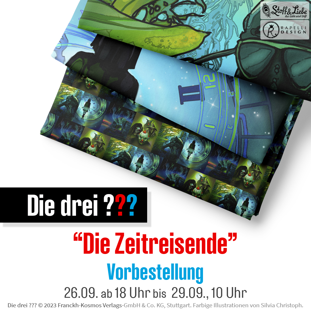 Unsere „Die drei ???“ Kollektion besteht aus zwei Panels und einem Allover. Die Stoffe dieser Kollektionen erscheinen allesamt auf French Terry und der Allover zusätzlich auf Canvas. Nun wird es aber Zeit, Euch die Stoffe endlich zu zeigen. Wir beginnen mit den Panels.