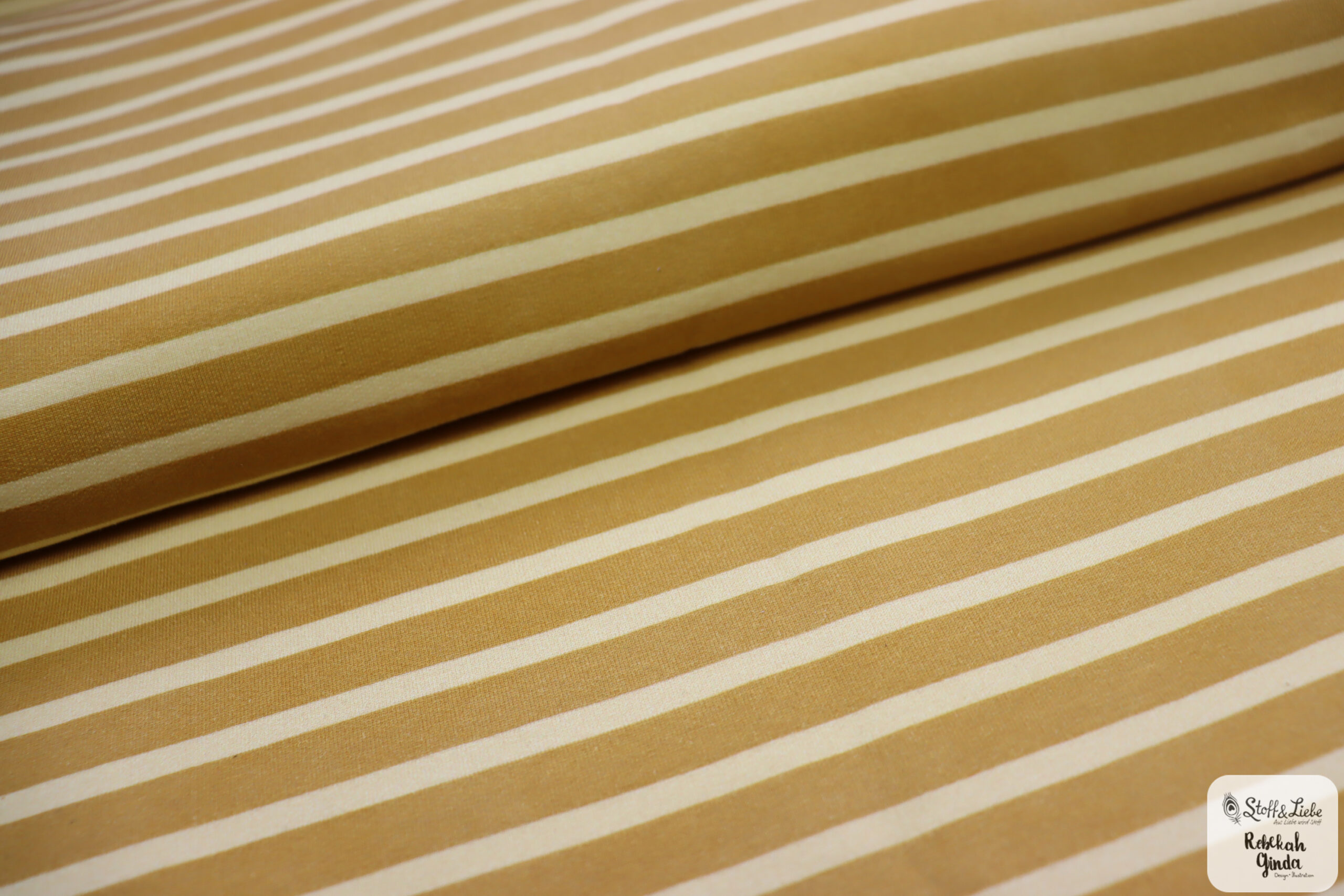 Die Streifen konntet Ihr schon auf den oberen Fotos entdecken und passt einfach perfekt zu dieser Kollektion. Die Gelb- und Honigtöne dieser Streifen passen sich perfekt an und geben Euch nicht nur die Möglichkeit, damit Details zu setzen, Teilungen einzuarbeiten, sondern auch Sets zu nähen.