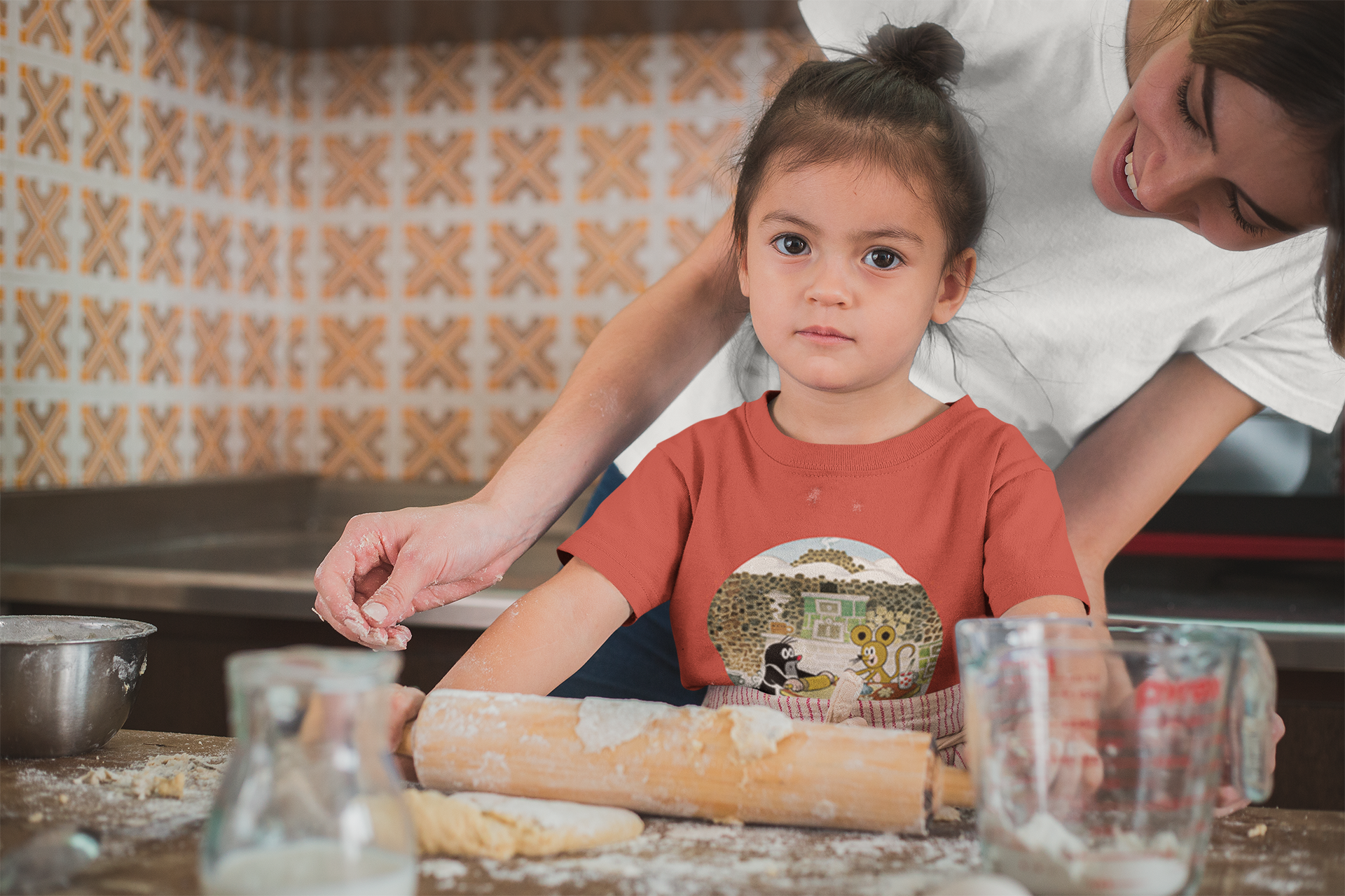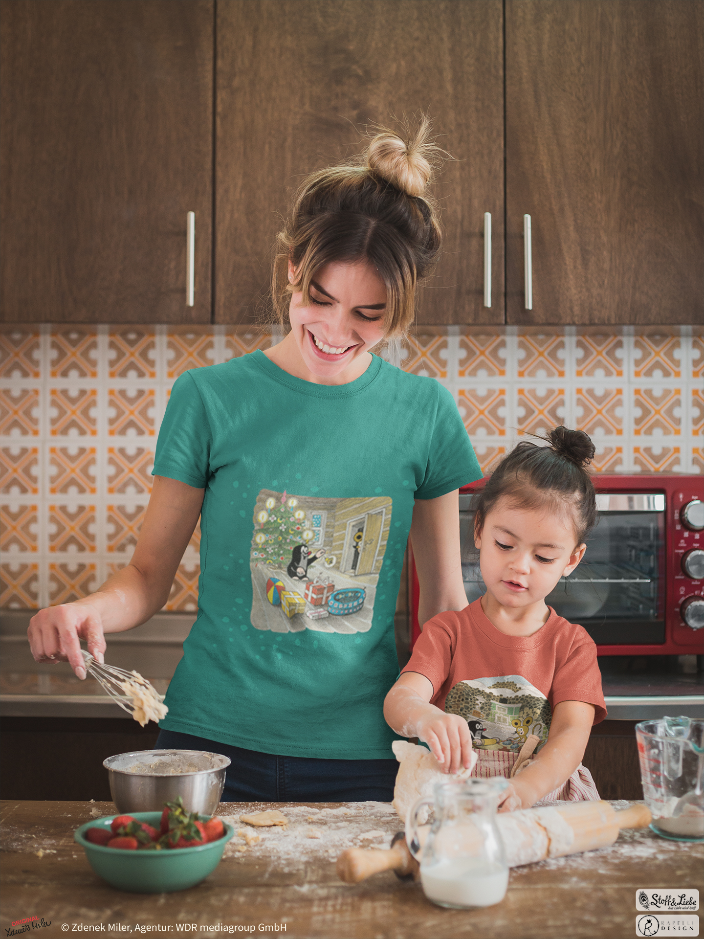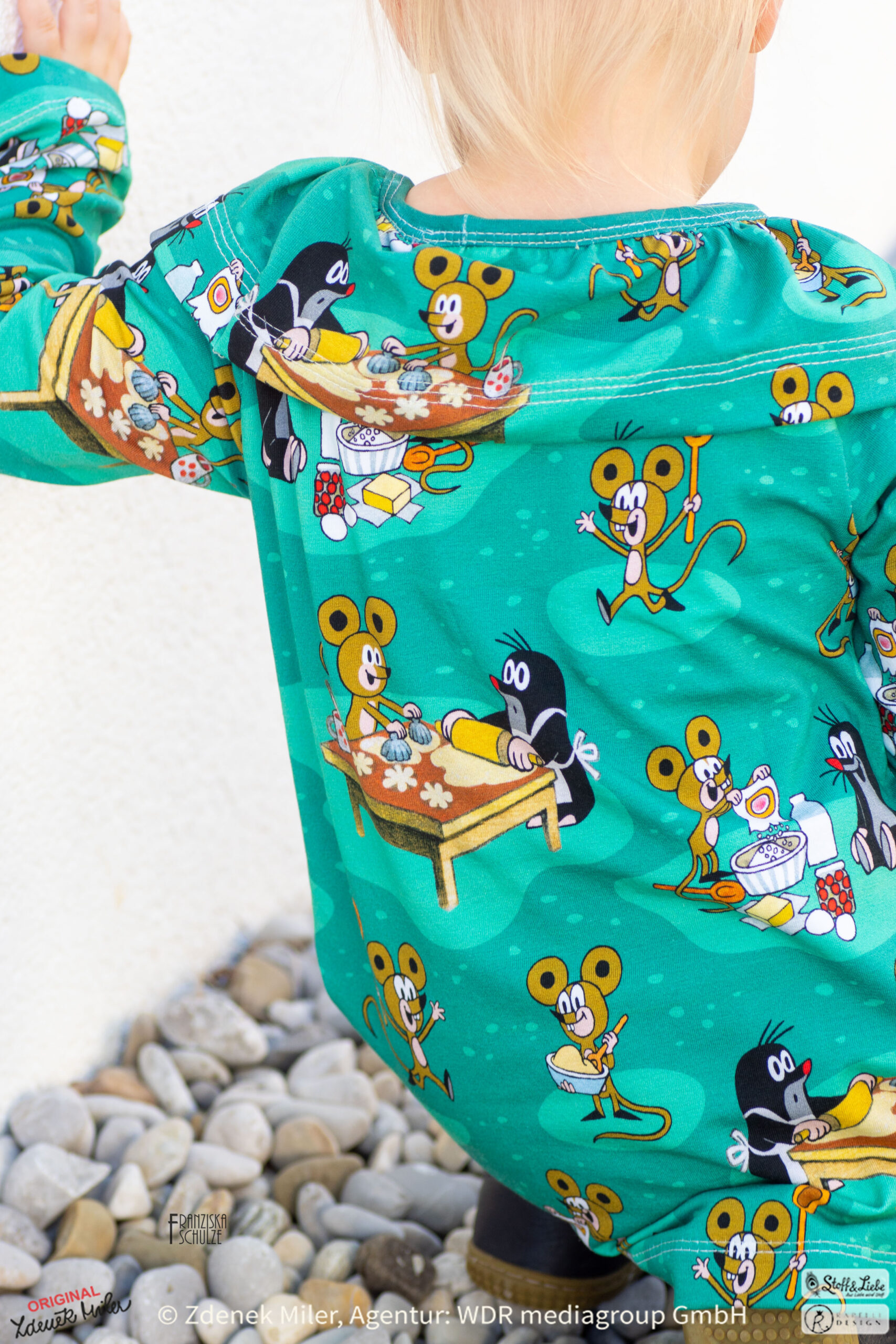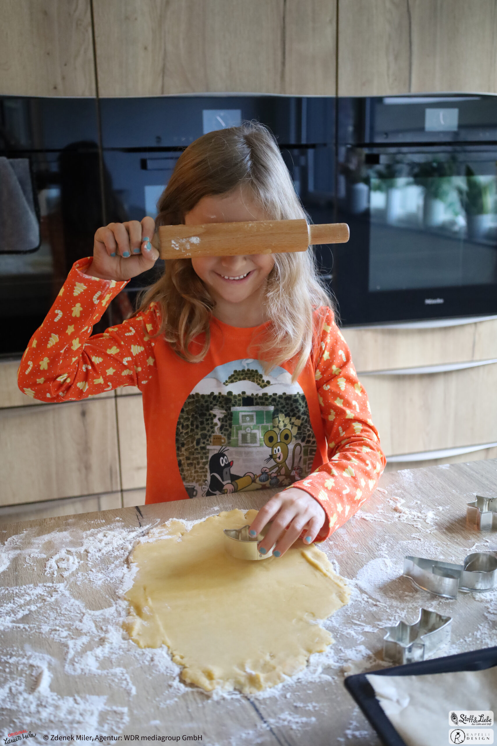 Der Allover ist einfach so goldig, das sofort die Ideen sprudeln, oder? Wir sind uns ziemlich sicher, dass es Euch genauso gehen wird wie uns. Wie niedlich ist es bitte, wie der Maulwurf gemeinsam mit der Maus den Teig vorbereitet und die Plätzchen aussticht. Wir gehen sogar soweit, dass dies einer der schönsten Maulwurf Stoffe ist, den wir bisher hatten.