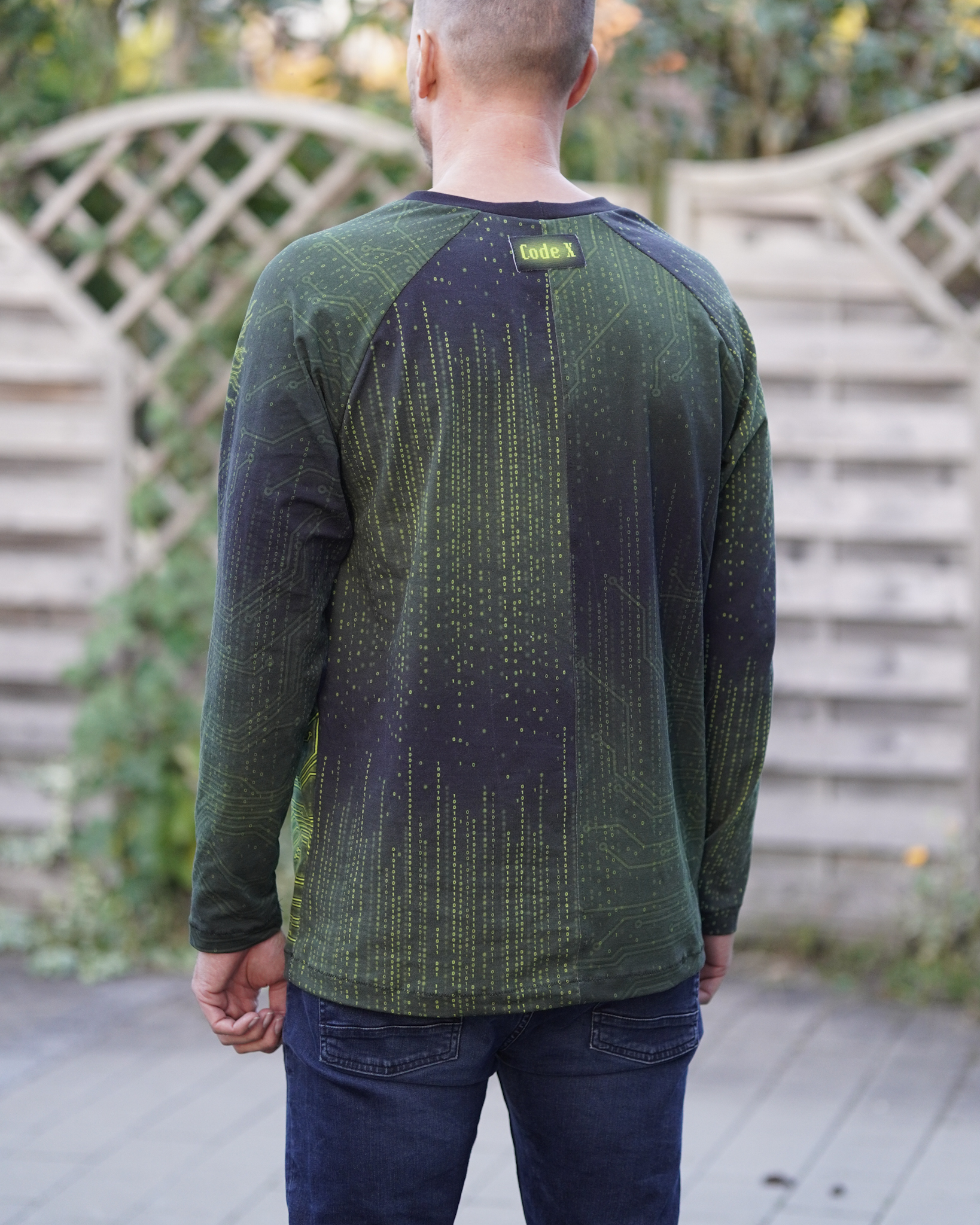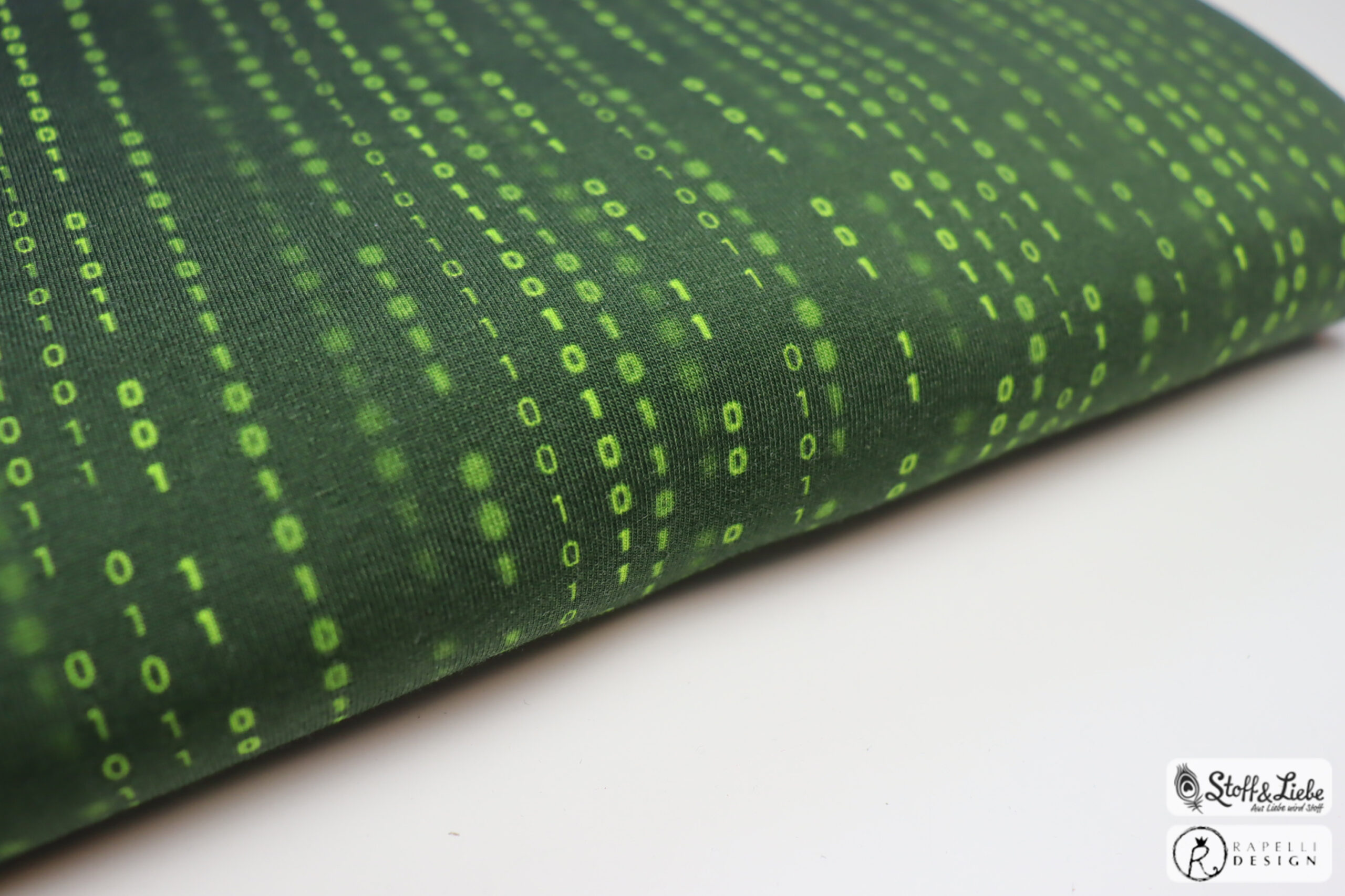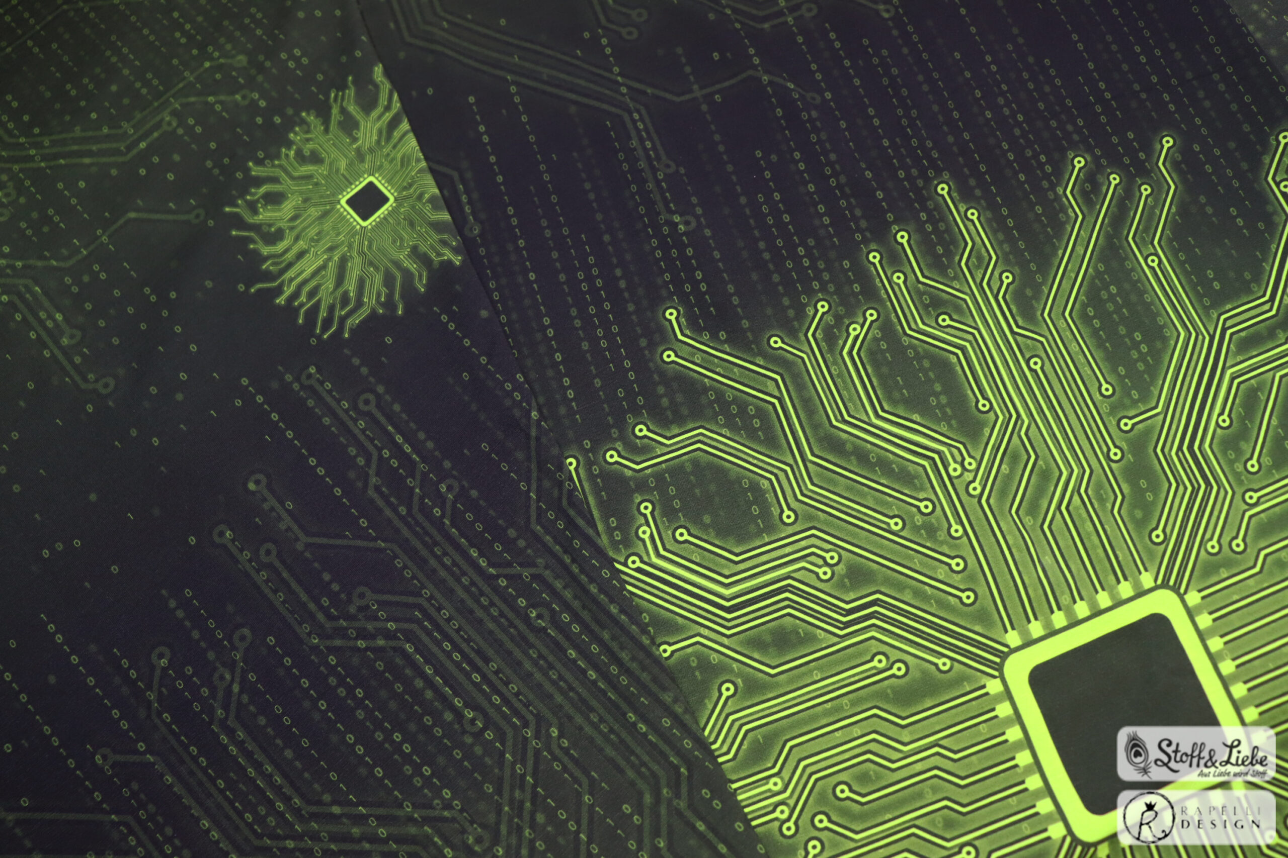 Unsere „Code X CPU“ Kollektion umfasst ein Panel und einen Hauptstoff. Beide Stoffe erhaltet ihr auf Jersey mit einer Materialzusammensetzung von 95 % Baumwolle und 5 % Elasthan. Umgesetzt wurden dieses Design von Rapelli Design.