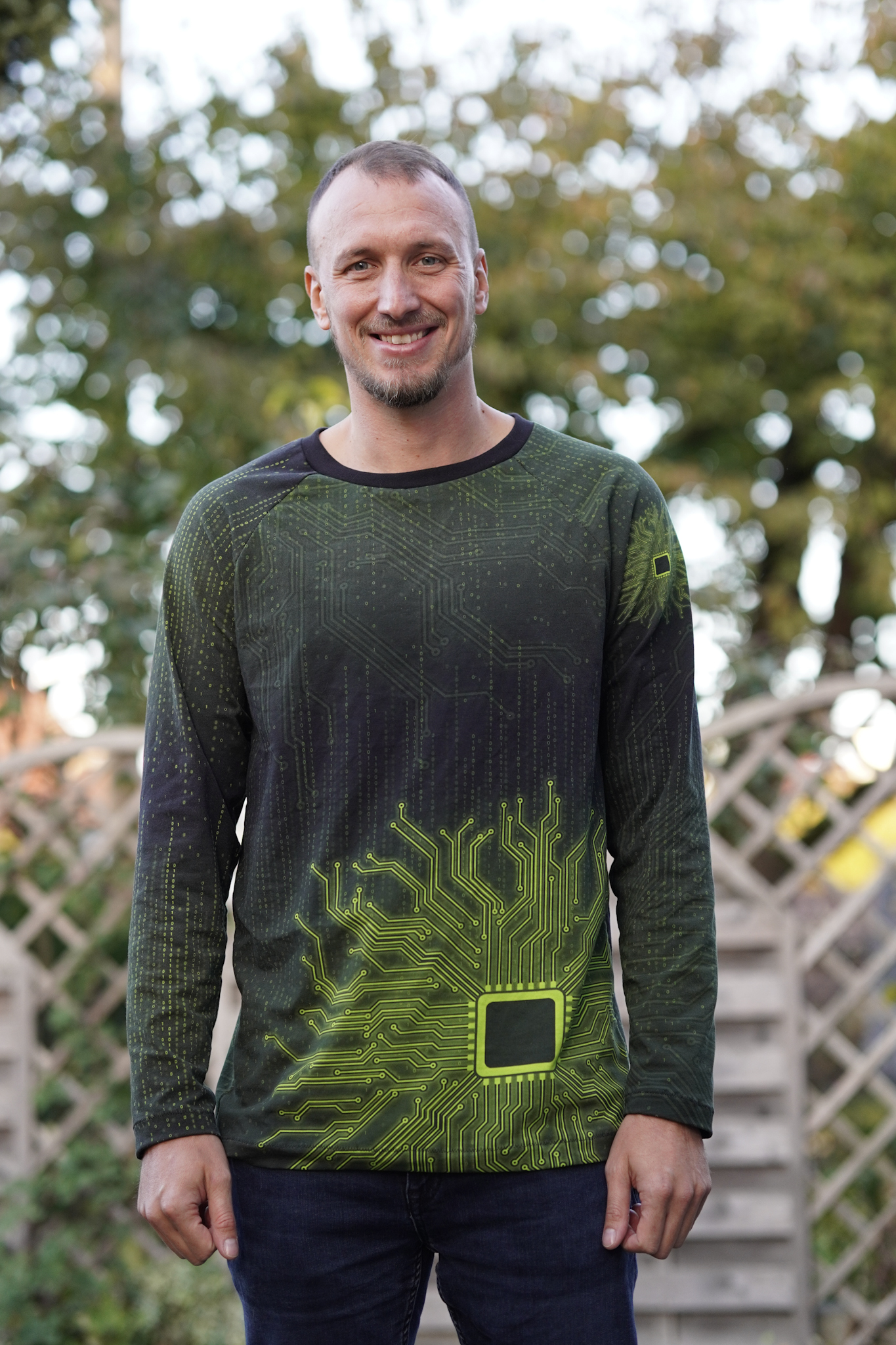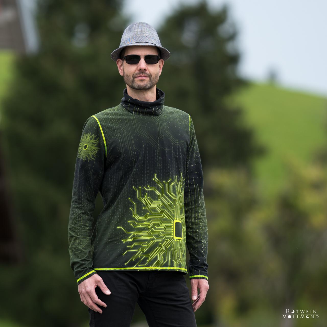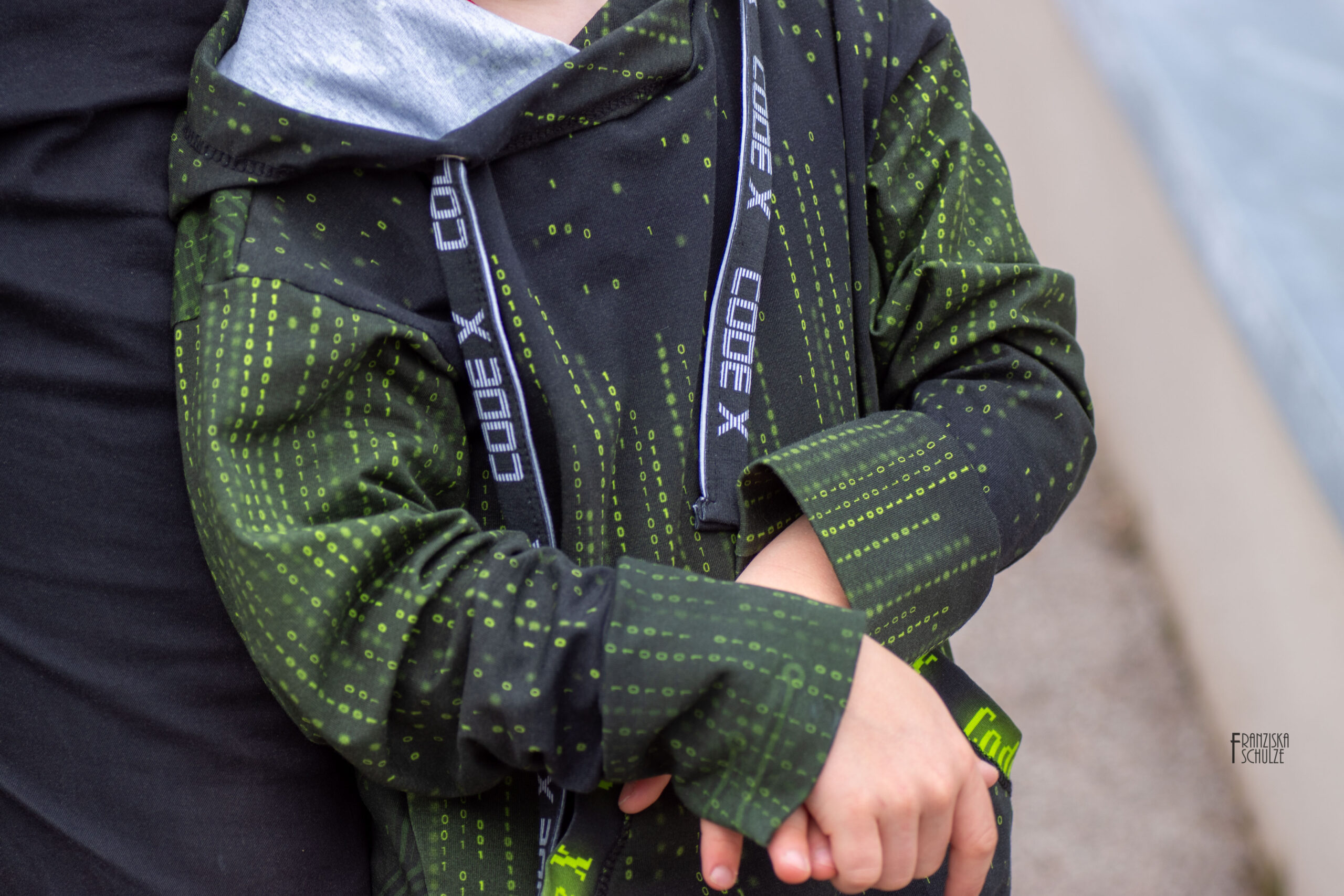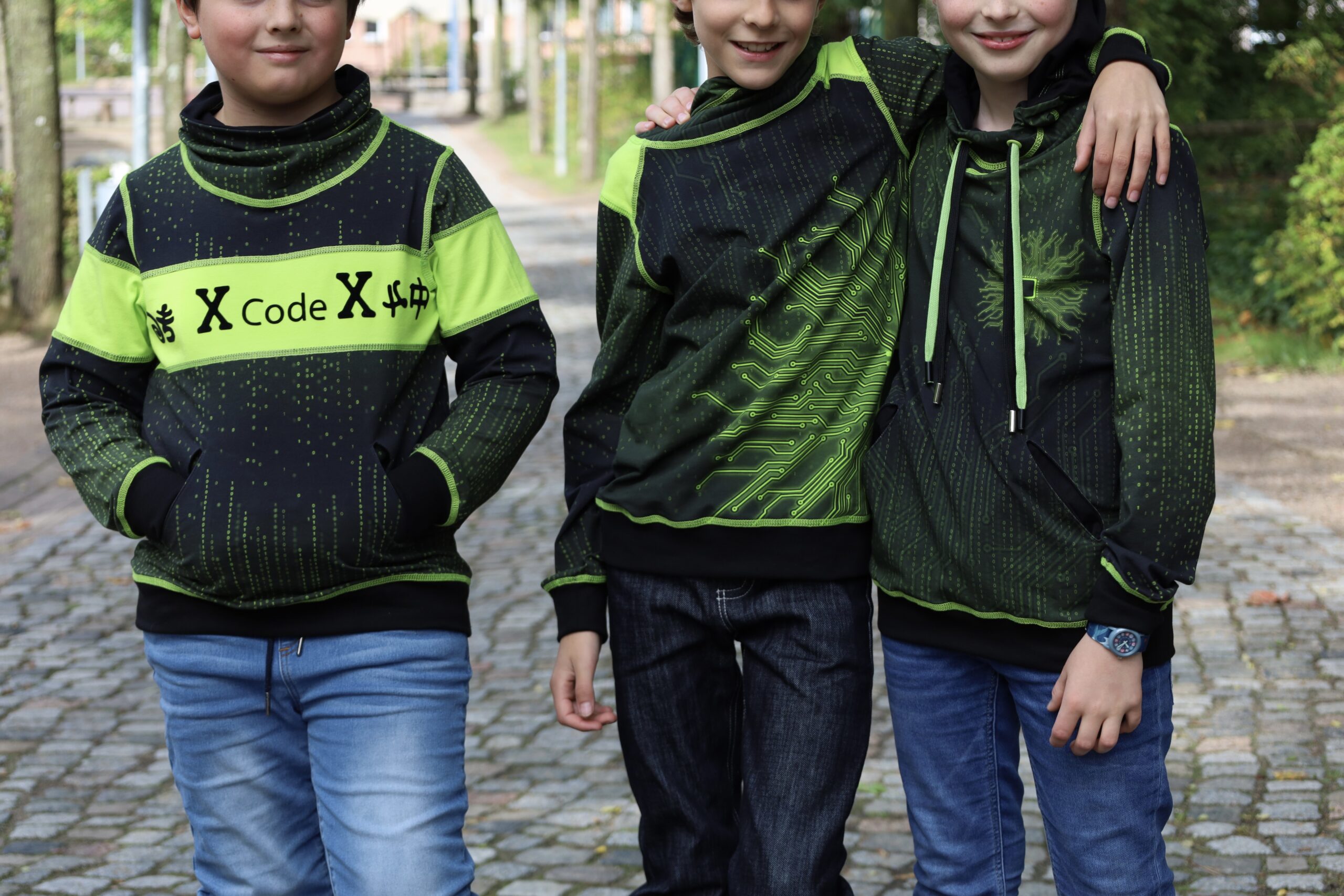 Unsere „Code X CPU“ Kollektion umfasst ein Panel und einen Hauptstoff. Beide Stoffe erhaltet ihr auf Jersey mit einer Materialzusammensetzung von 95 % Baumwolle und 5 % Elasthan. Umgesetzt wurden dieses Design von Rapelli Design.