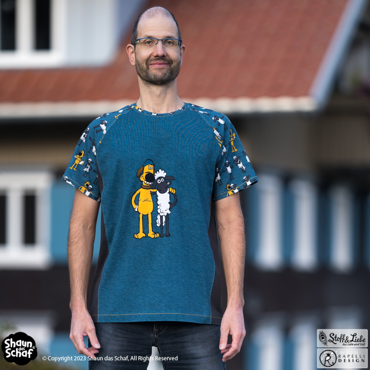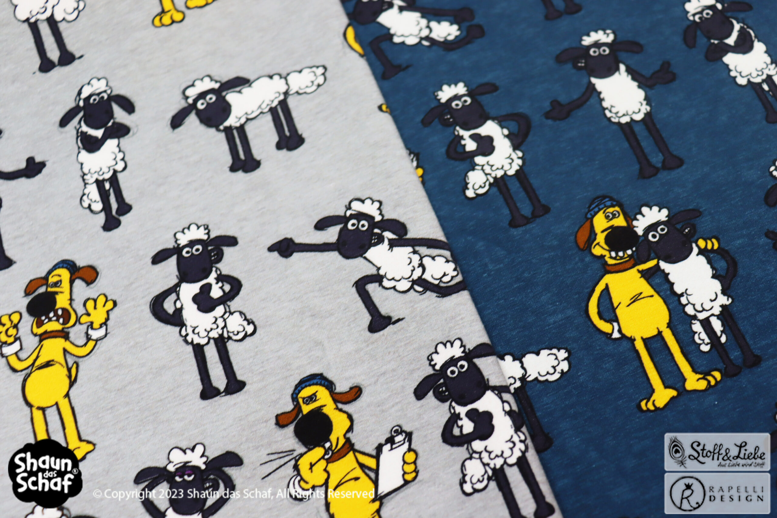 Wählen könnt Ihr zwischen Grau und Petrol. Ebenfalls wie das Panel im melierten Look. Na, wieviele verschiednen Gesten von Shaun und Bitzer könnt Ihr entdecken?