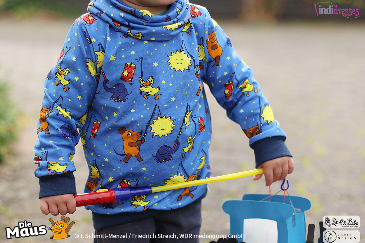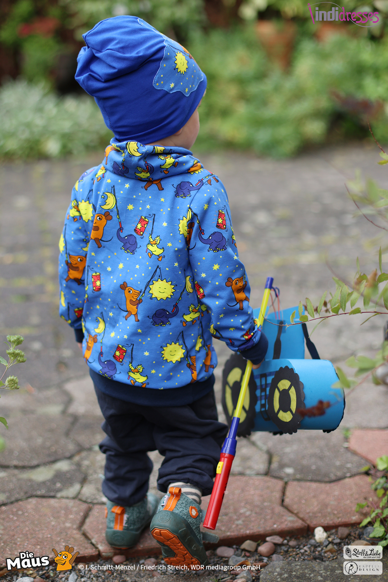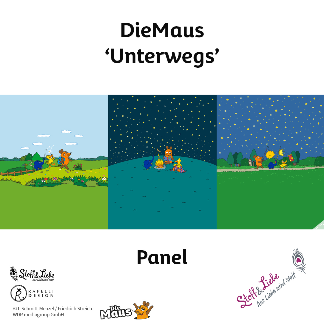 Unsere „DieMaus – Unterwegs“ wurde umgesetzt von Rapelli Design. Zu diesem Design gehört ein Panel und zwei Allover. Die Stoffe bekommt Ihr auf Jersey.