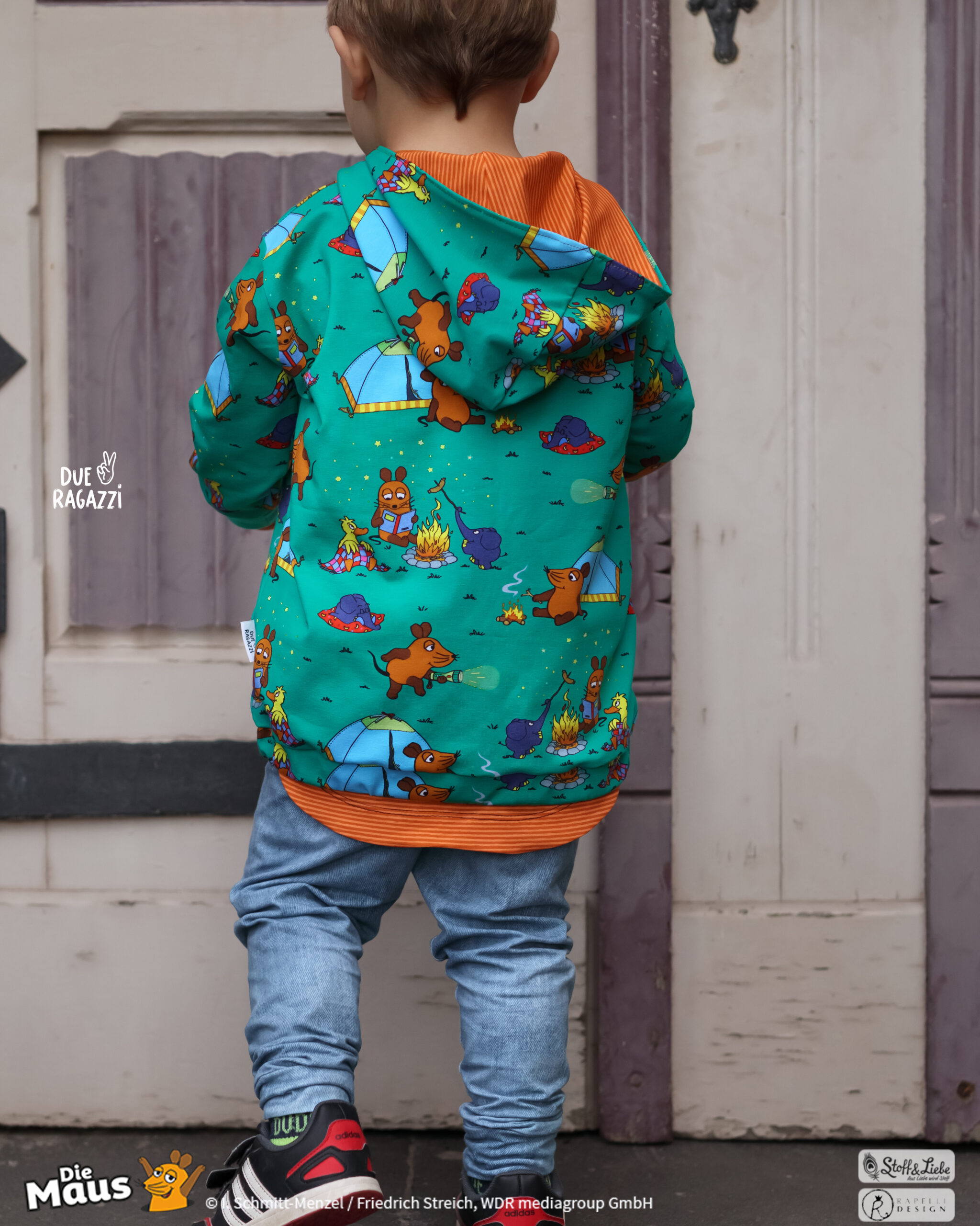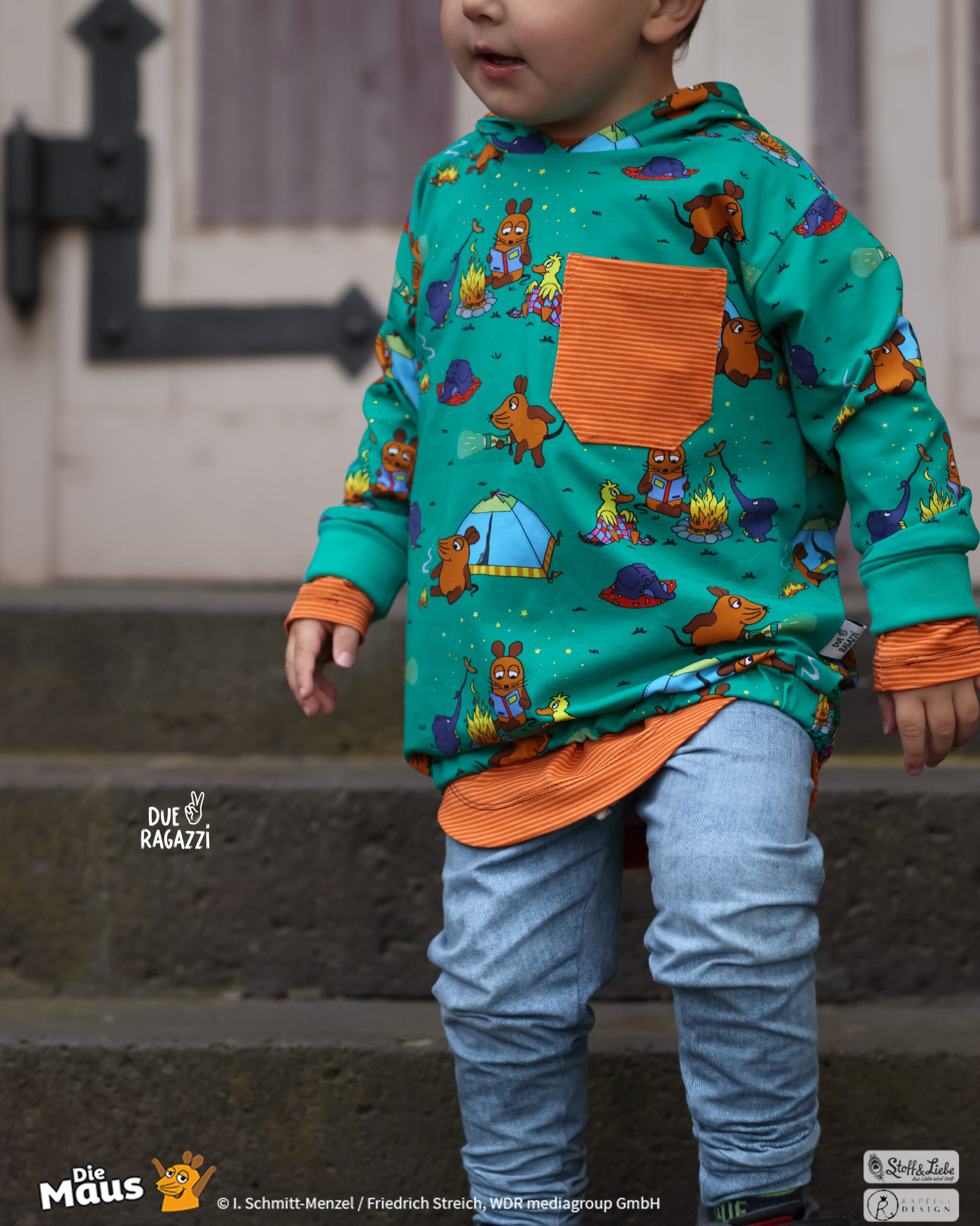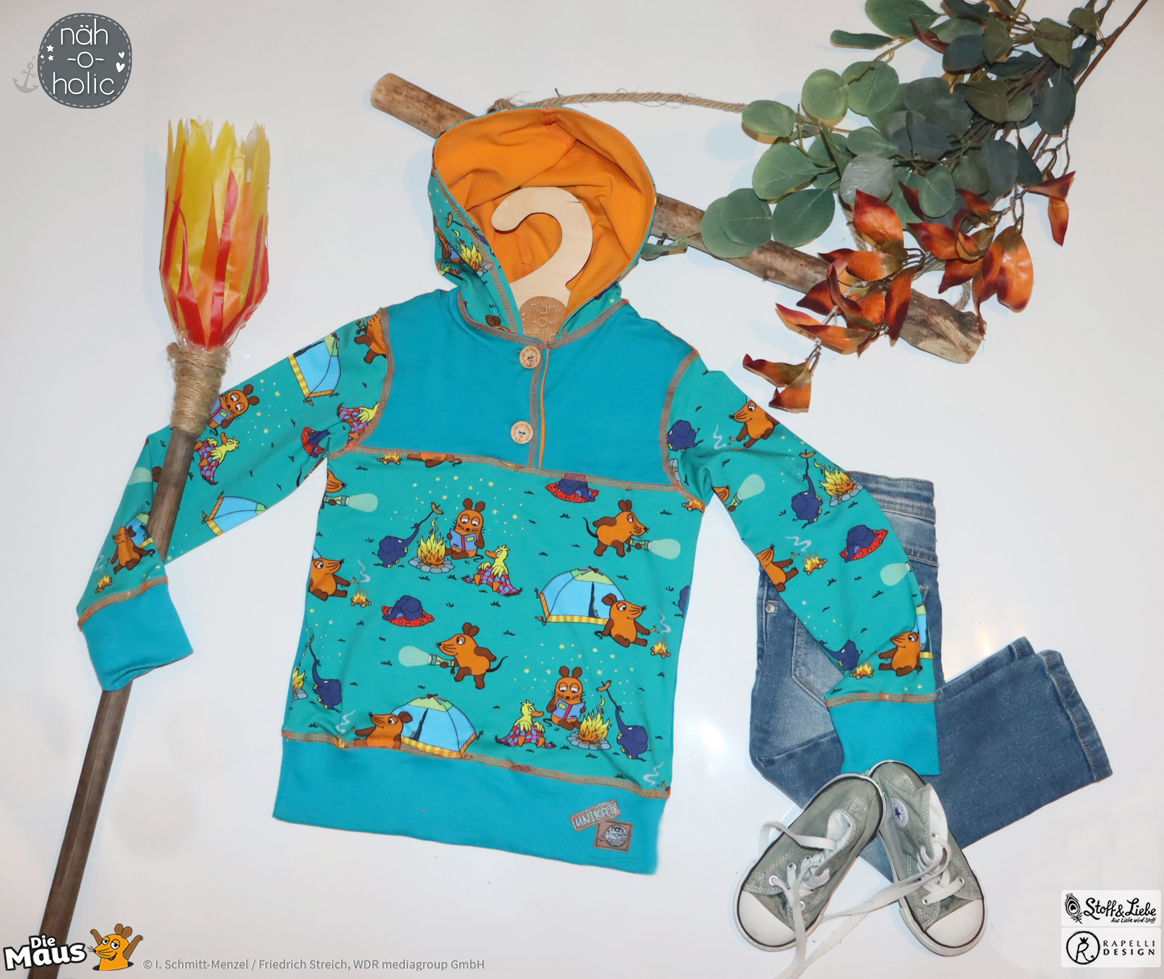 Unsere „DieMaus – Unterwegs“ wurde umgesetzt von Rapelli Design. Zu diesem Design gehört ein Panel und zwei Allover. Die Stoffe bekommt Ihr auf Jersey.