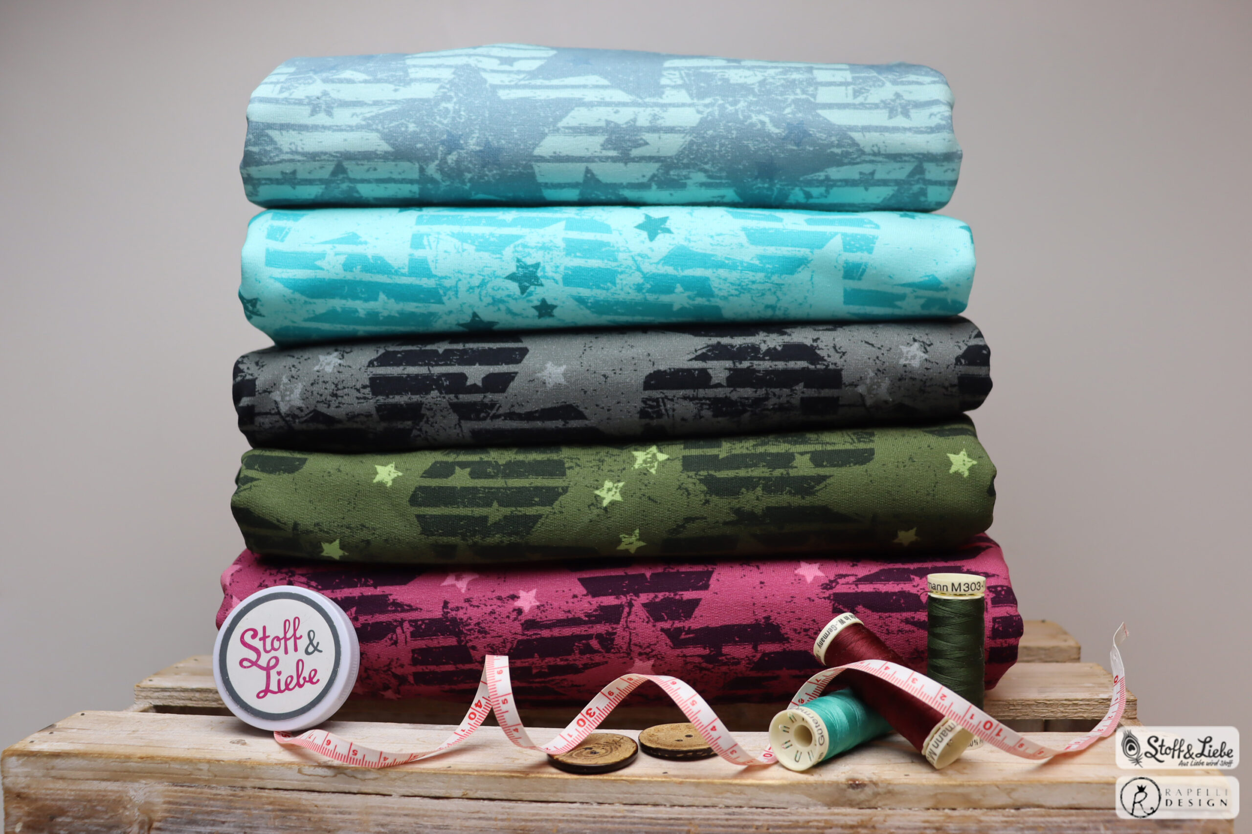 Unsere „Vintage Stars“ Kollektion hält diesmal fünf unfassbar tolle Farben für Euch bereit. Zwei davon auf French Terry und drei auf Jersey. Wie auch schon die erste Kollektion stammt dieses Design aus der Feder von Rapelli Design.