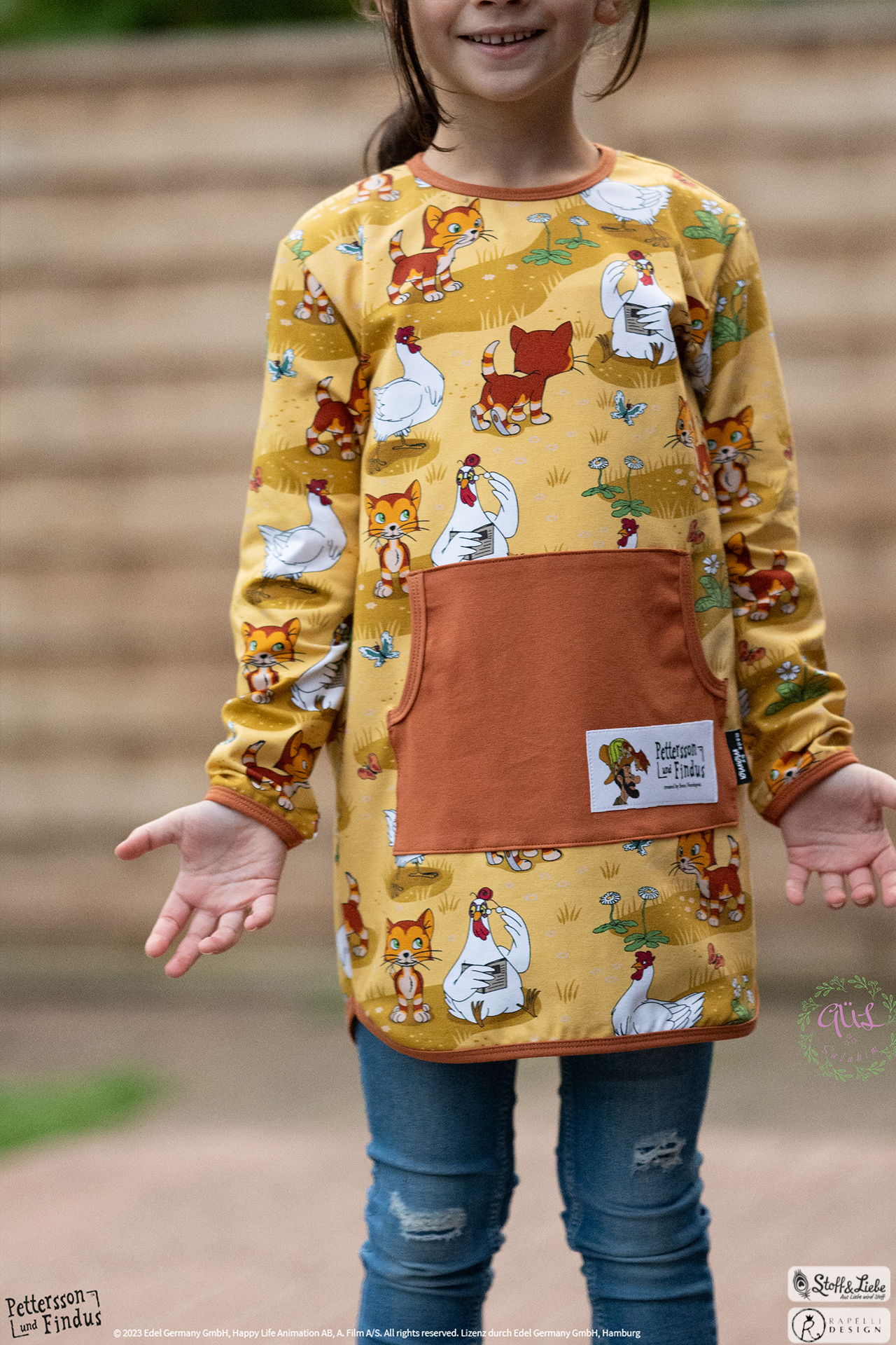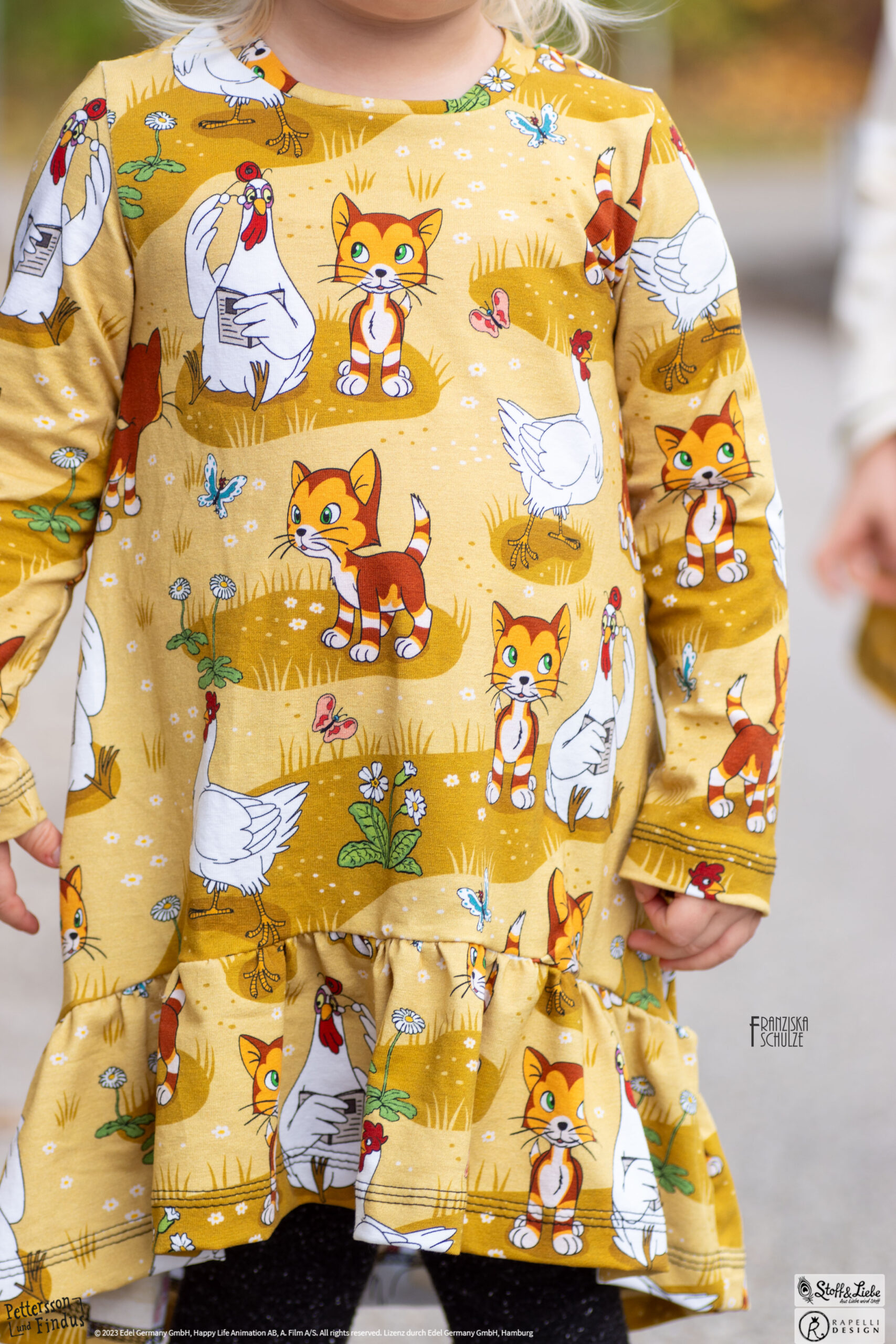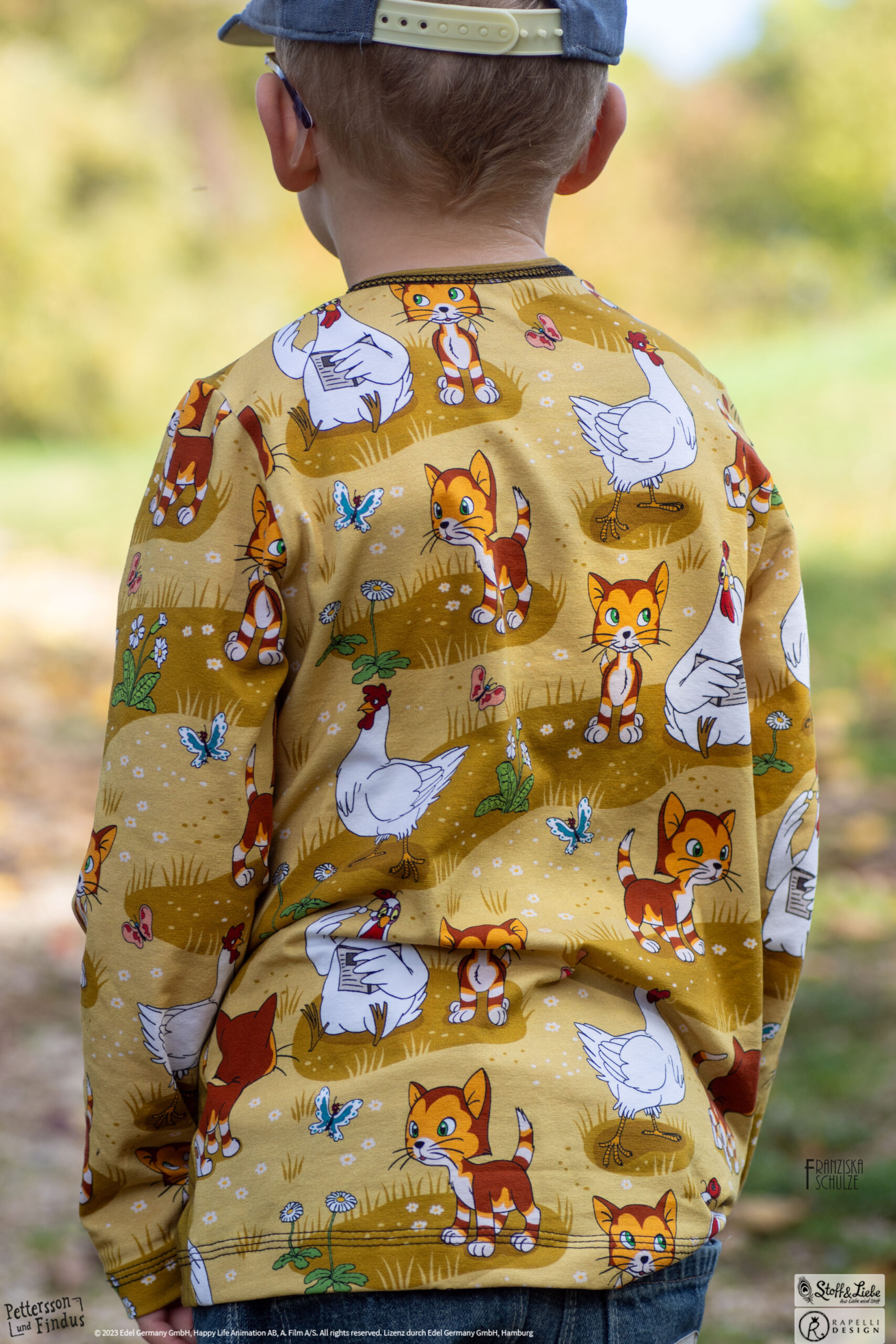 Den Allover „Findus Klein“ haben wir für Euch passend in Honig und Grün. Entdecken könnt Ihr Findus samt den Hühnern. Wisst Ihr eigentlich wie die Hühner von Pettersson heißen?