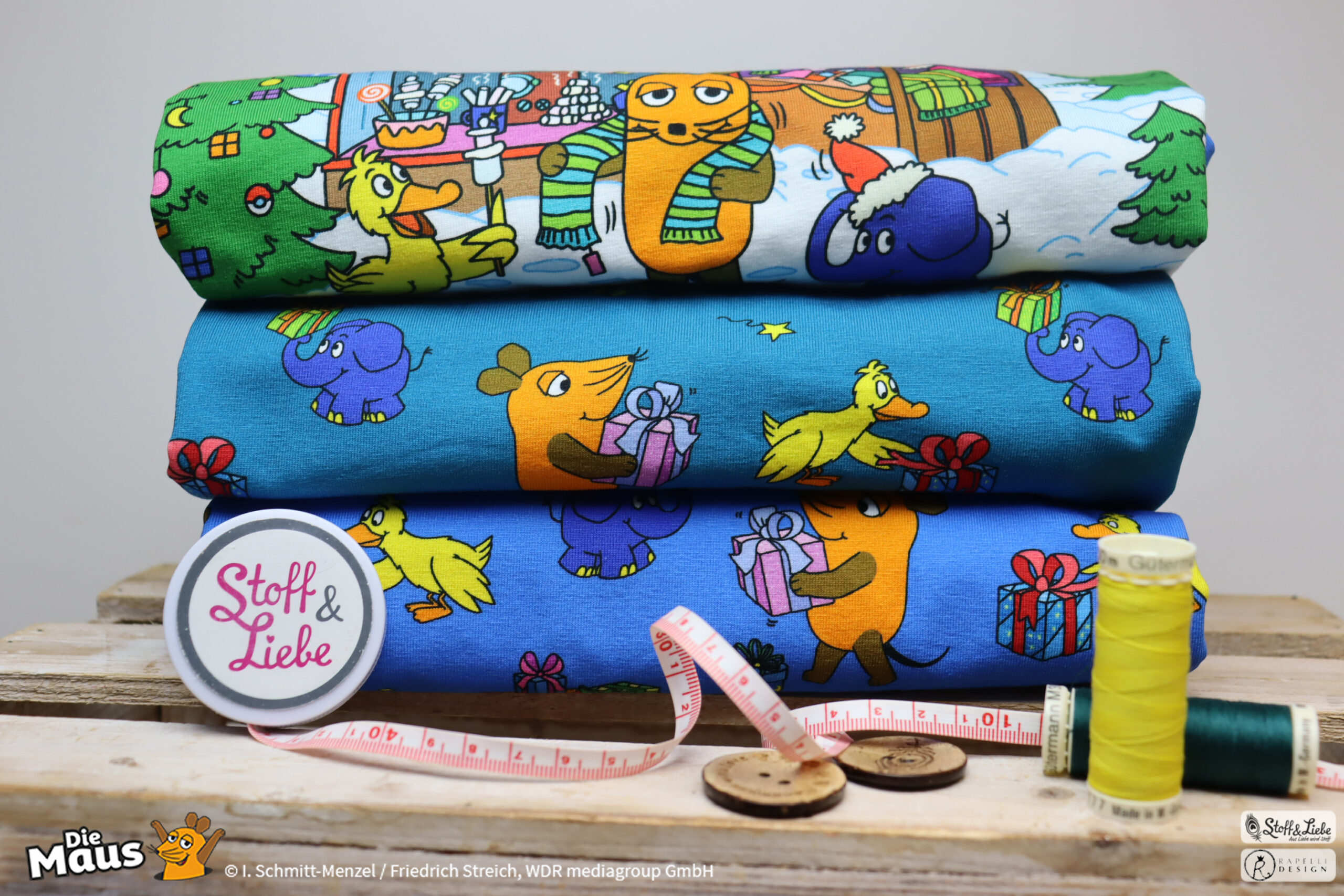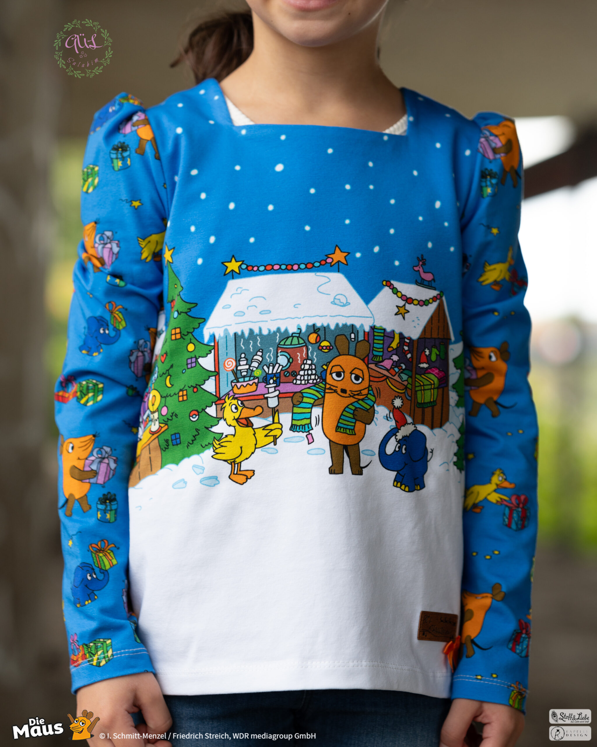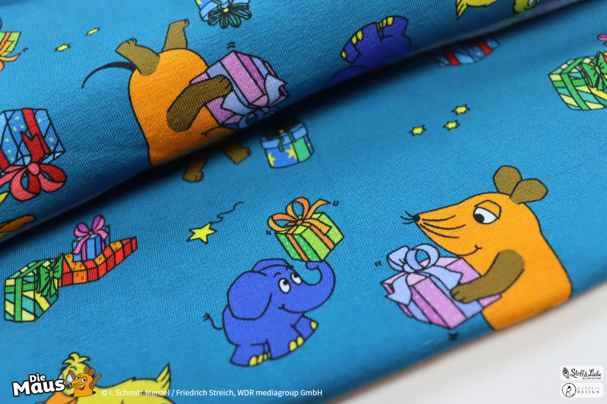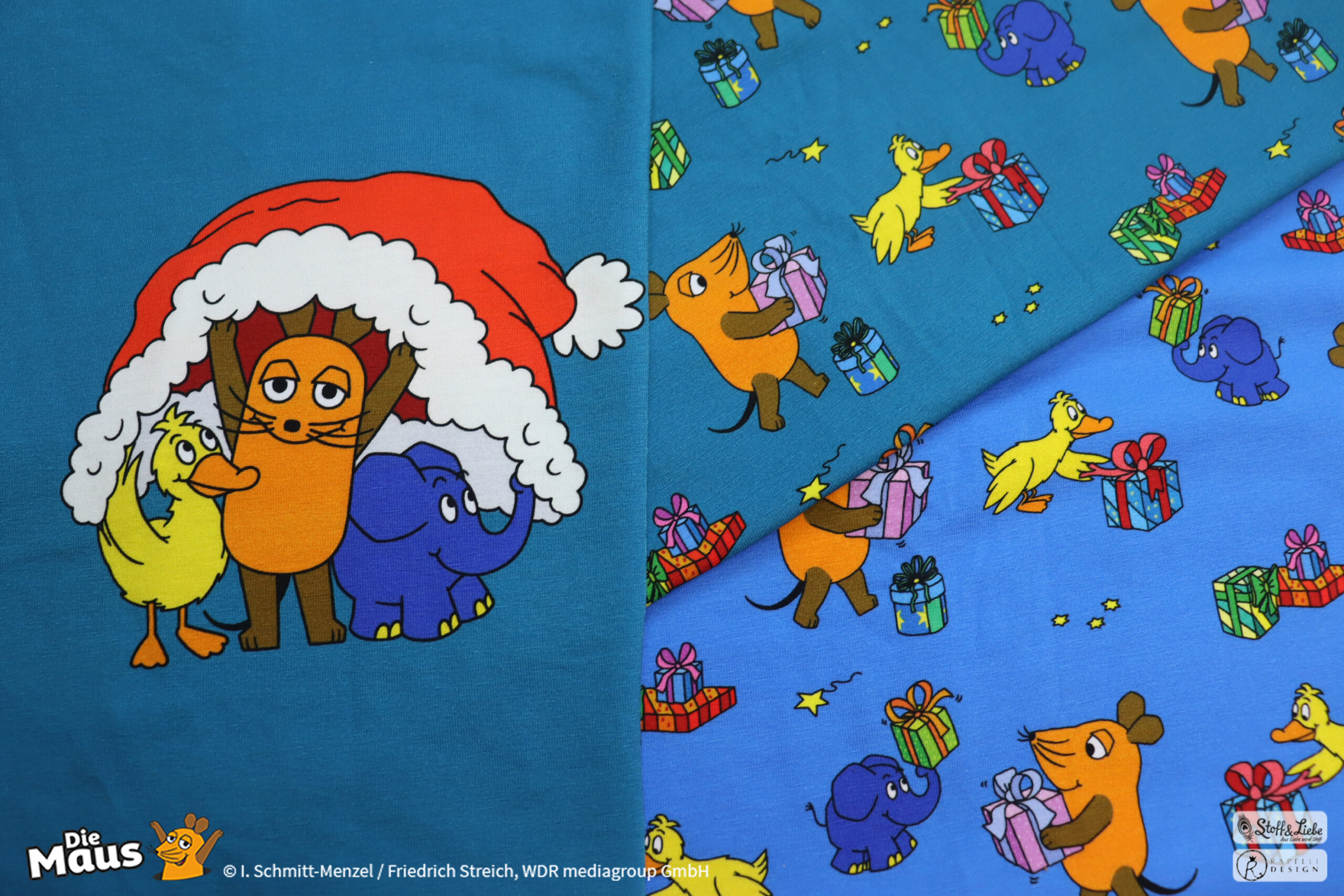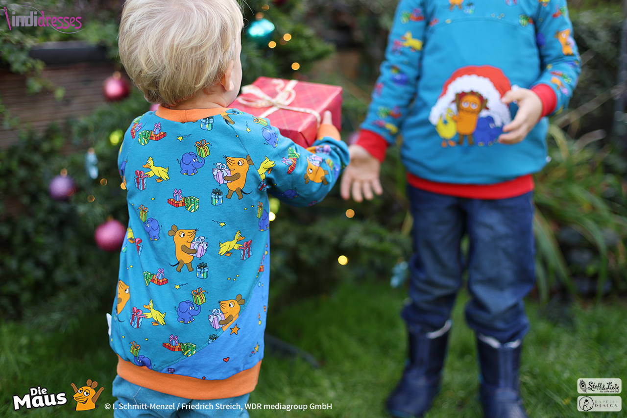 Unsere „DieMaus – Alle Jahre wieder“ wurde umgesetzt von Rapelli Design. Zu diesem Design gehört ein Panel und zwei Allover. Die Stoffe bekommt Ihr auf Jersey in unserer bekannten Spitzenqualität.