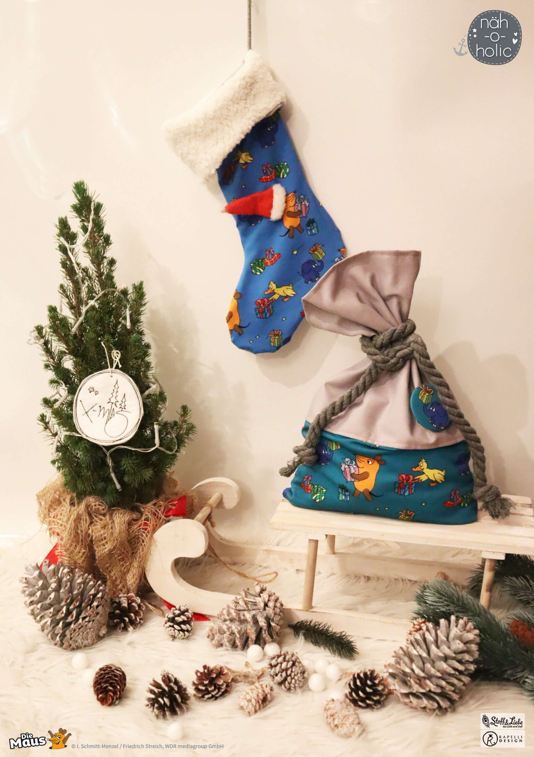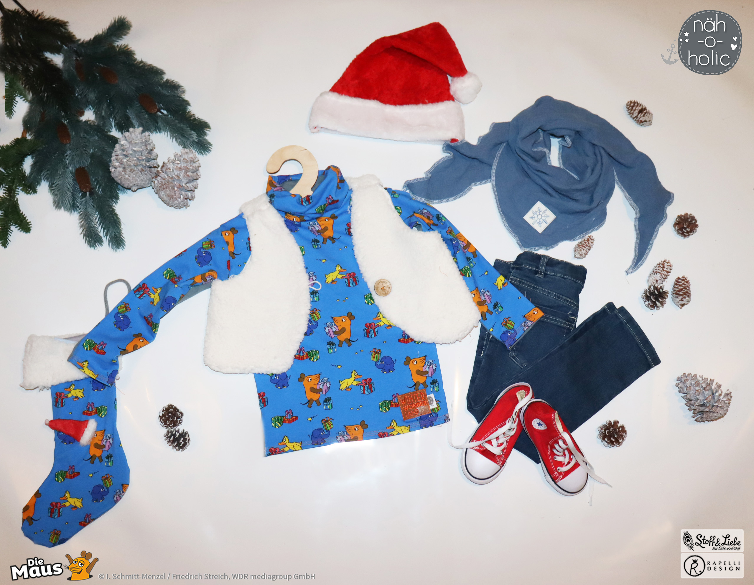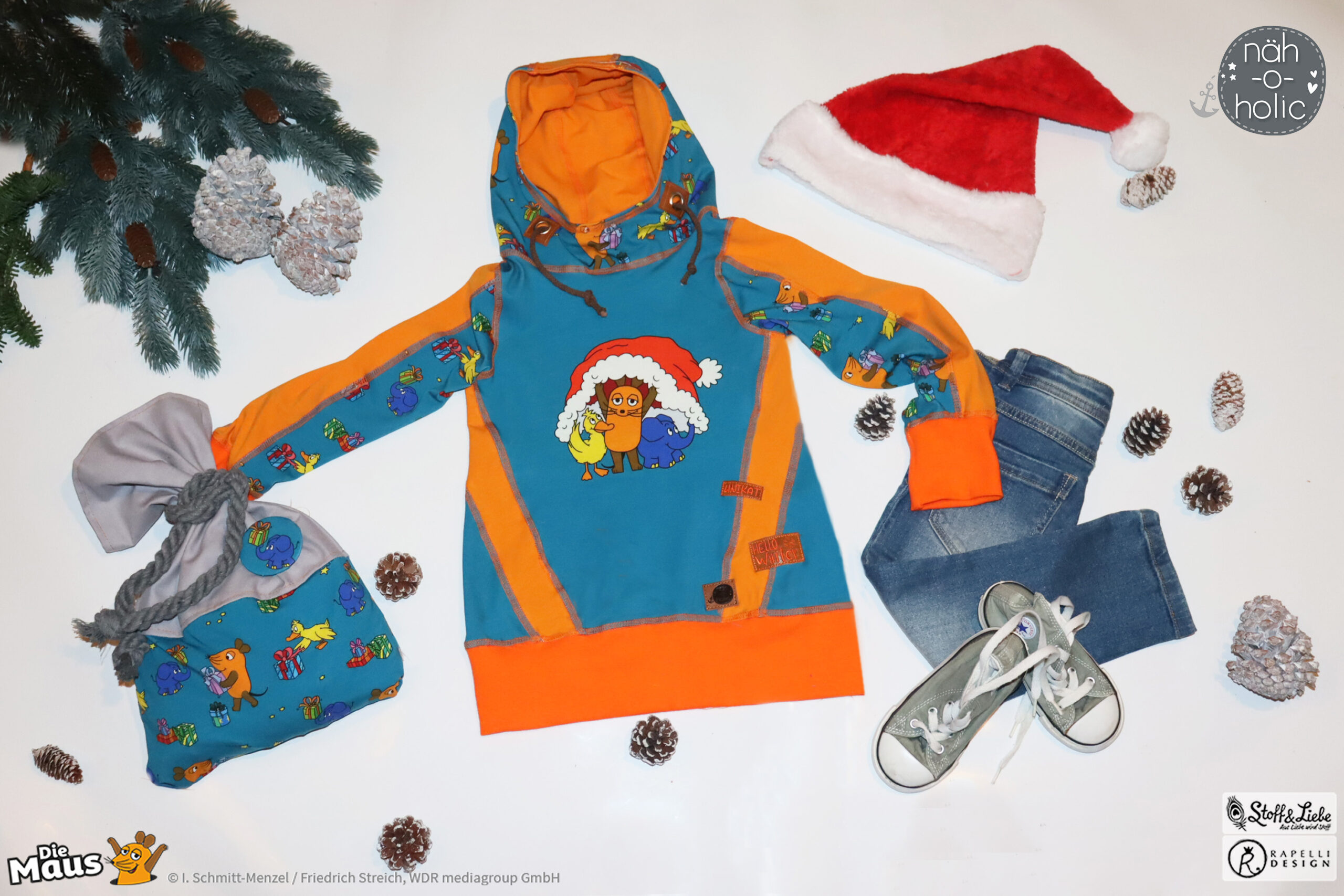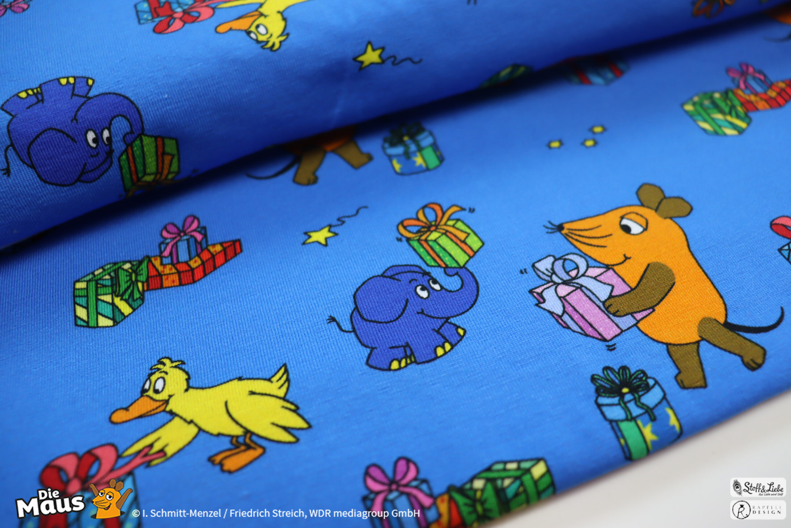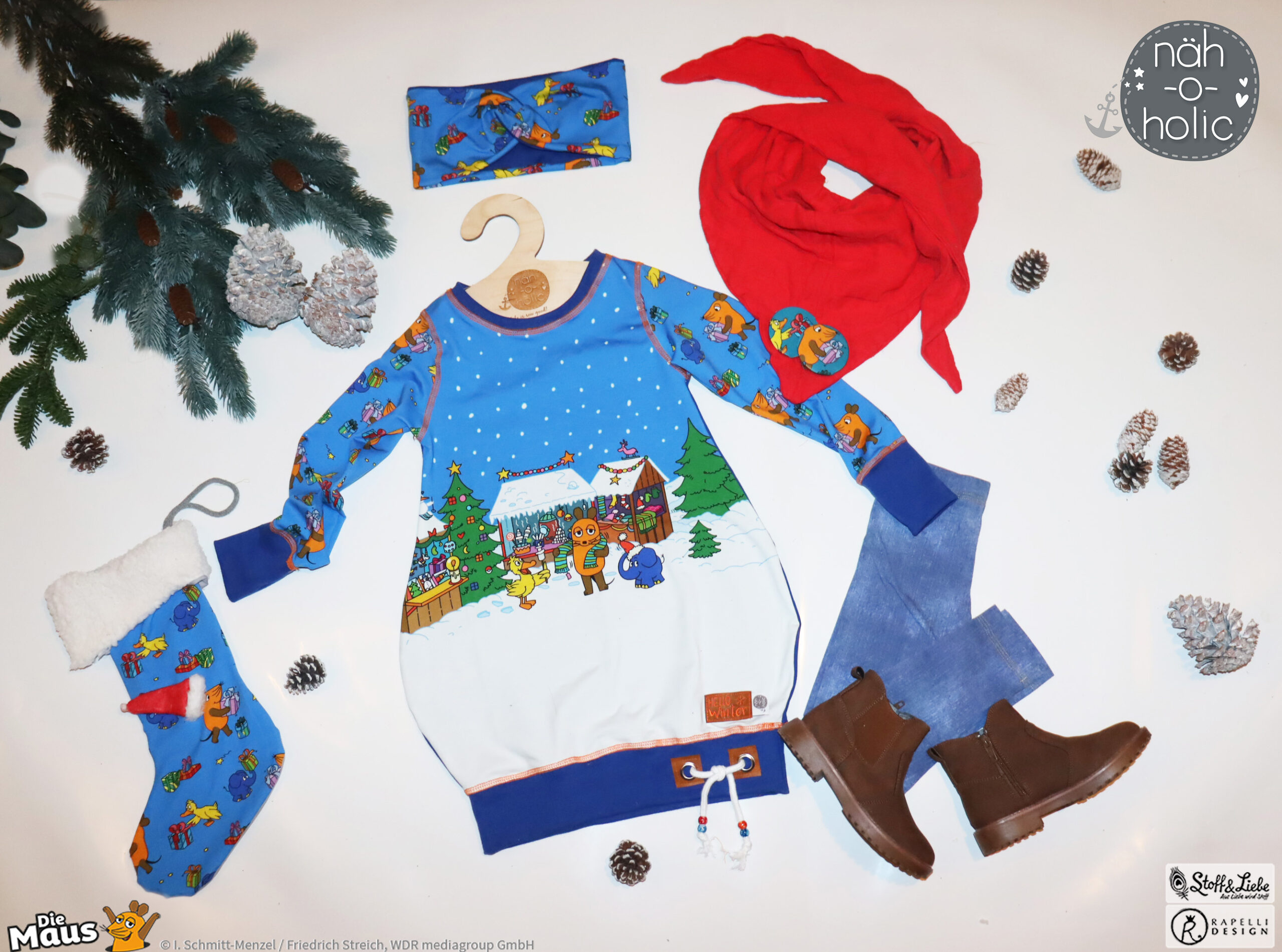 Unsere „DieMaus – Alle Jahre wieder“ wurde umgesetzt von Rapelli Design. Zu diesem Design gehört ein Panel und zwei Allover. Die Stoffe bekommt Ihr auf Jersey in unserer bekannten Spitzenqualität.