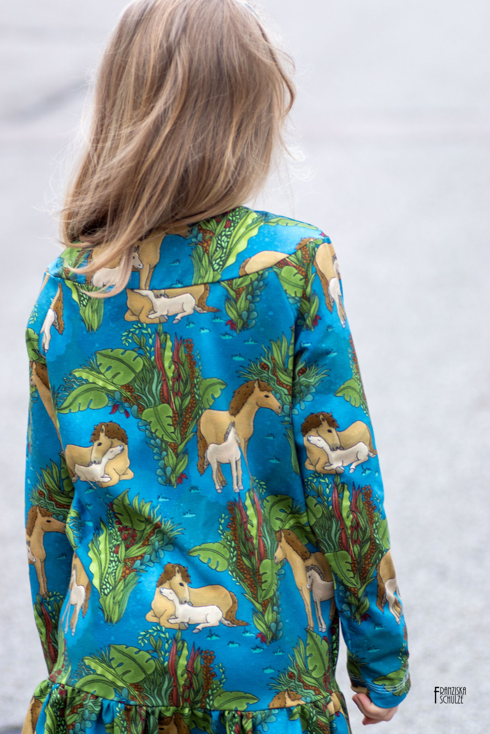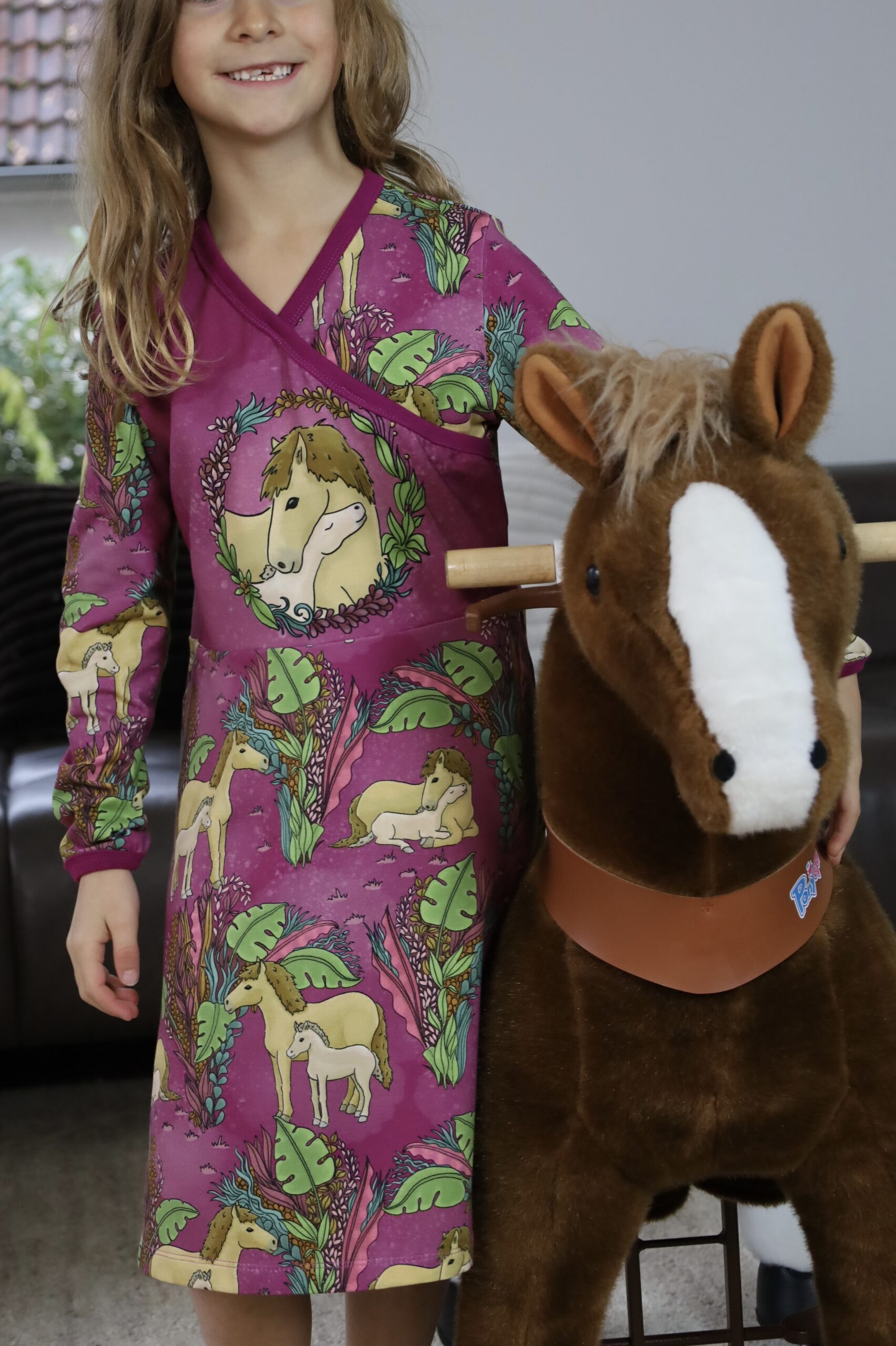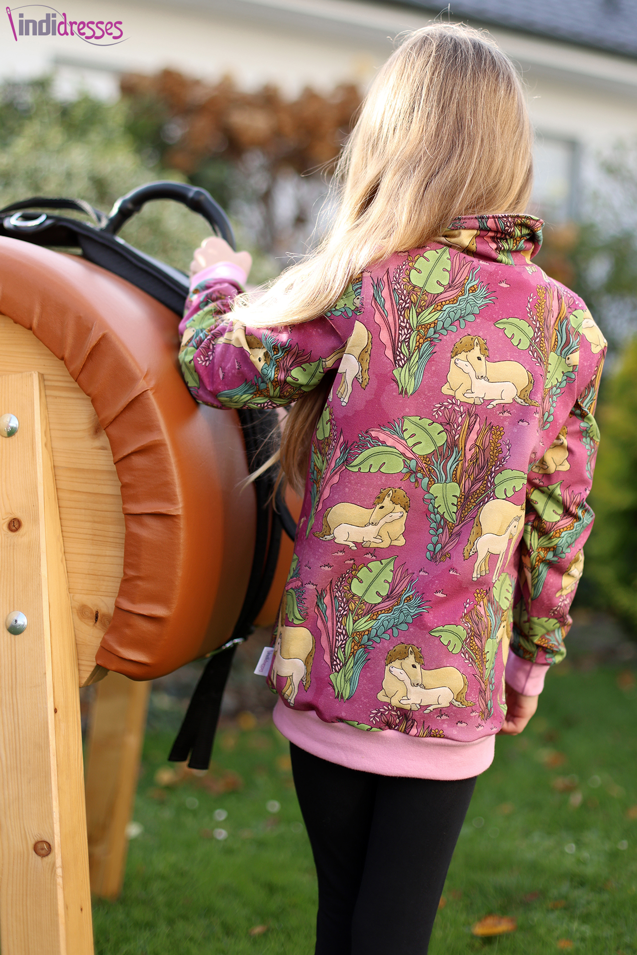 Solo vernäht ist dieser Stoff auch einfach wunderbar. Wie wäre es mit einem lässigen Pulli? Oder doch lieber einem eleganten Kleid? Sicher könnt Ihr auch Eure Reitgarderobe hiermit aufstocken. Oder eine leichte Jacke für nach dem Ausritt? Egal was Ihr näht, mit diesen Stoffen könnt Ihr jedem ohne auch nur ein Wort von Eurer Pferdeliebe überzeugen. Hier ist wieder so vieles möglich. Lasst Euch gerne auch von unseren Designbeispielen inspirieren.