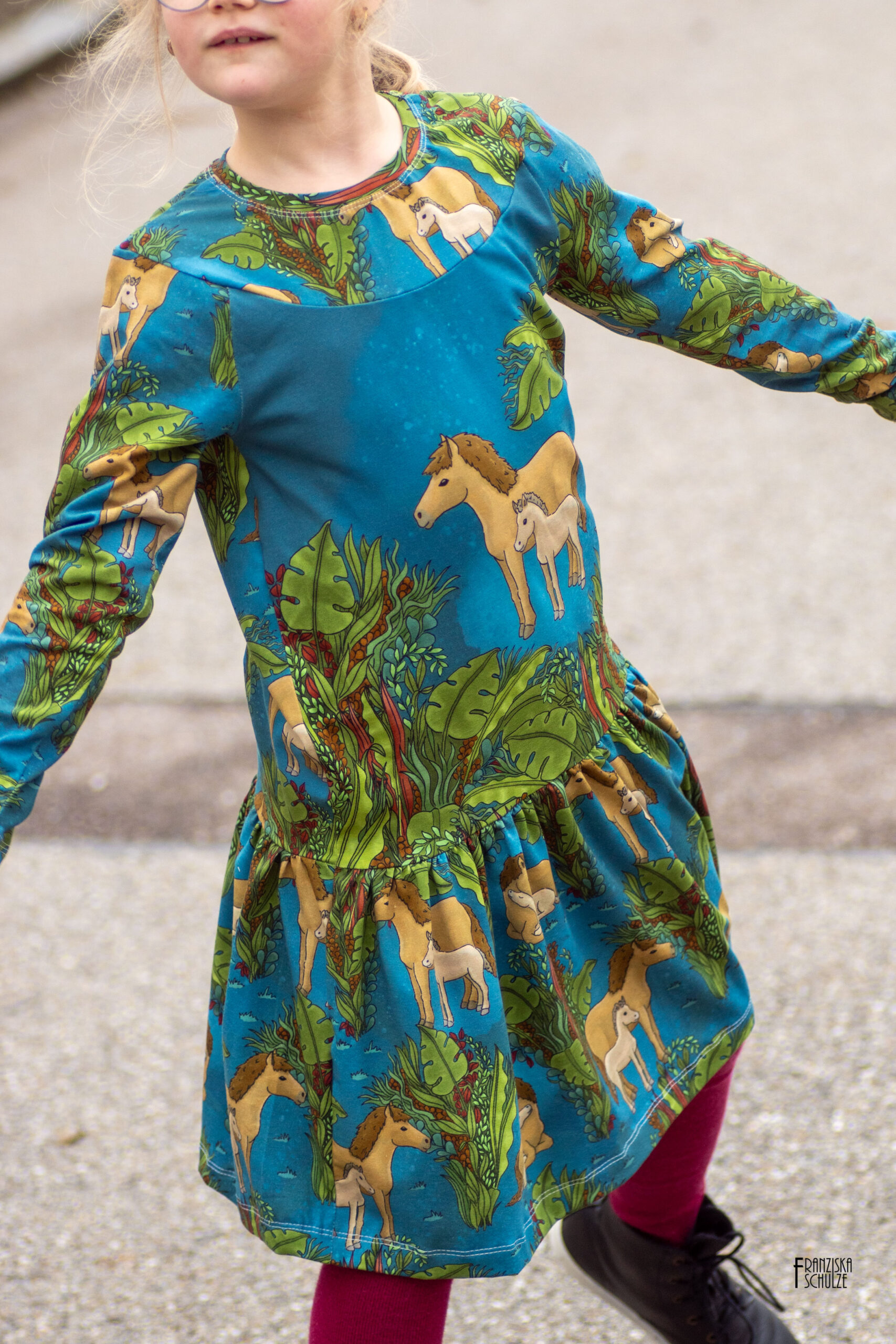 Wie schon erwähnt bekommt Ihr den Allover in zwei passenden Farbvarianten: Petrol? und Beere. Die Motive haben eine Höhe von ca. 6,5 cm (Pferde liegend) und ca. 11 cm (Pferde stehend). Der Allover ist durch die Gestaltung ein echter Hingucker. Wie wunderbar sich die Pflanzen einfügen und trotzdem die Pferde im Vordergrund stehen. Wie auch beim Panel habt Ihr hier jede Menge Möglichkeiten Eure Nähwerke zu gestalten. Da jede Farbe sich sowohl im Panel als auch im Allover wiederfindet, passt alles perfekt zusammen.
