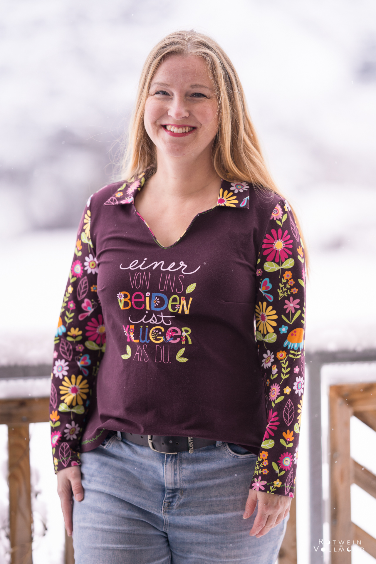 Auf einer Höhe von ca. 85 cm habt Ihr die Wahl zwischen zwei Motiven. Auf der linken Seite findet Ihr den Spruch „Wer schön sein will, muss lachen“ auf einem schieferfarbenen Untergrund und auf der rechten Seite „Einer von uns beiden ist klüger als Du“ auf einem warmen Bordeaux.