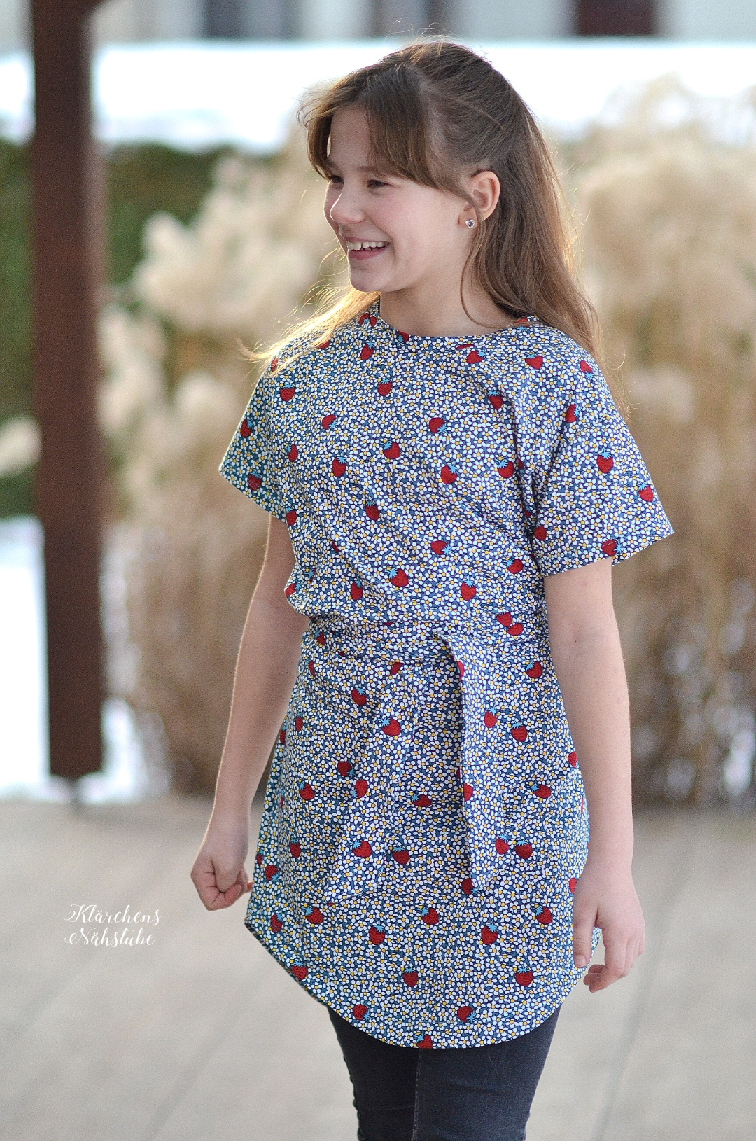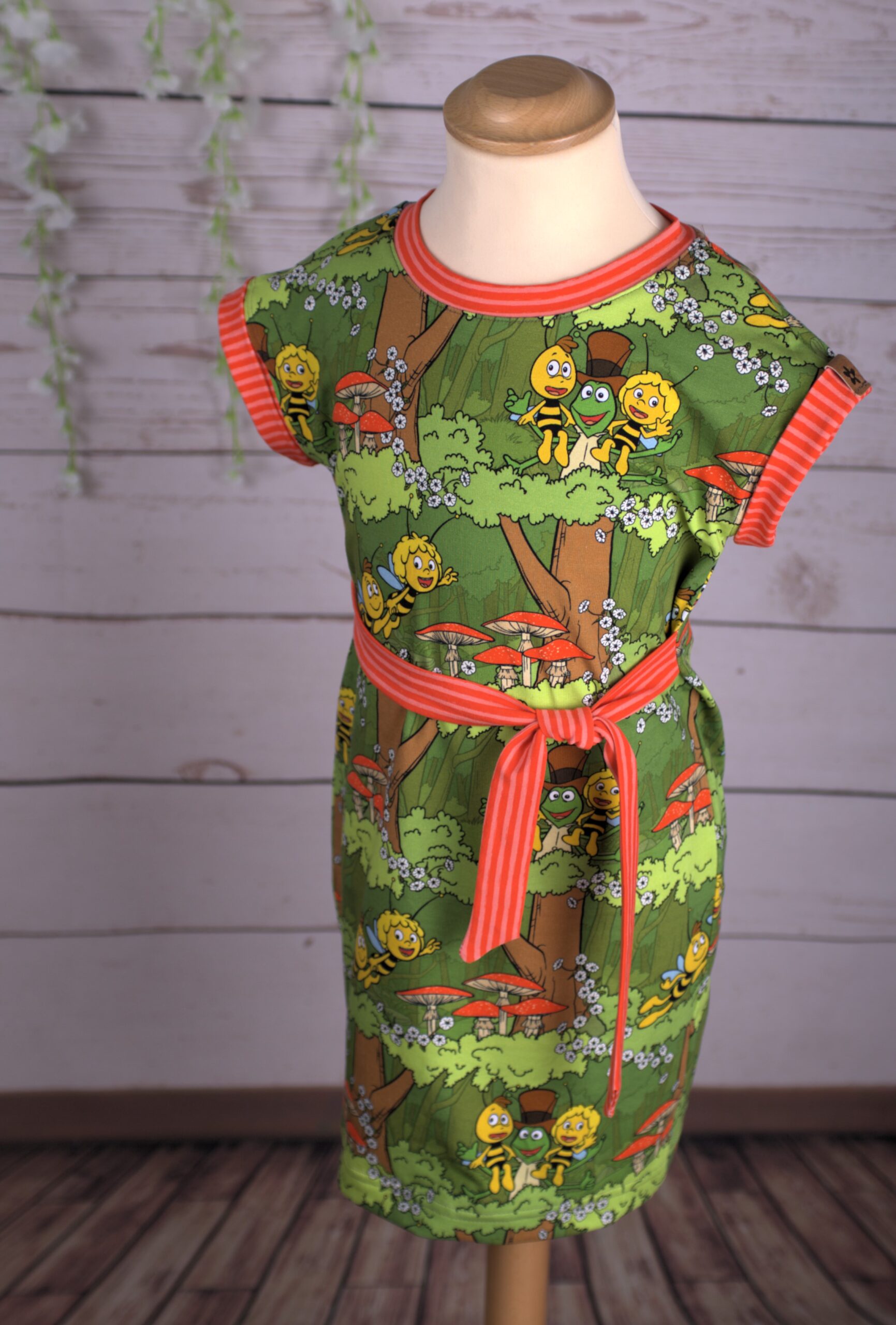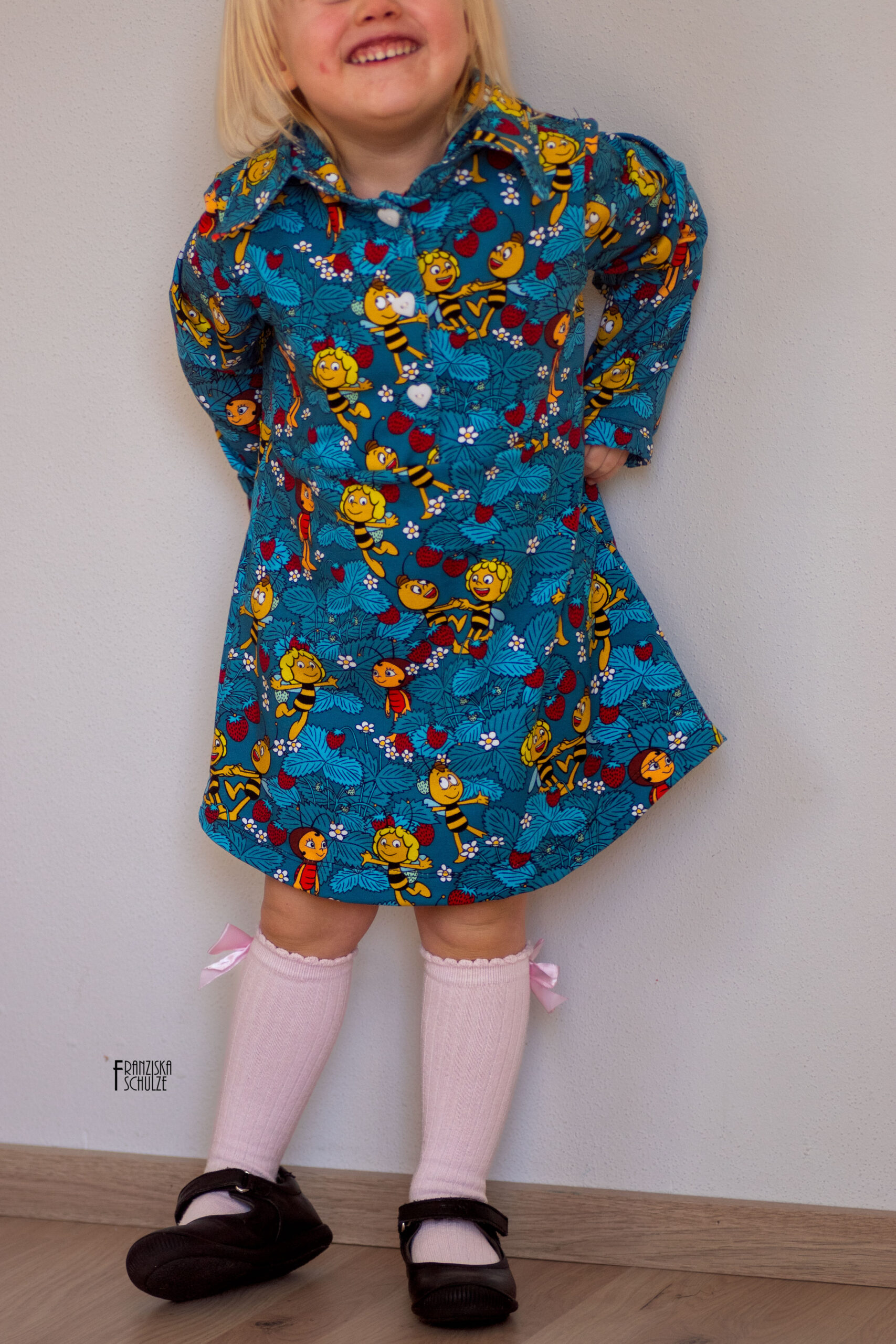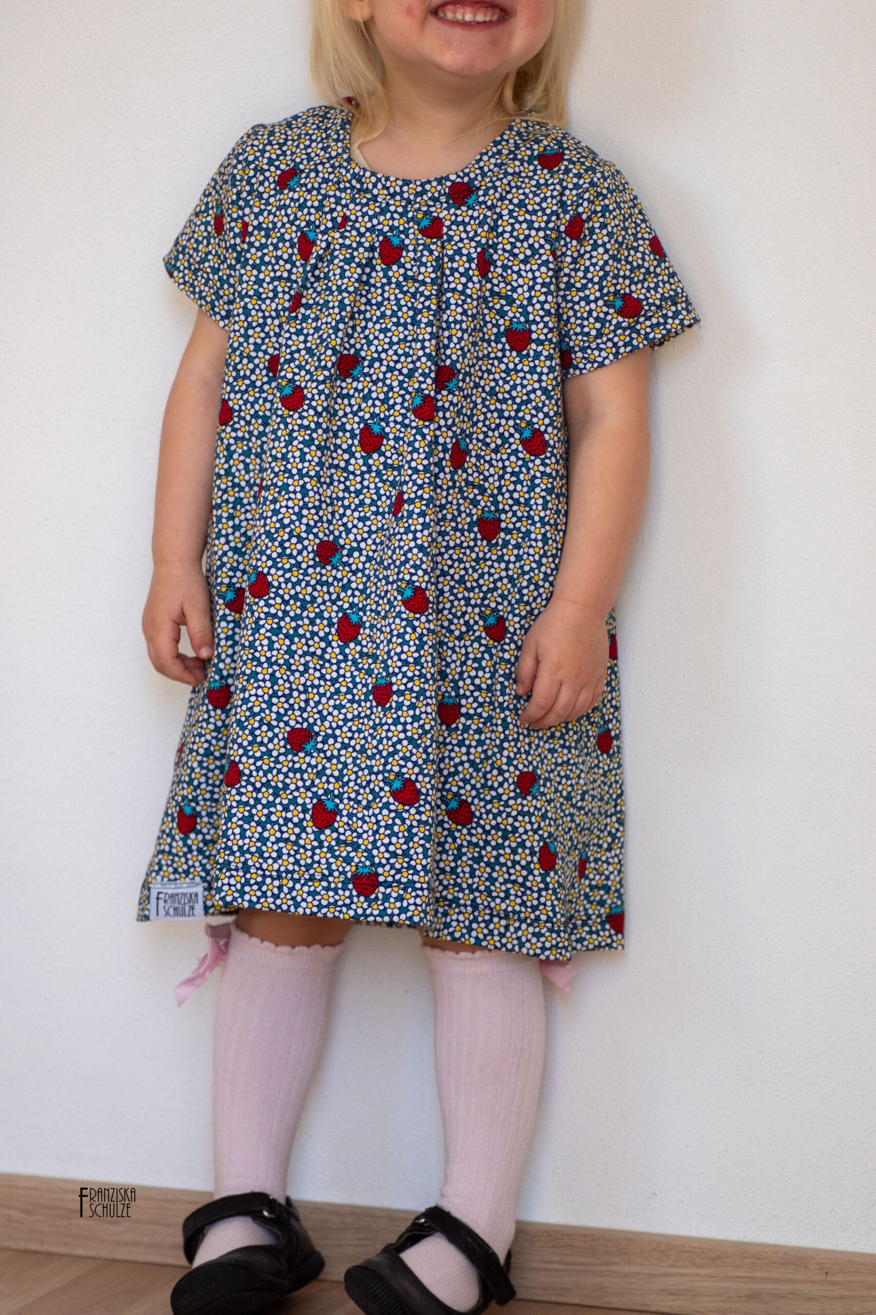 Die Motive haben hier eine Größe von ca. 2,5 cm (Erdbeeren) und ca. 7 cm (Maja). Dadurch sind auch diese beiden Stoffe in vielen Größen wunderbar vernähbar ohne überladen zu wirken.