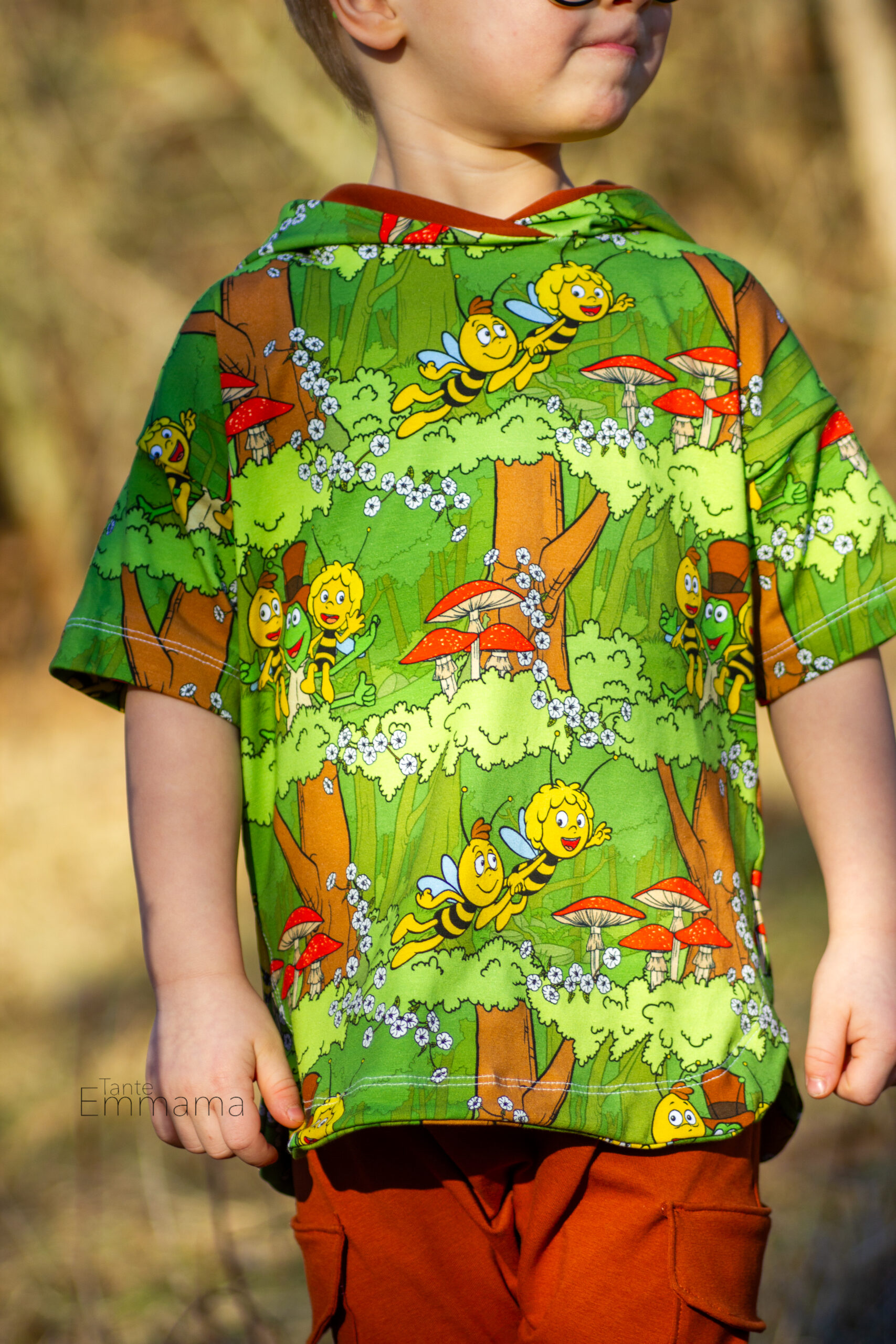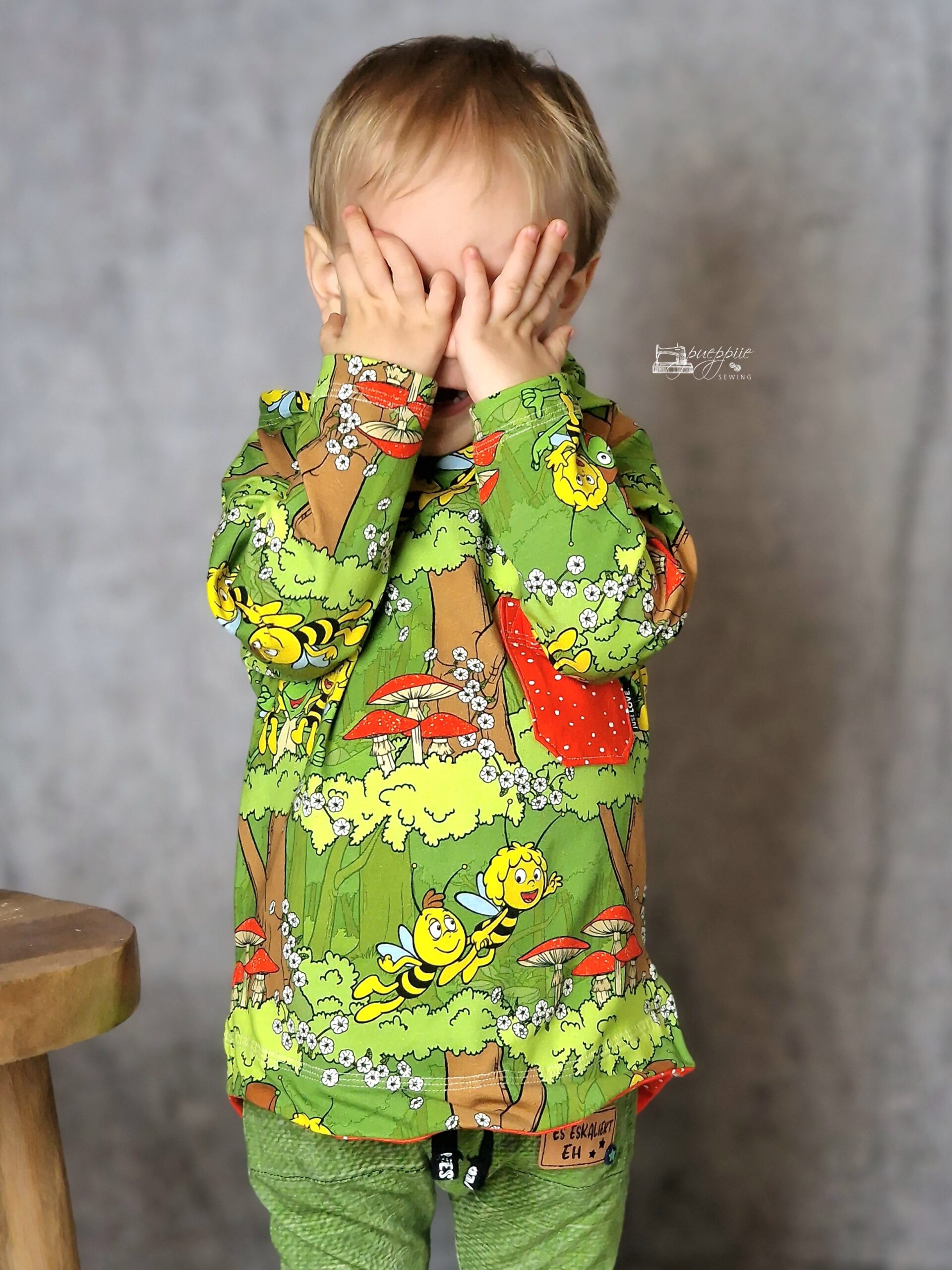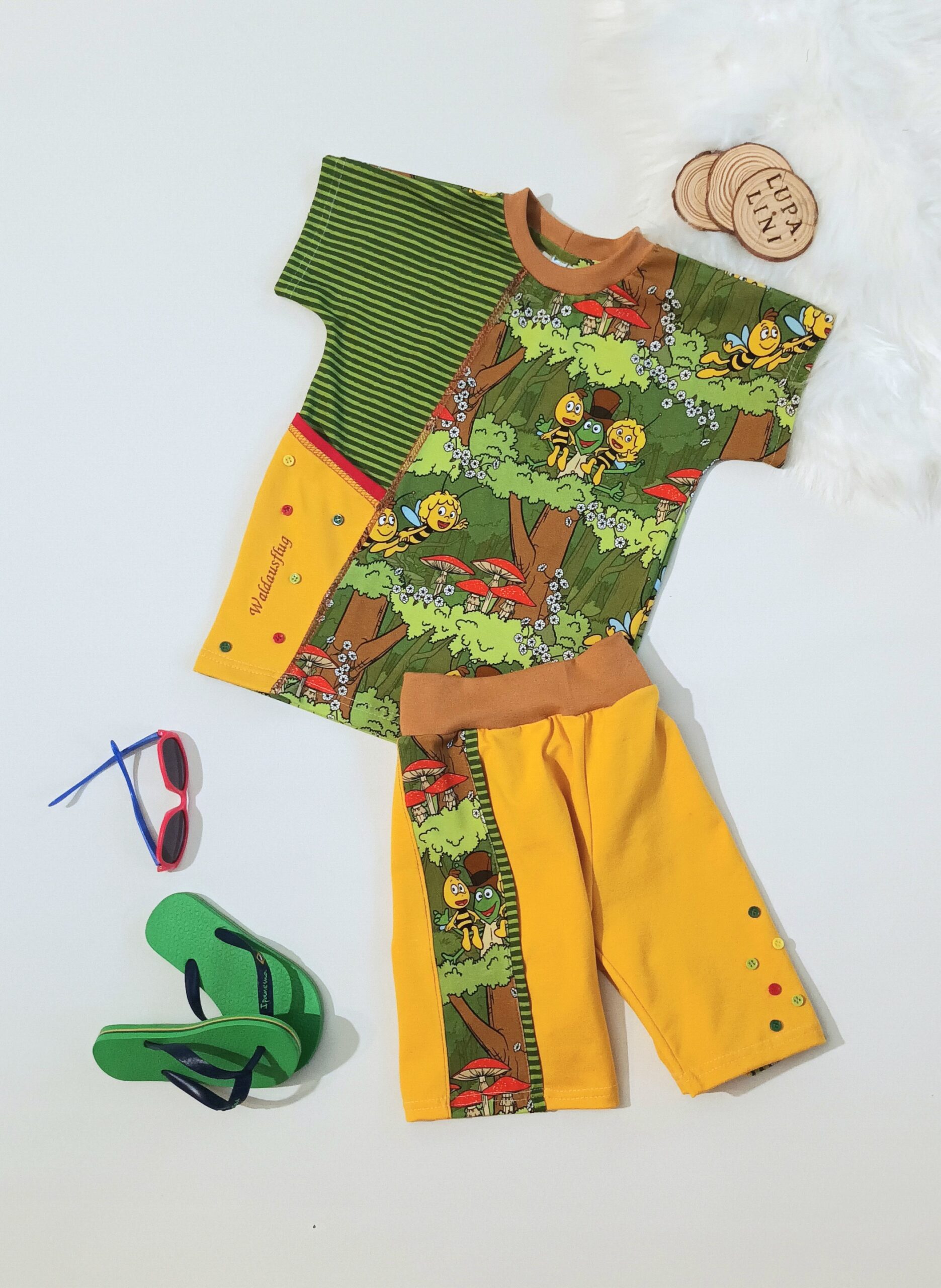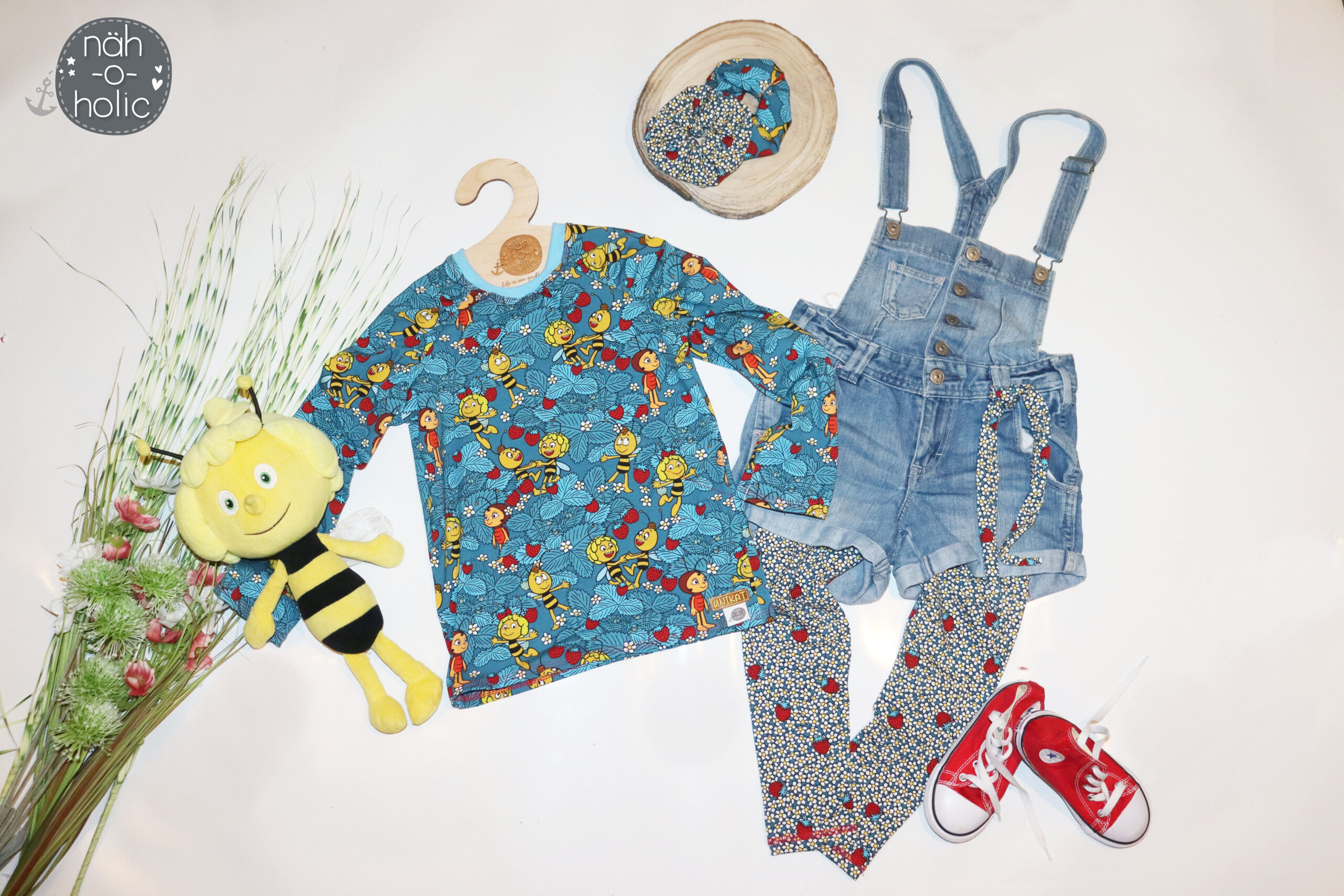Das zweite Design ist der Allover „Waldausflug“. Ein farbenfrohes und detailverliebtes Design, welches einfach direkt gute Laune verbreitet. Maja, Flip und Willi umrahmt von Bäumen, Pilzen, Blumen und saftigem Gras. Auch hier stehen Euch durch die Farbvielfalt einige Kombinationsmöglichkeiten offen und Ihr könnt wieder so richtig kreativ werden. Wie kombiniert Ihr lieber? Farbenfroh oder Ton in Ton?