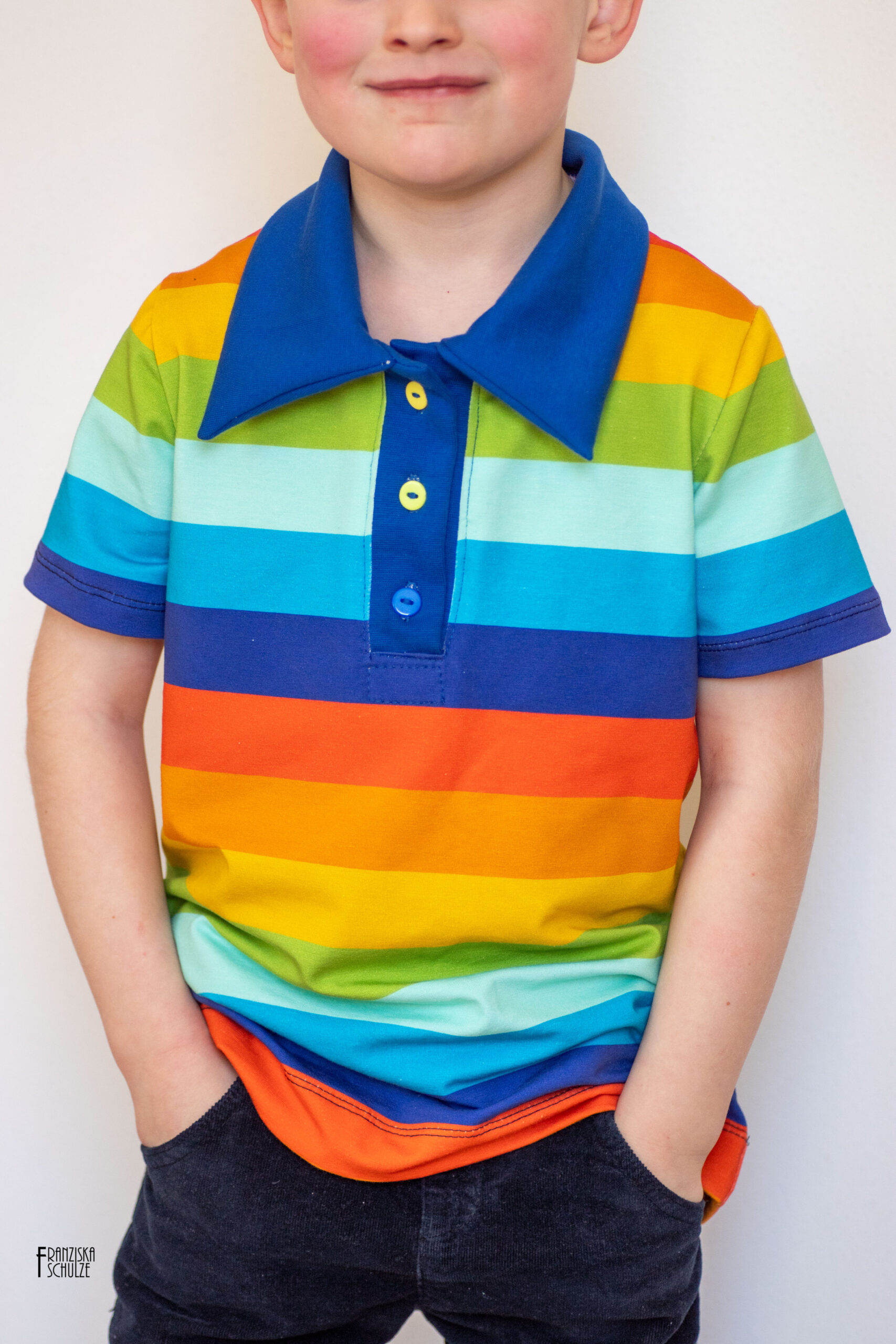 Die Streifen sind ca. 3,5 cm breit und leuchten mit jedem Regenbogen um die Wette. Solo vernäht, macht dieser Stoff auch so richtig was her. Perfekt für den kommenden Sommer, findet Ihr nicht auch?