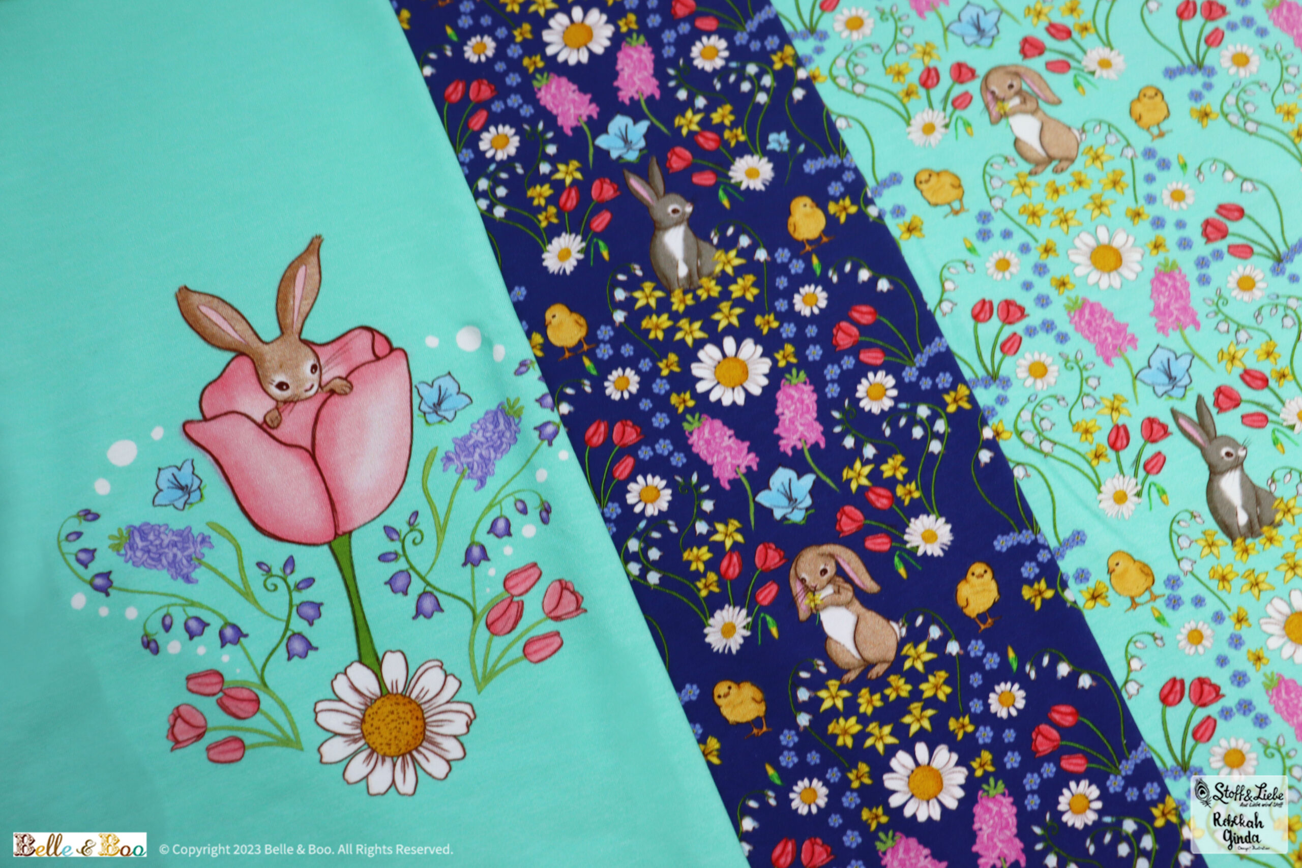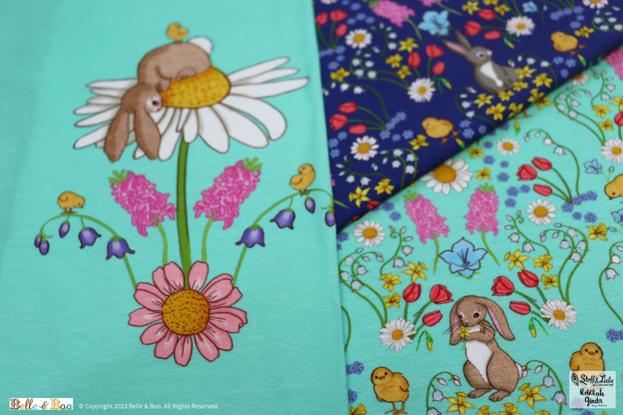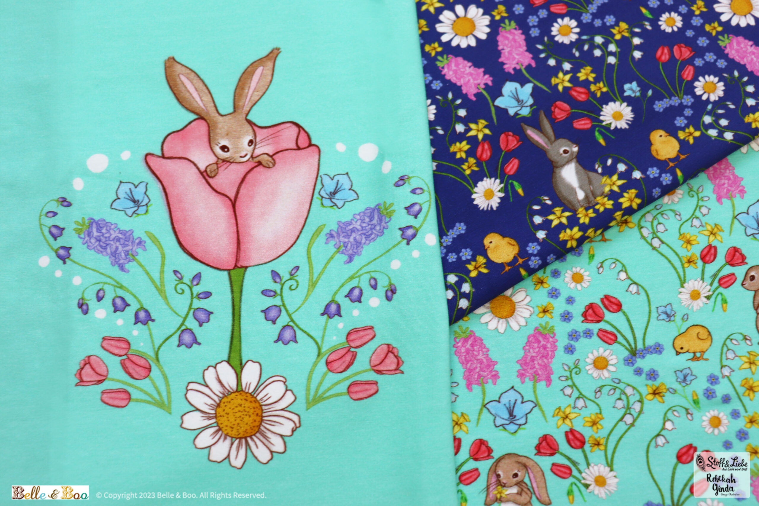 Der Frühling klopft ganz leise an. Hier und da sind schon die ersten Knospen zu sehen, das Zwitschern der Vögel nimmt zu, die Tiere trauen sich wieder mehr heraus und die ersten Sonnenstrahlen blitzen immer mal wieder durch die Wolken. Ja, es ist Zeit für Frühling, Zeit für bunte Blumen und vor allem Zeit für jede Menge Abenteuer im Freien! Mit dem neuen Stoffdesign Belle & Boo „Bluebells & Tulips“ locken wir eben diese wundervolle Jahreszeit herbei! Habt Ihr Lust?