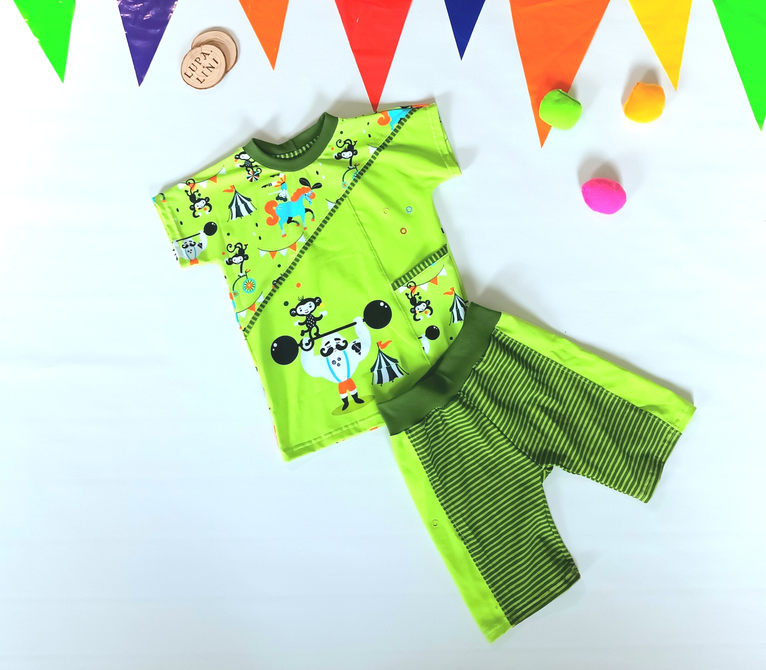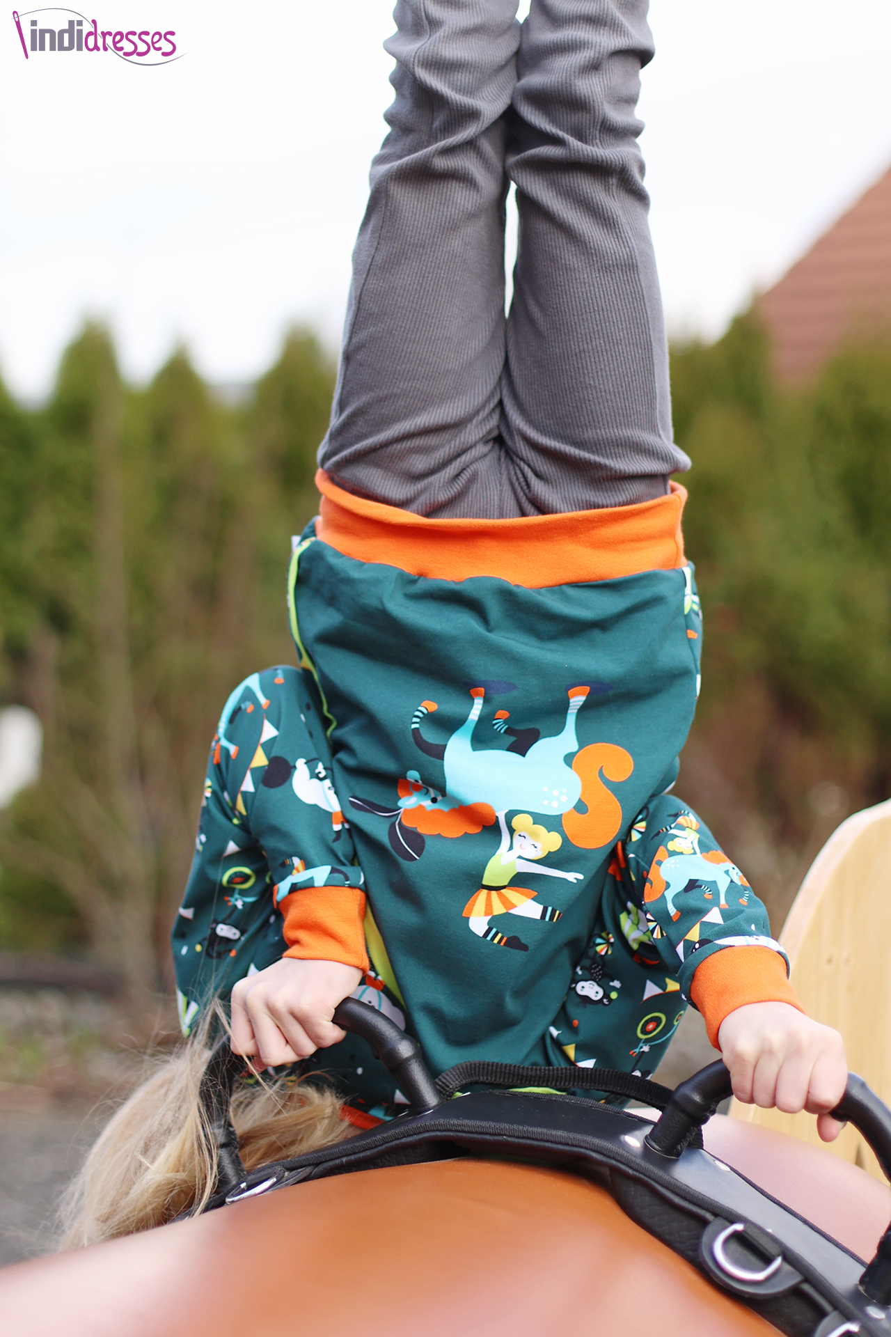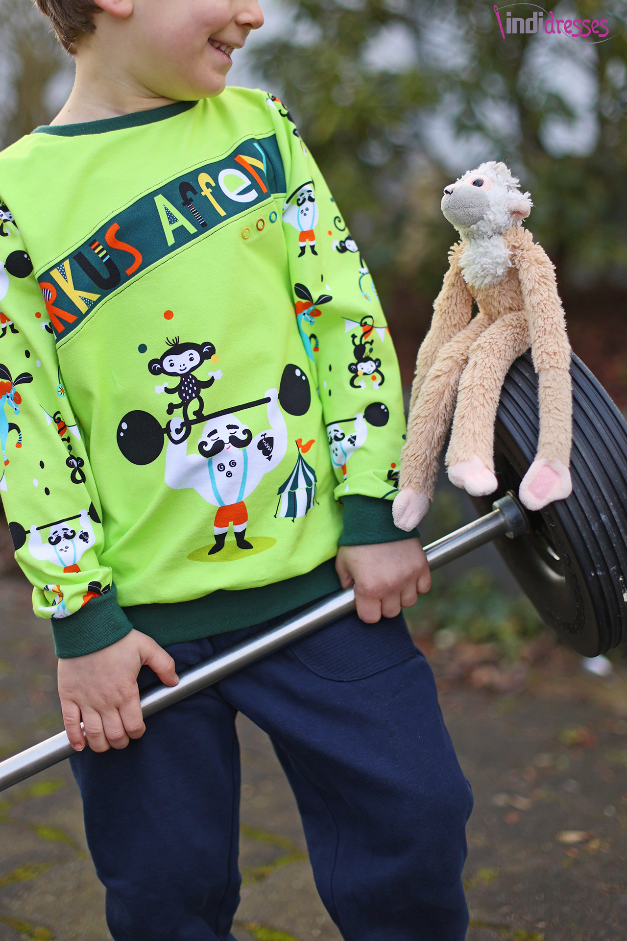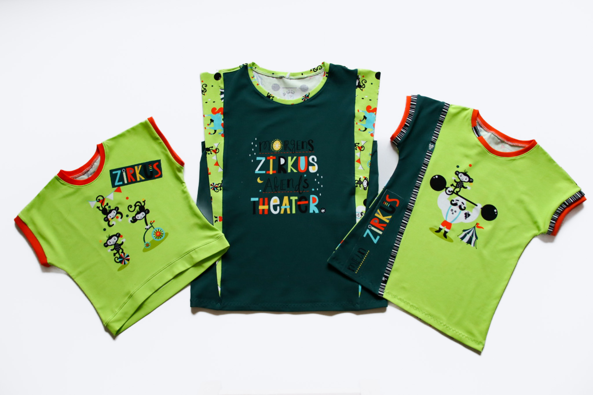 Das linke Motiv mit dem Gewichtheber und das rechte Motiv mit den Zirkusaffen findet Ihr jeweils auf einem frischen Grün. Auf dem mittleren Panelmotiv voltigiert eine Akrobatin auf ihrem Pferd. Durch die gewählten Farben wirken Motive und Hintergrund harmonisch und lassen sich prima mit weiteren Stoffen kombinieren.