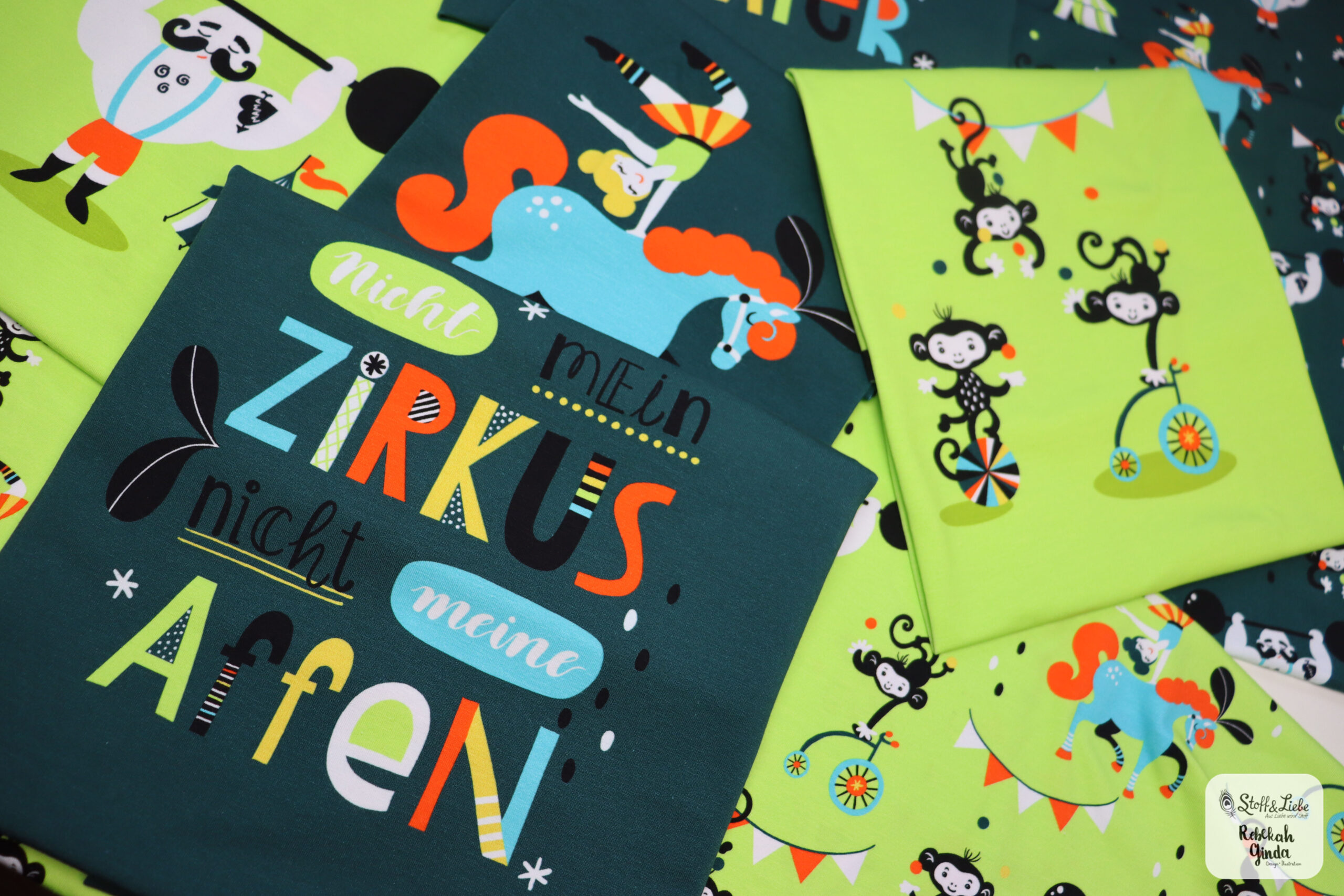 Manege frei, Vorhang auf! Hier kommt der Stoff & Liebe Zirkus! Dompteure, Akrobaten, wilde Tiere… es gibt viel zu entdecken. Vor allem aber strahlende Farben und auch, weil Ihr es genauso liebt wie wir, Sprüchepanels, mit viel Humor und Selbstironie. Kommt mit uns in die bunte Welt des Zirkus!