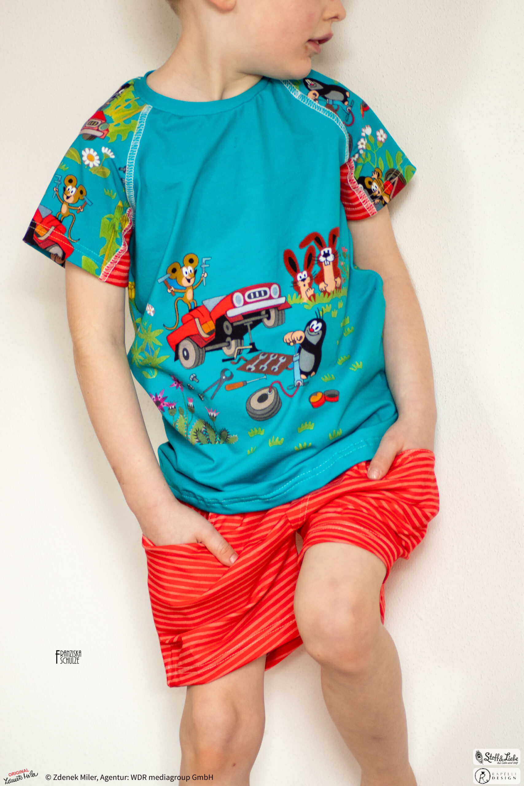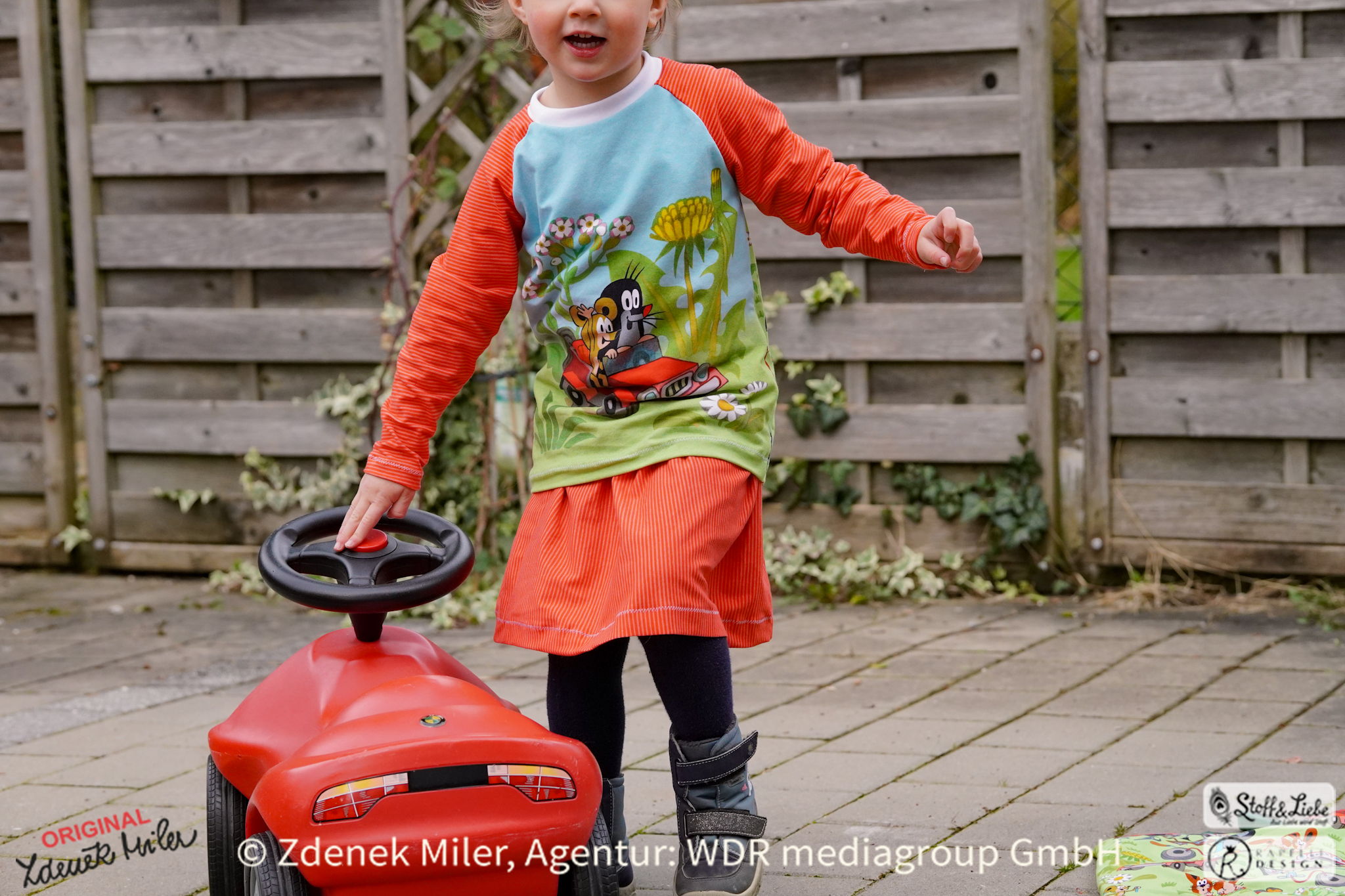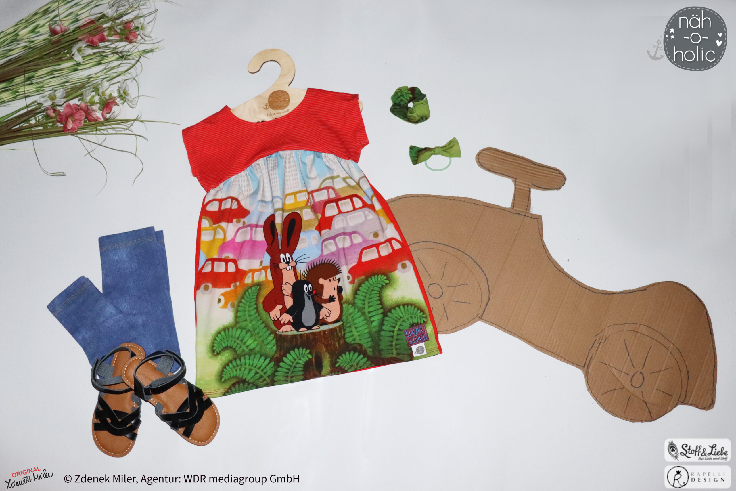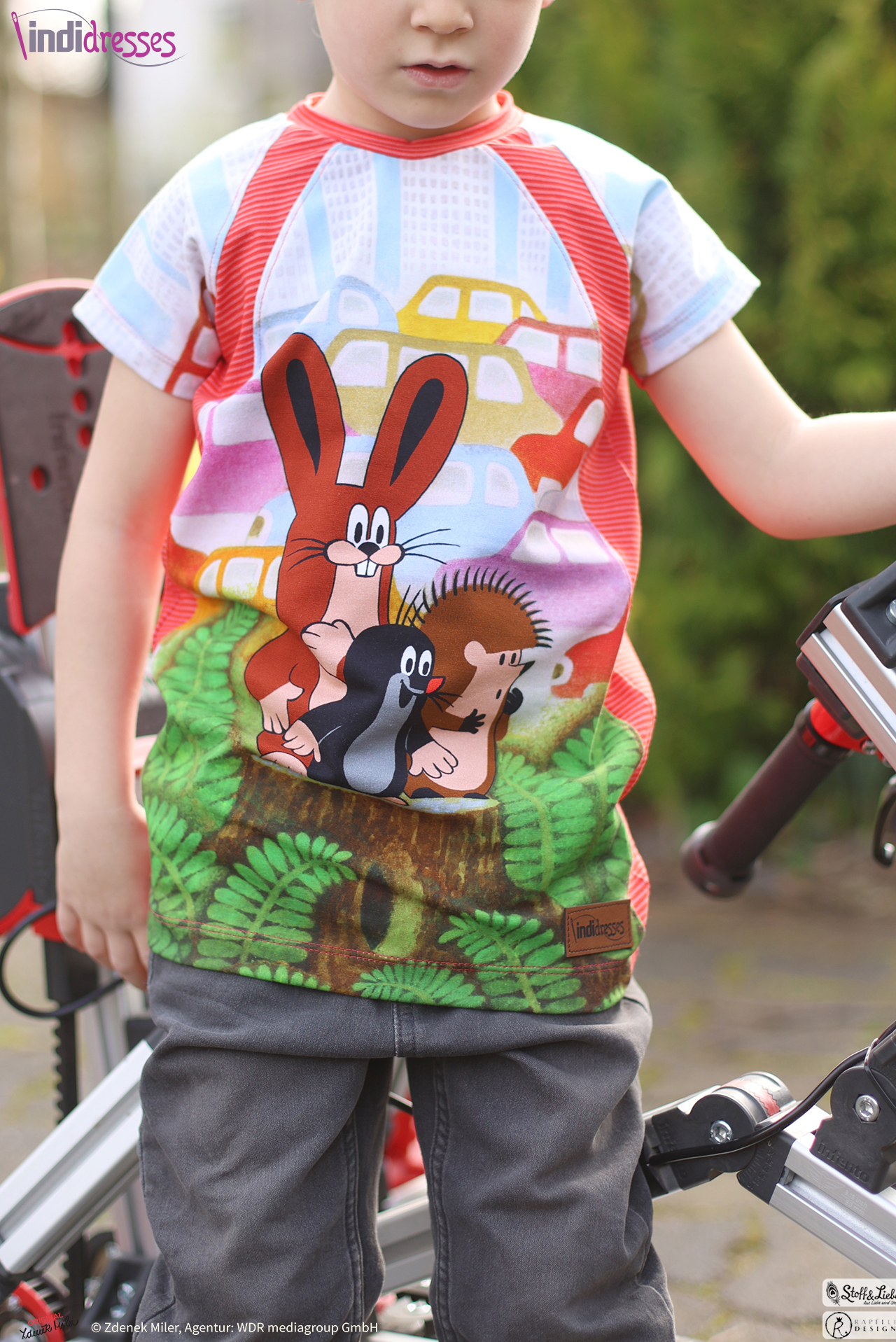 Unsere „Der kleine Maulwurf und sein rotes Auto“ Kollektion besteht aus einem Panel, einem Allover in zwei Farbstellungen und passenden Kombistoffen. Die Stoffe erhaltet ihr auf Jersey in unserer gewohnten Spitzenqualität. Die Materialzusammensetzung beträgt 95 % Baumwolle und 5 % Elasthan. Dieses Design wurde von der lieben Marleen von Rapelli Design umgesetzt.