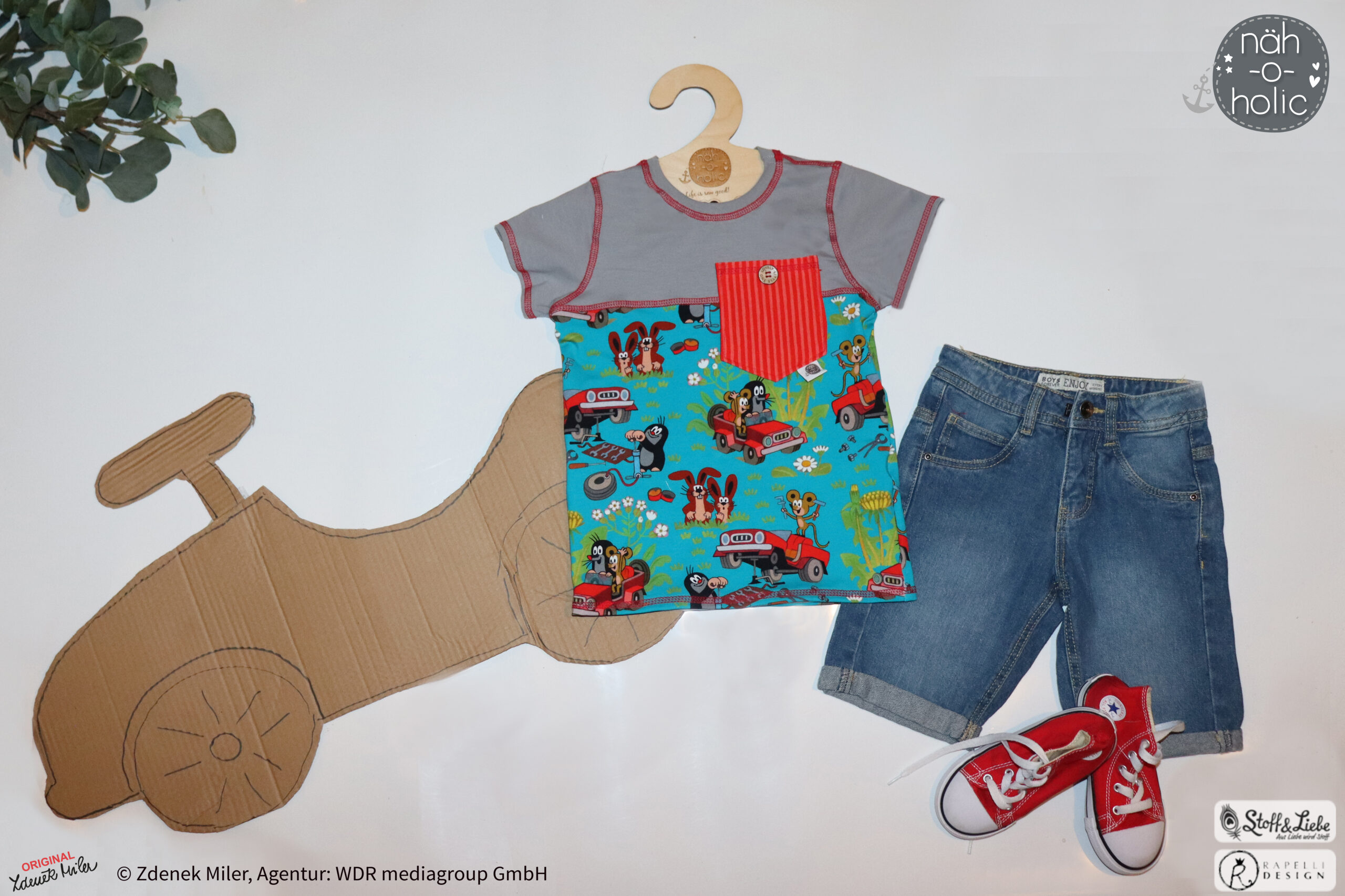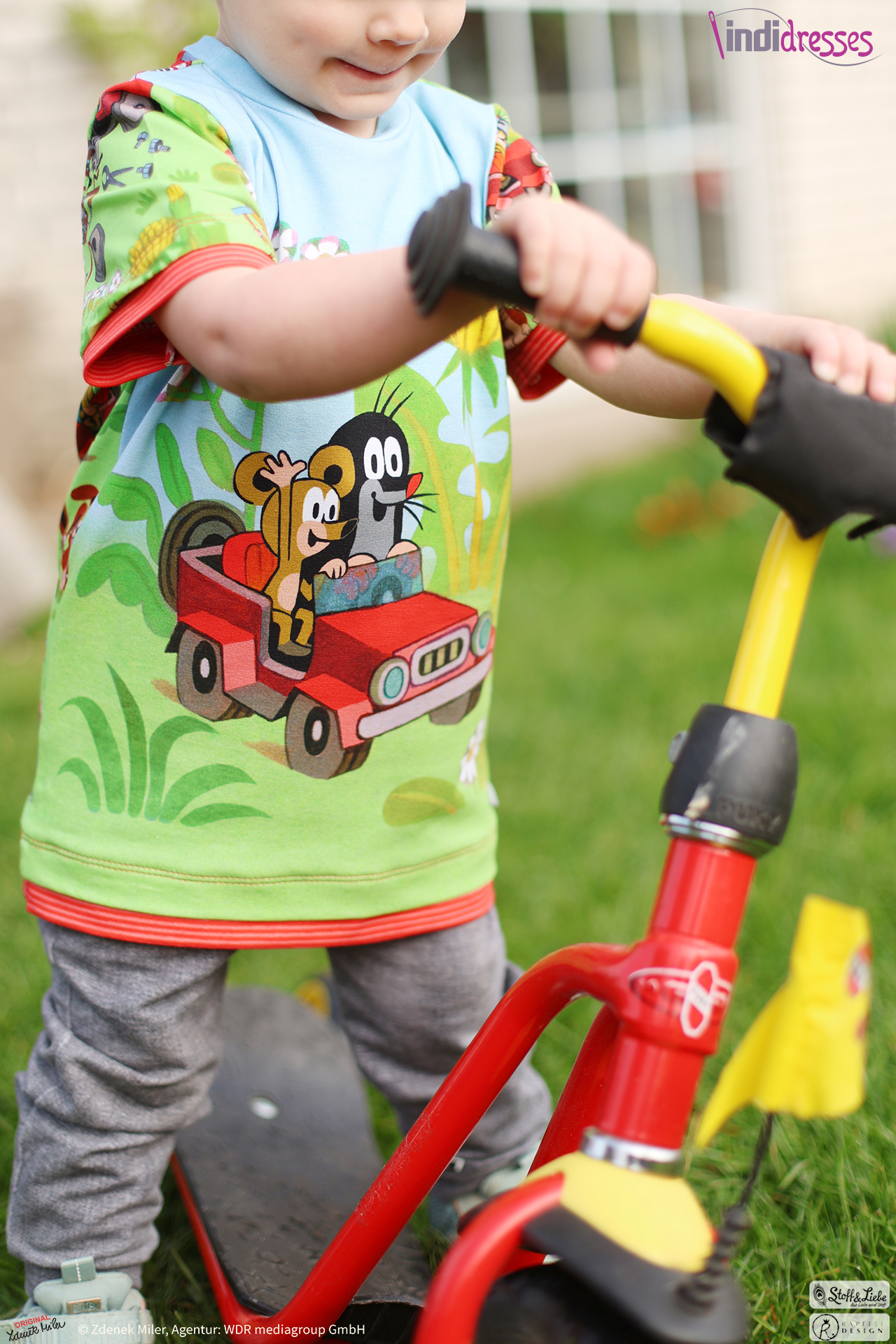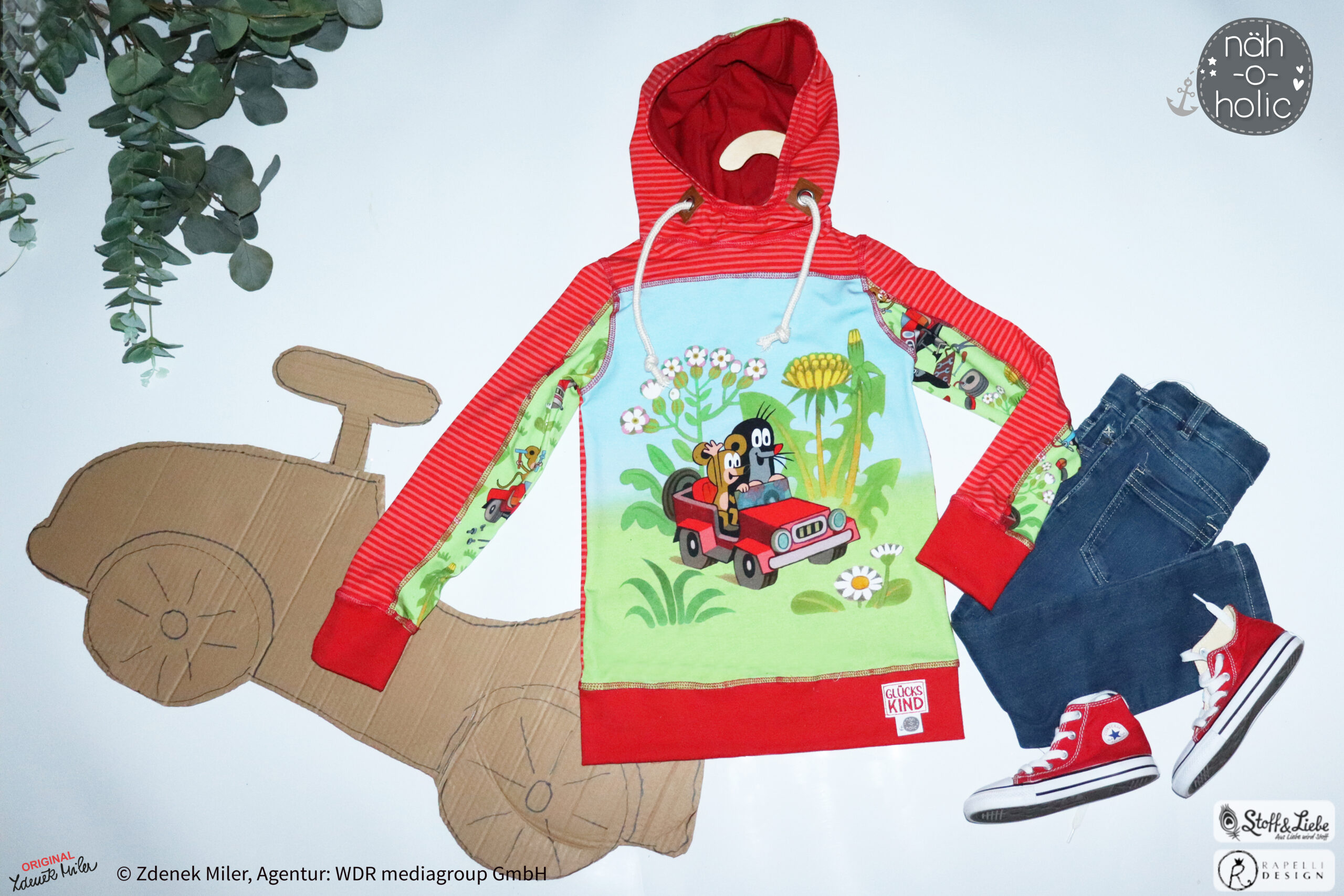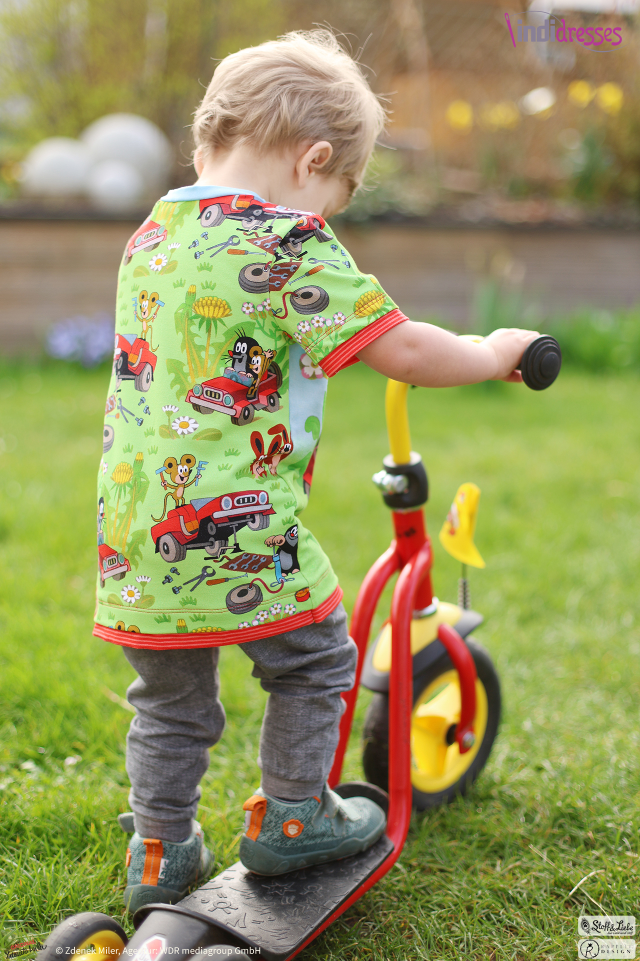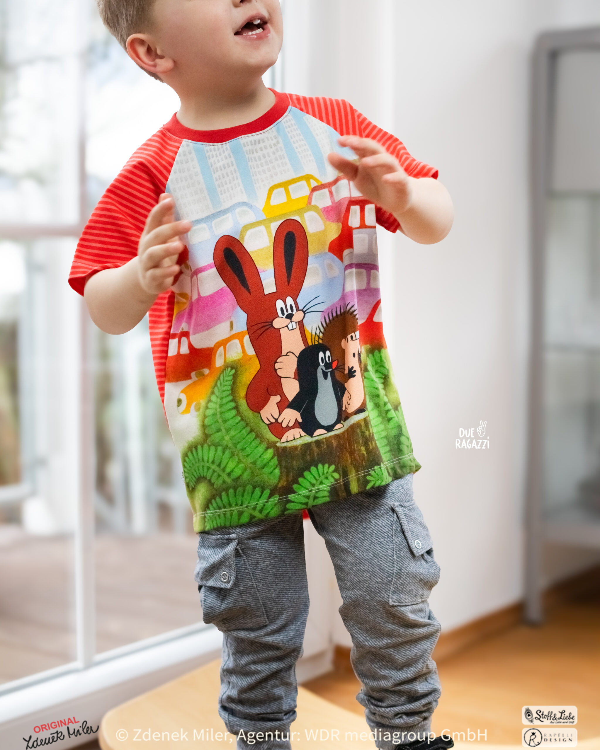 Unsere „Der kleine Maulwurf und sein rotes Auto“ Kollektion besteht aus einem Panel, einem Allover in zwei Farbstellungen und passenden Kombistoffen. Die Stoffe erhaltet ihr auf Jersey in unserer gewohnten Spitzenqualität. Die Materialzusammensetzung beträgt 95 % Baumwolle und 5 % Elasthan. Dieses Design wurde von der lieben Marleen von Rapelli Design umgesetzt.