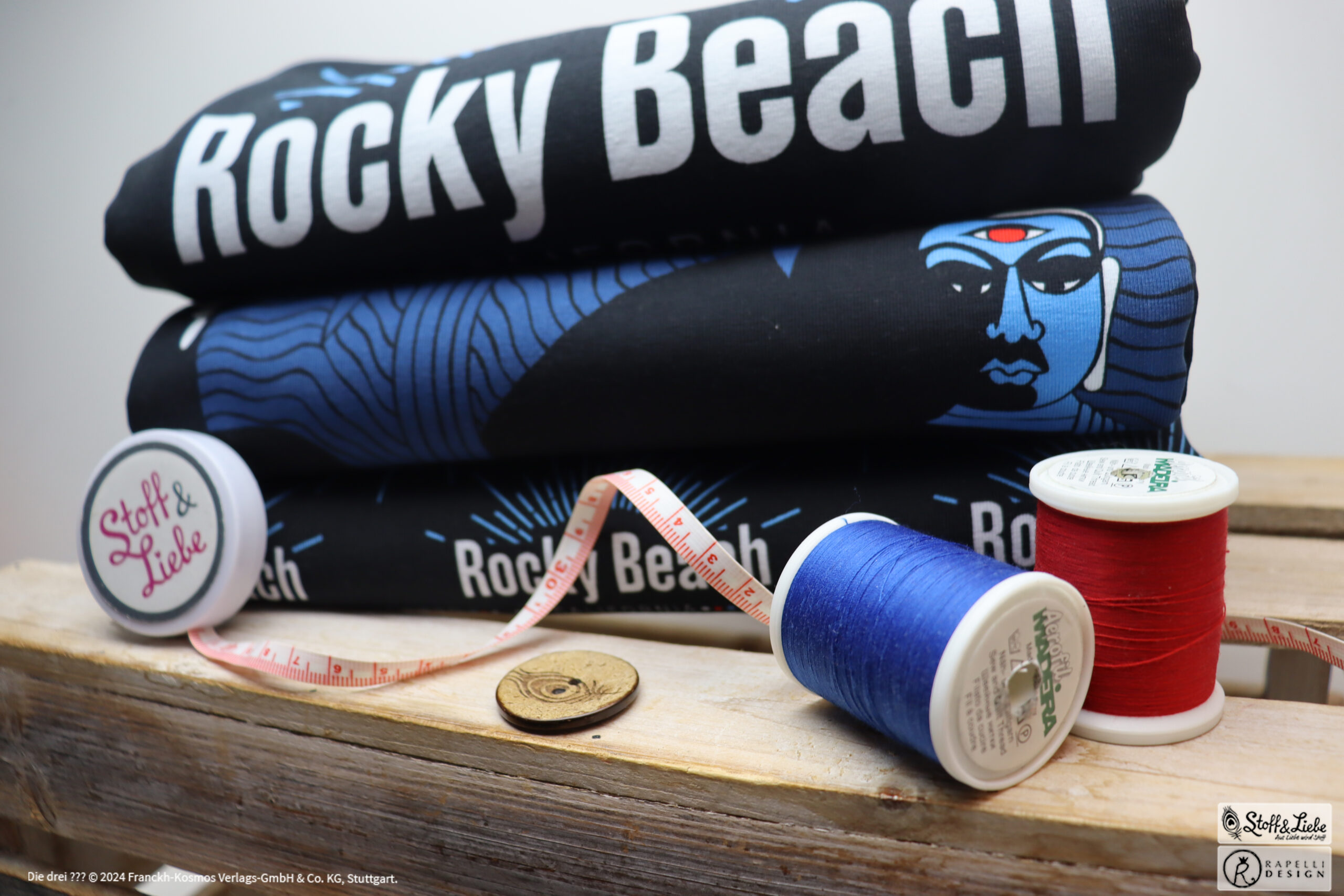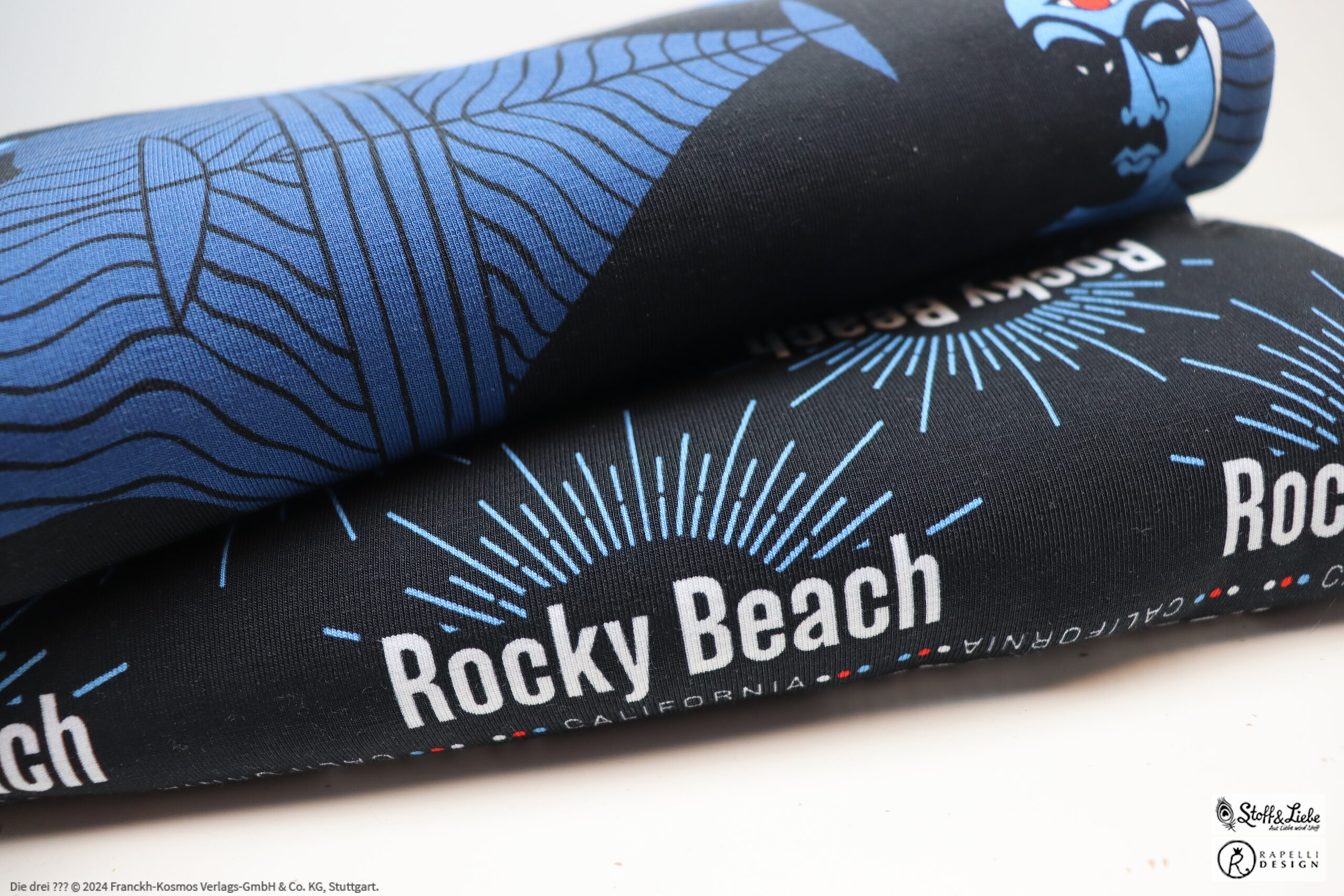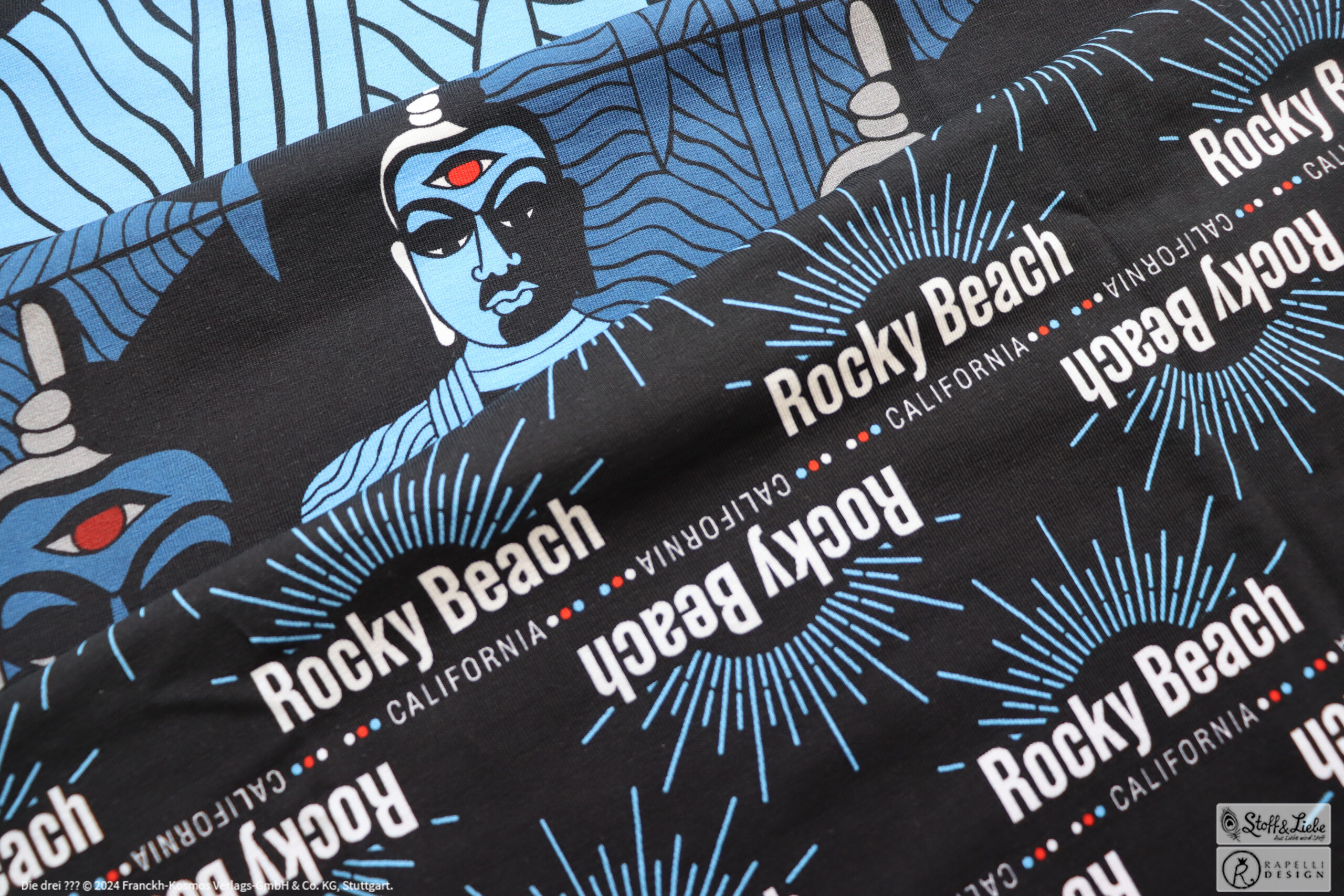 Für alle Fans des Küstenörtchens ist dies wahrlich der perfekte Stoff. Auch dieser ist nicht auf den ersten Blick als Drei ??? Stoff erkennbar. Da muss man schon wissen, dass Rocky Beach die Heimatstadt unserer Jungs ist oder aufgrund der farbigen Punkte kombinieren, wer oder was hier dahinter steckt.