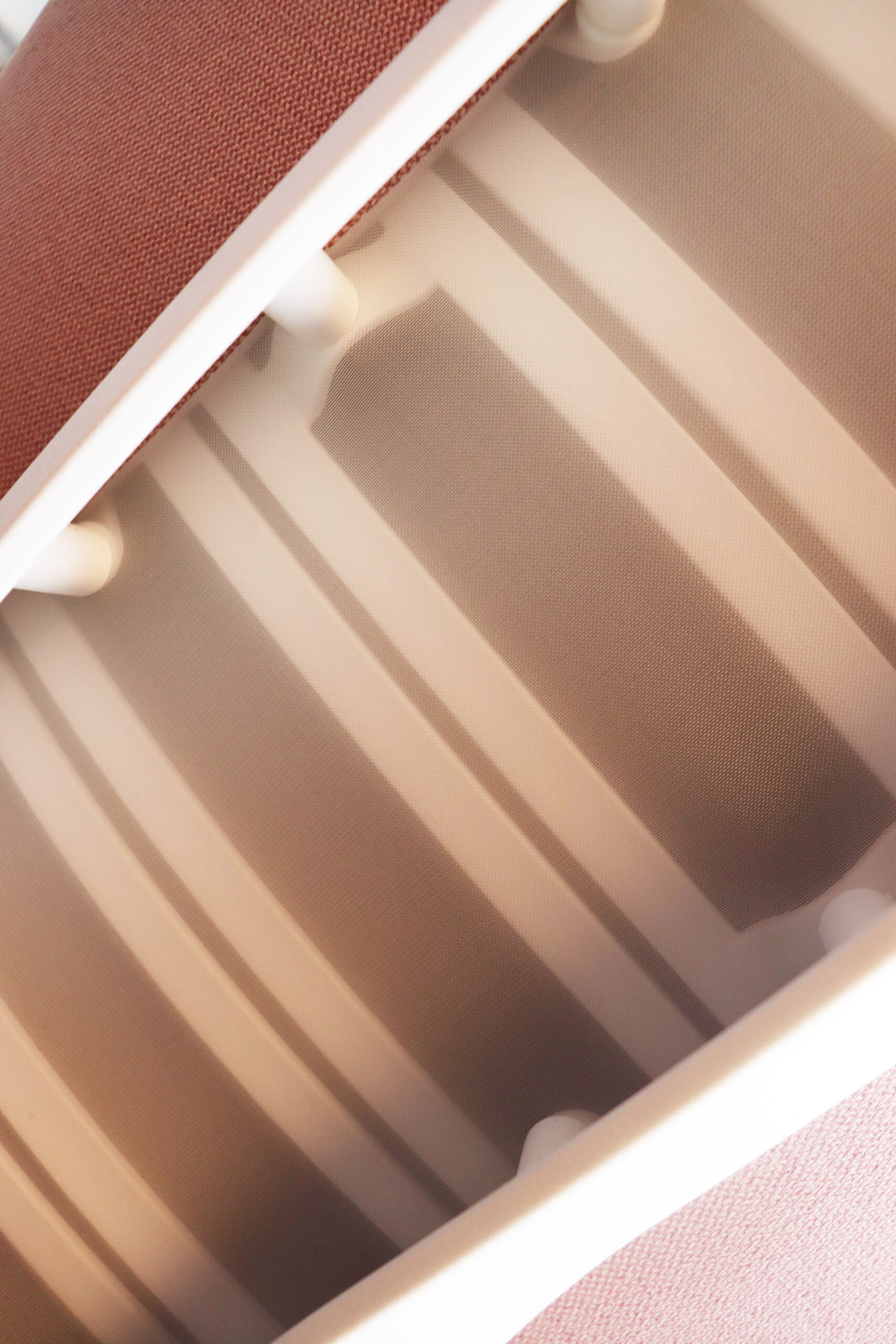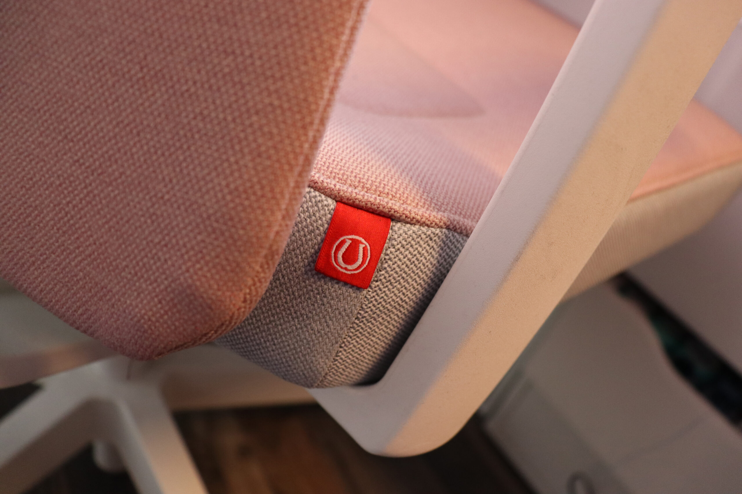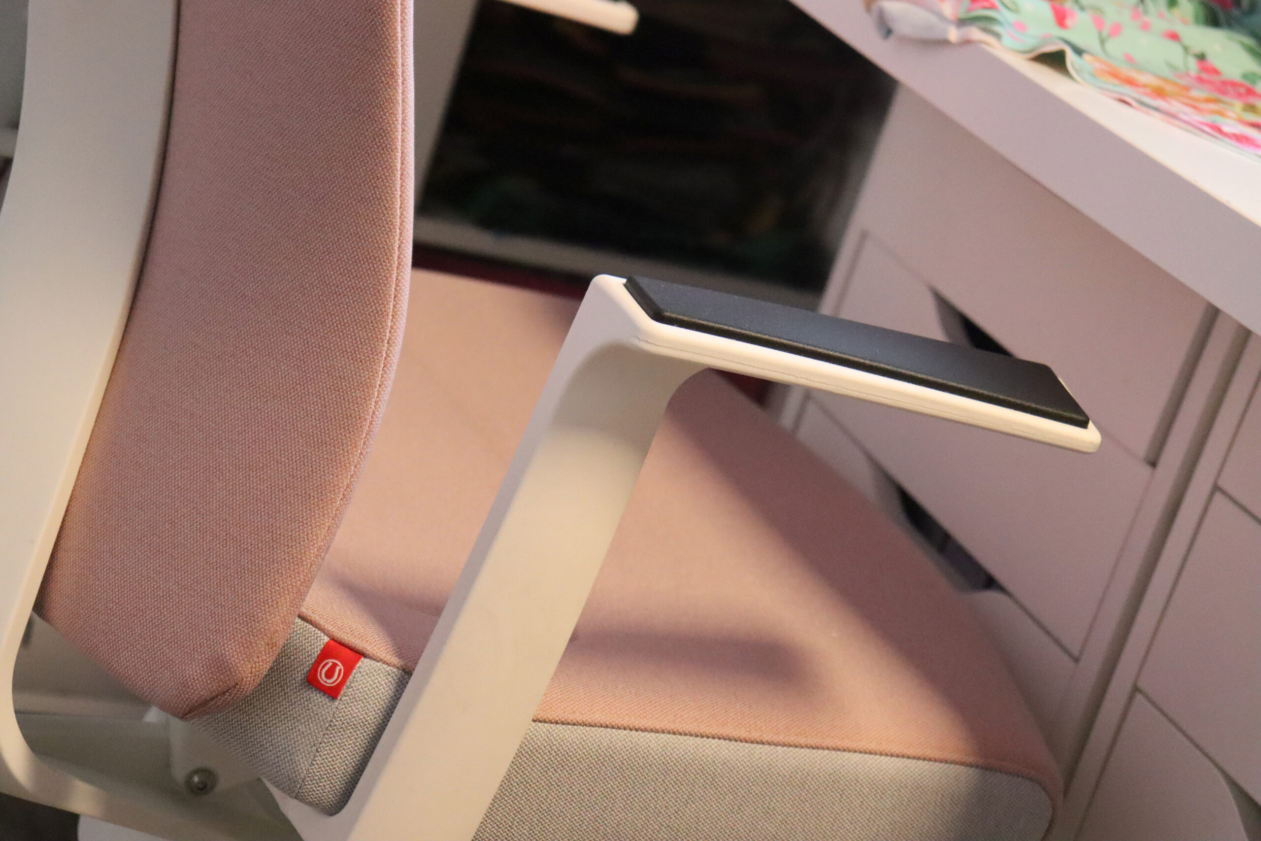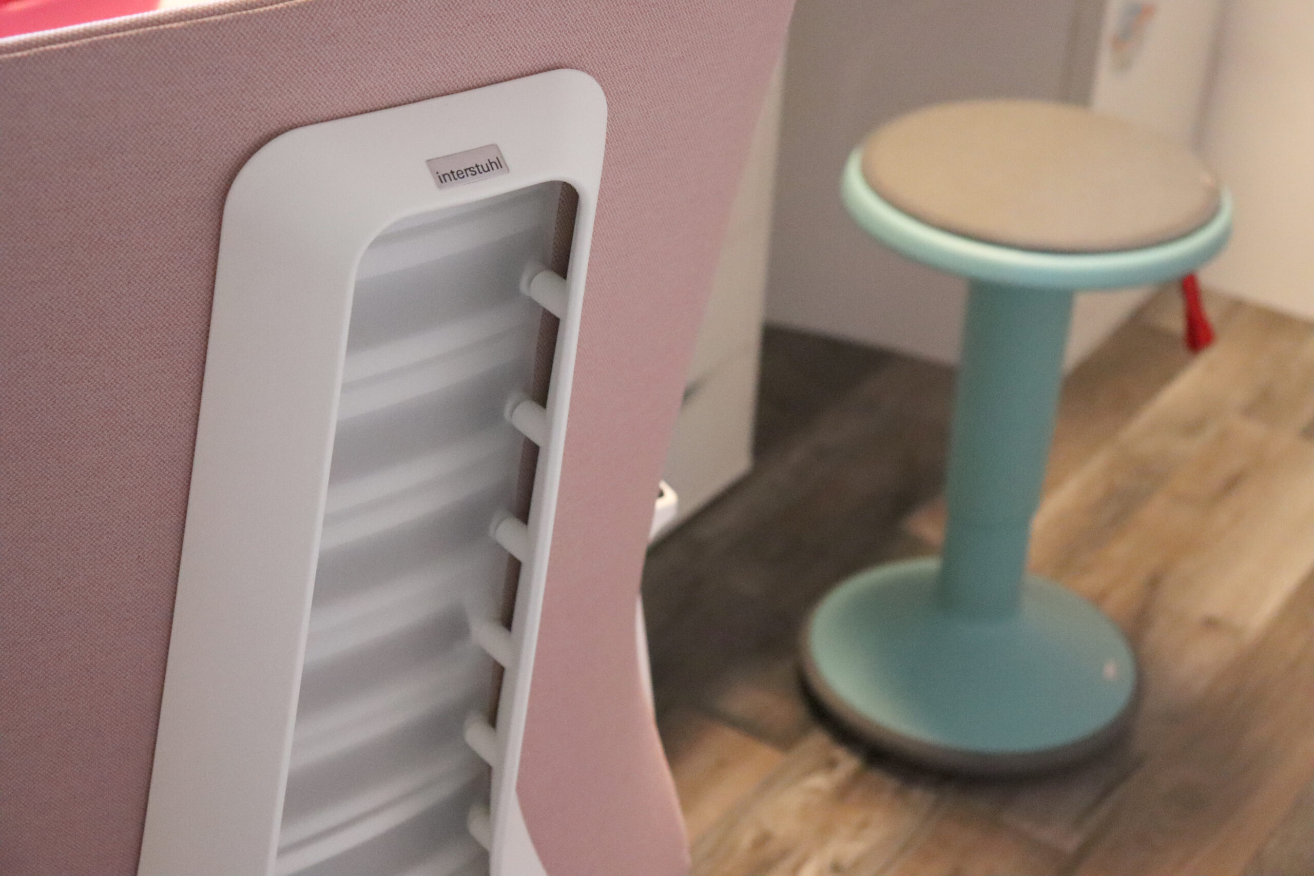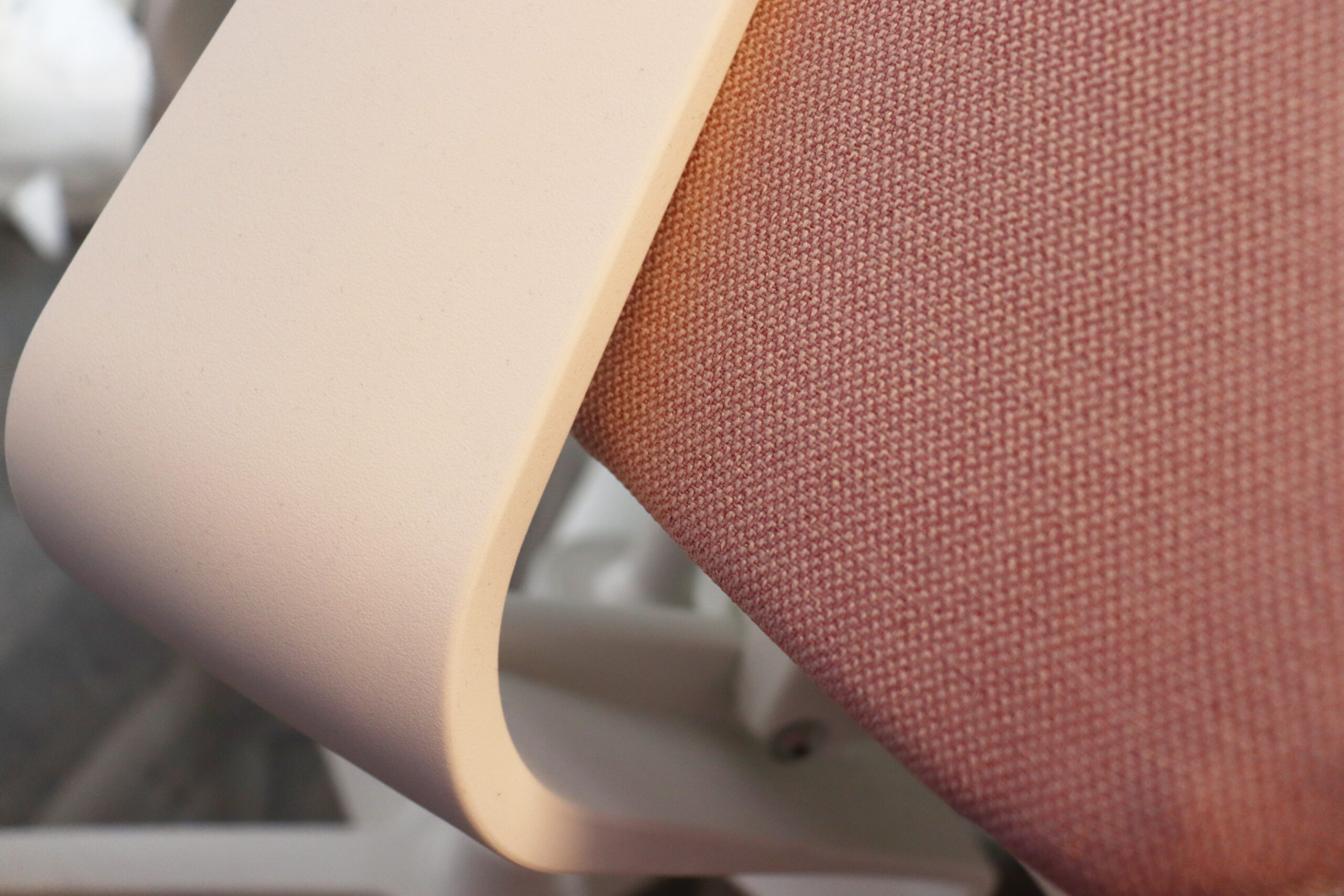 Der Pure aus der INTERIOR Edition ist als Büro- und Schreibtischstuhl konzipiert und es gibt ihn insgesamt in 12 Farbvarianten. Bei meinem Pure ist das Polster durchgehend rosa, die seitlichen Teile sind grau abgesetzt. Das Polster ist atmungsaktiv und fühlt sich sehr weich an. Dennoch macht der Bezug einen robusten Eindruck.