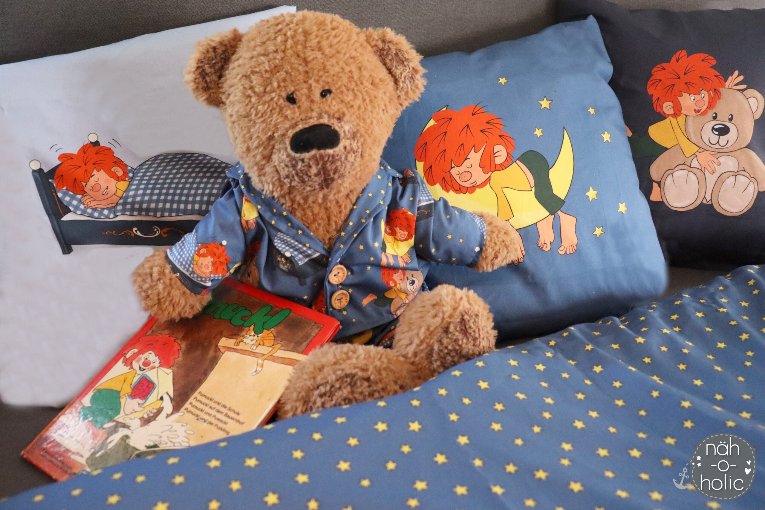 Und dann wären da noch die Muckelkaros. Ihr habt bestimmt schon längst entdeckt, warum sie dabei sind, oder? Genau, weil Pumuckls Bettwäsche aus Muckelkaros ist. So könnt Ihr Euch entweder mit Pumuckl Bettwäsche im Partnerlook nähen oder Eure Nähwerke damit kombinieren.