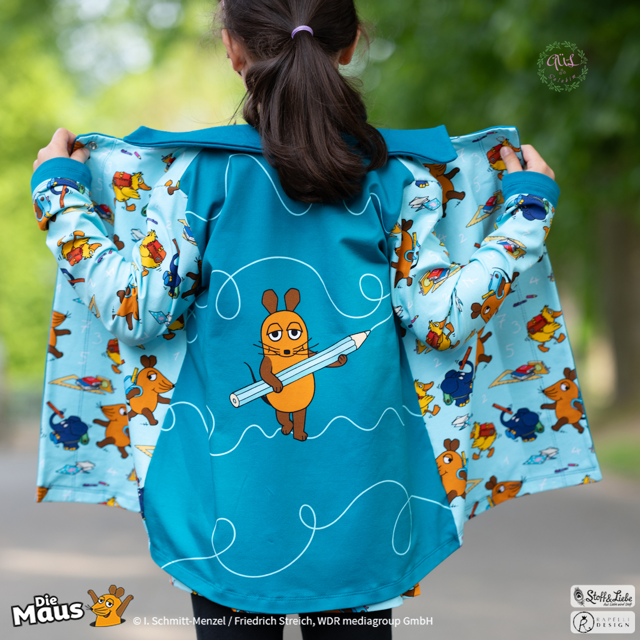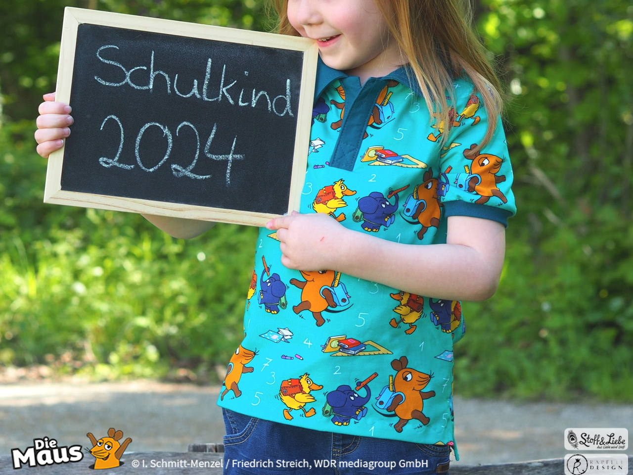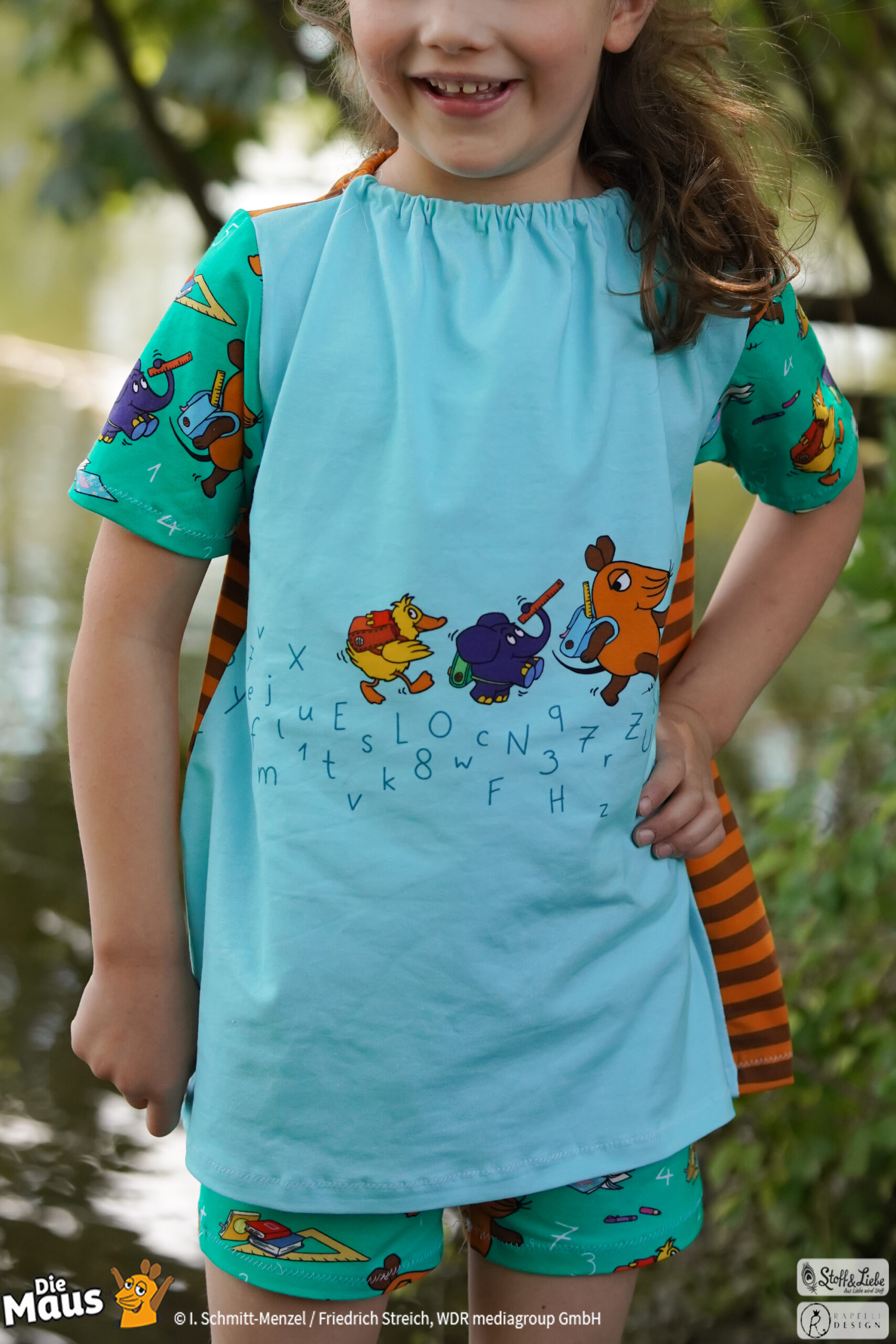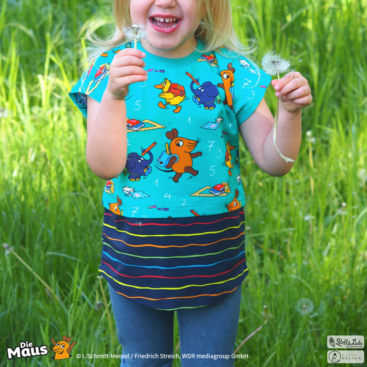 Unsere „DieMaus – Hurra! Endlich Schule“ wurde umgesetzt von Rapelli Design. Zu diesem Design gehört ein Panel sowie ein Allover in zwei Farvarianten. Die Stoffe bekommt Ihr auf Jersey in unserer bekannten Spitzenqualität.