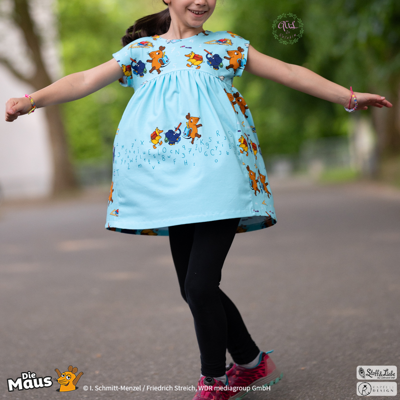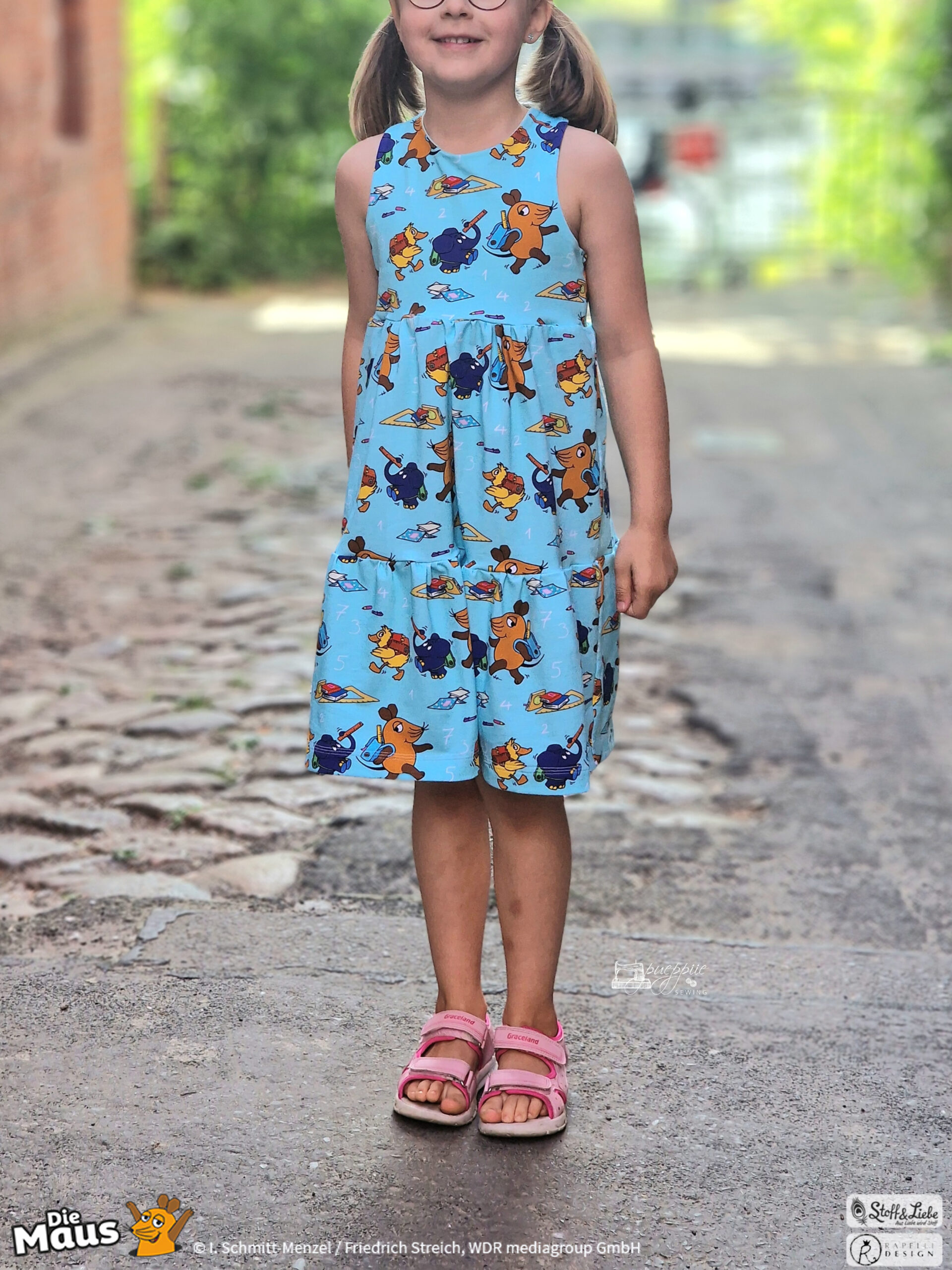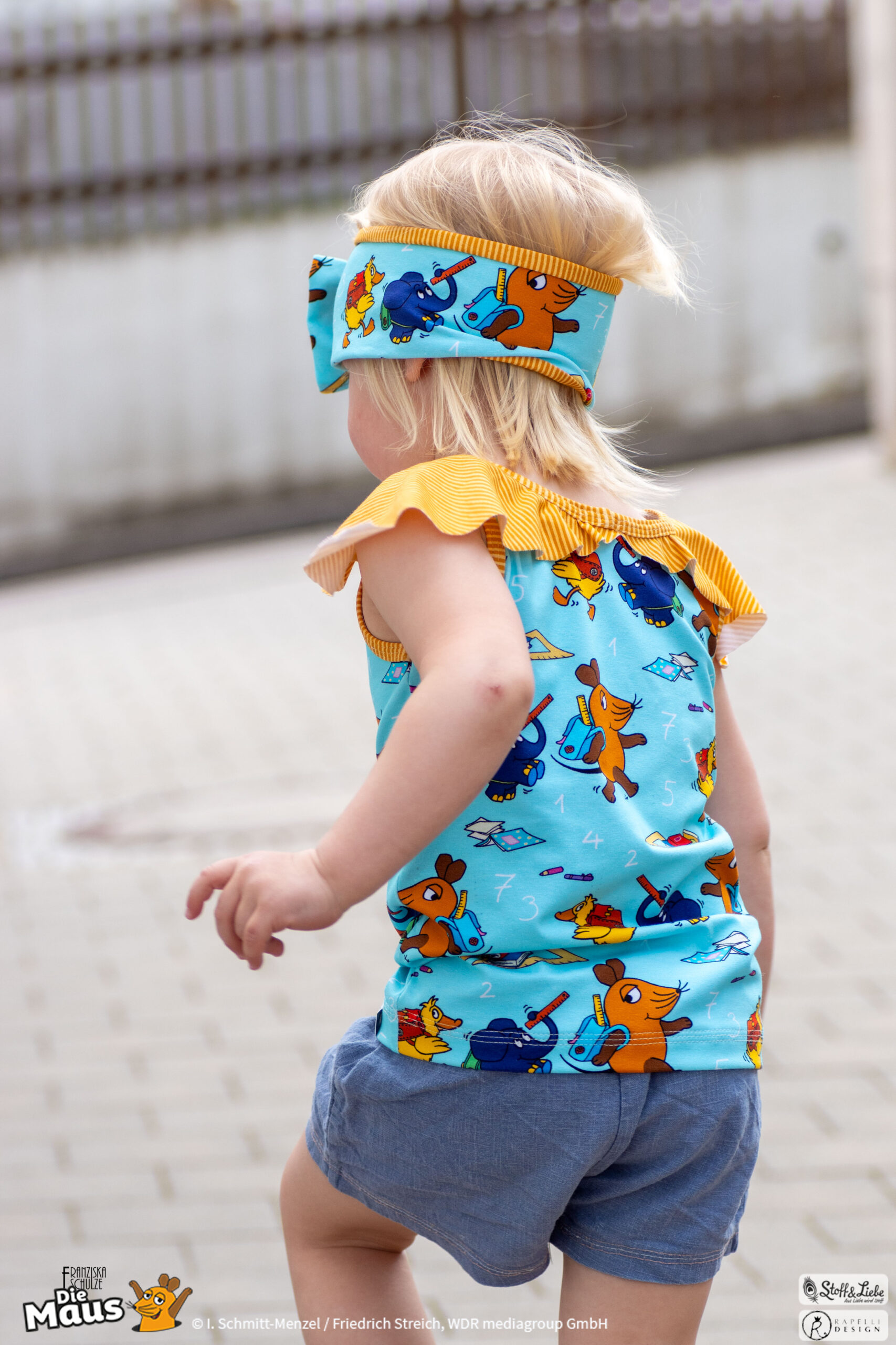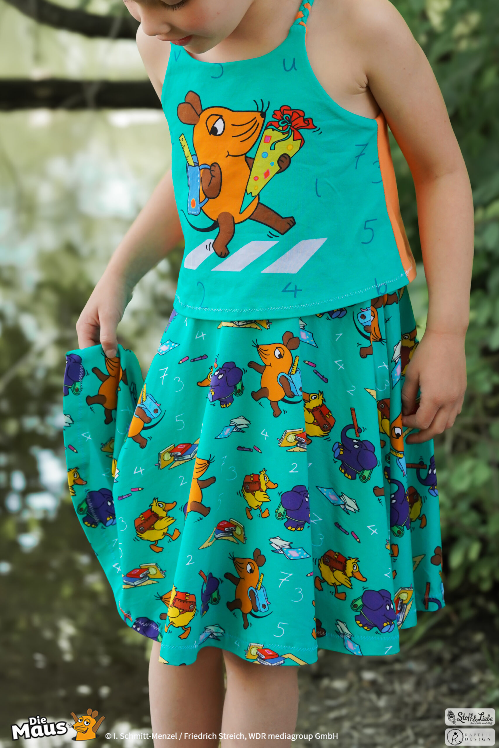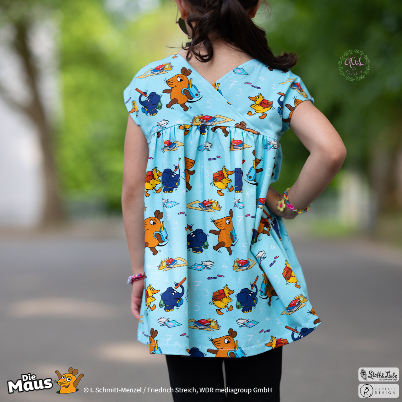 Unsere „DieMaus – Hurra! Endlich Schule“ wurde umgesetzt von Rapelli Design. Zu diesem Design gehört ein Panel sowie ein Allover in zwei Farvarianten. Die Stoffe bekommt Ihr auf Jersey in unserer bekannten Spitzenqualität.