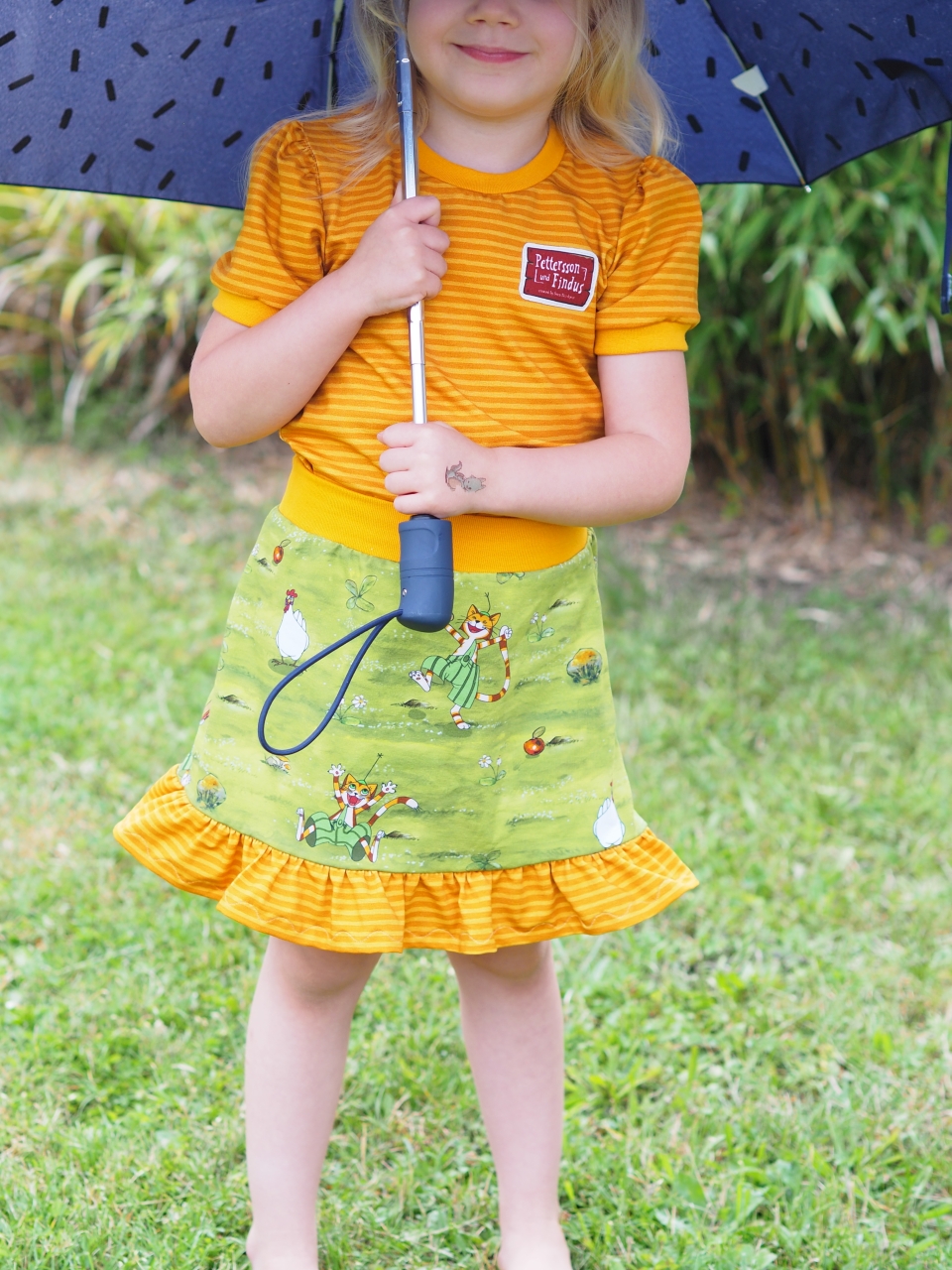 Wie auch schon auf dem Panel sind hier natürlich die Hühner mit von der Partie. Wisst Ihr eigentlich wie die Hühner von Pettersson heißen? Wen sehen wir hier mit Findus? Prillan, Mathilda, Fia, Doris, Majros, Soffi-Moffi, Stina-Fina, Henrietta, Gacki und Henni? Was meint Ihr?